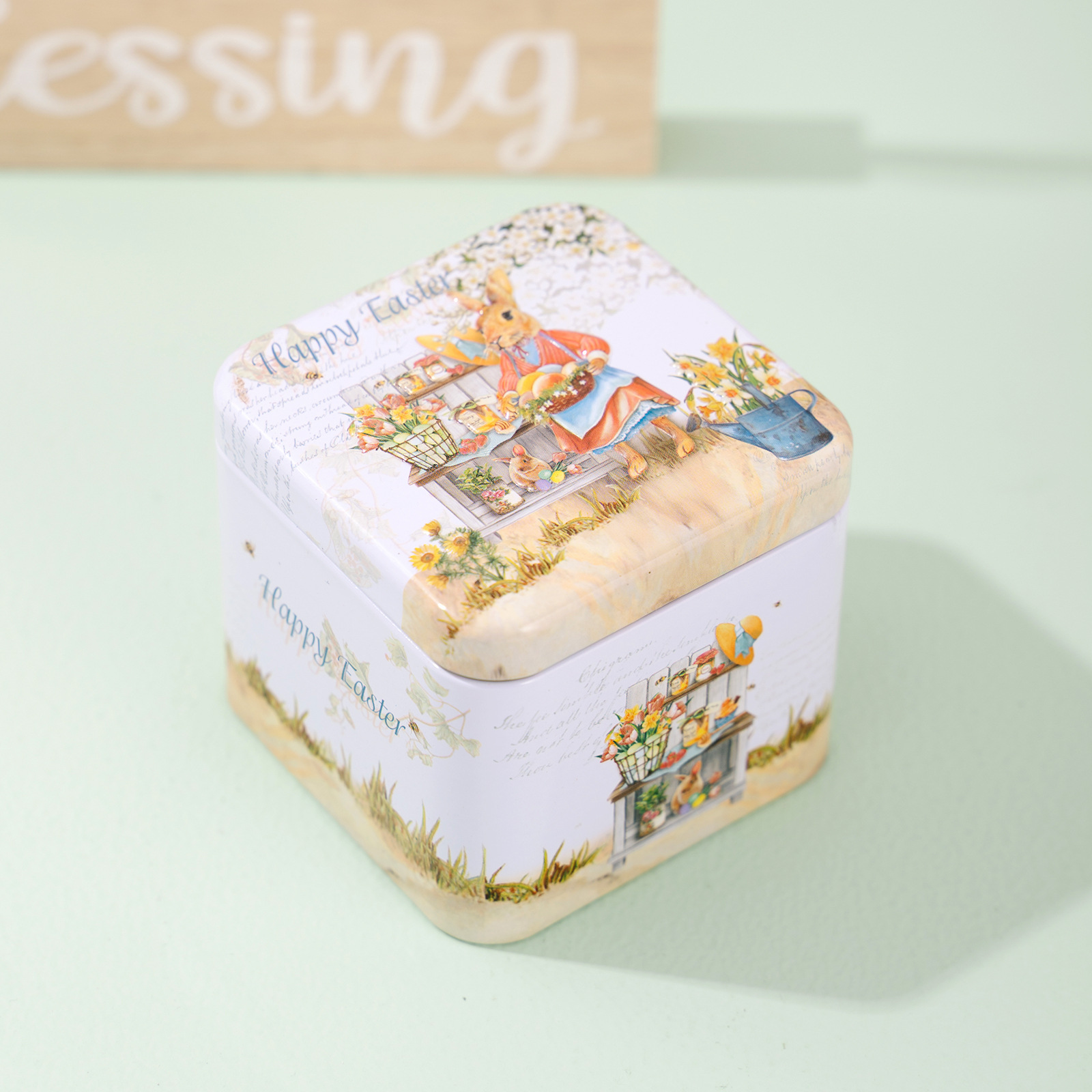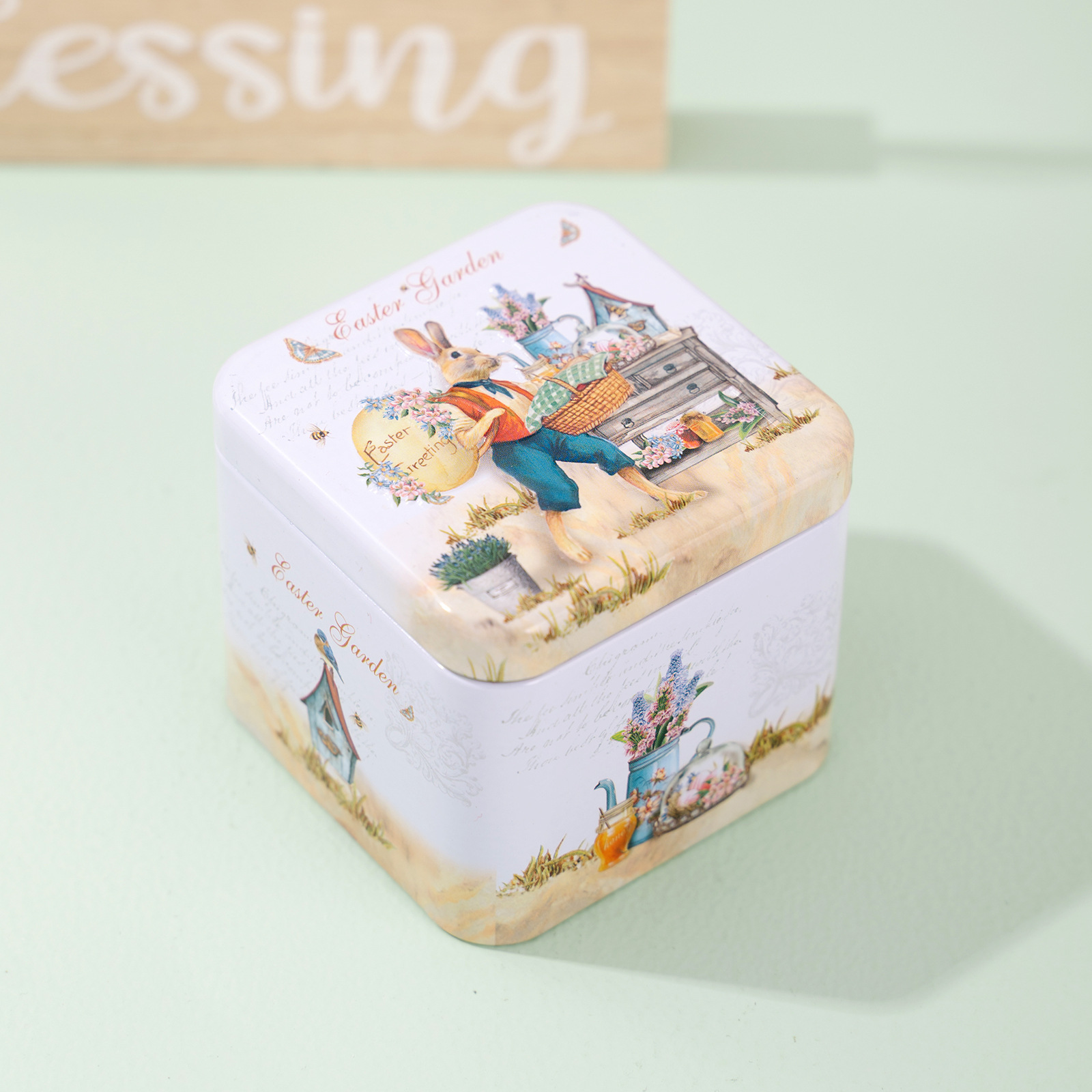 easter tinplate small square box e style
