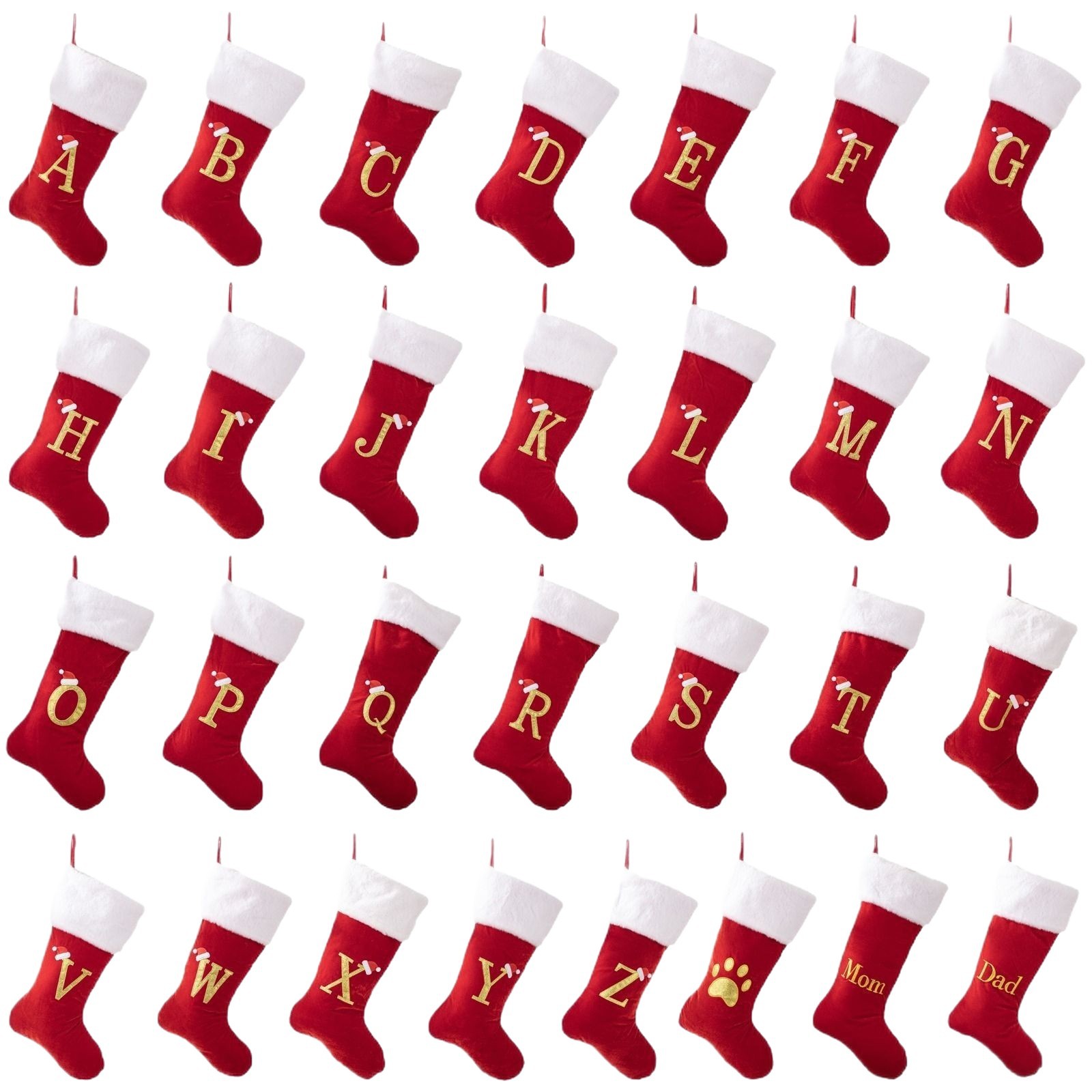velvet red christmas stockings letter paws