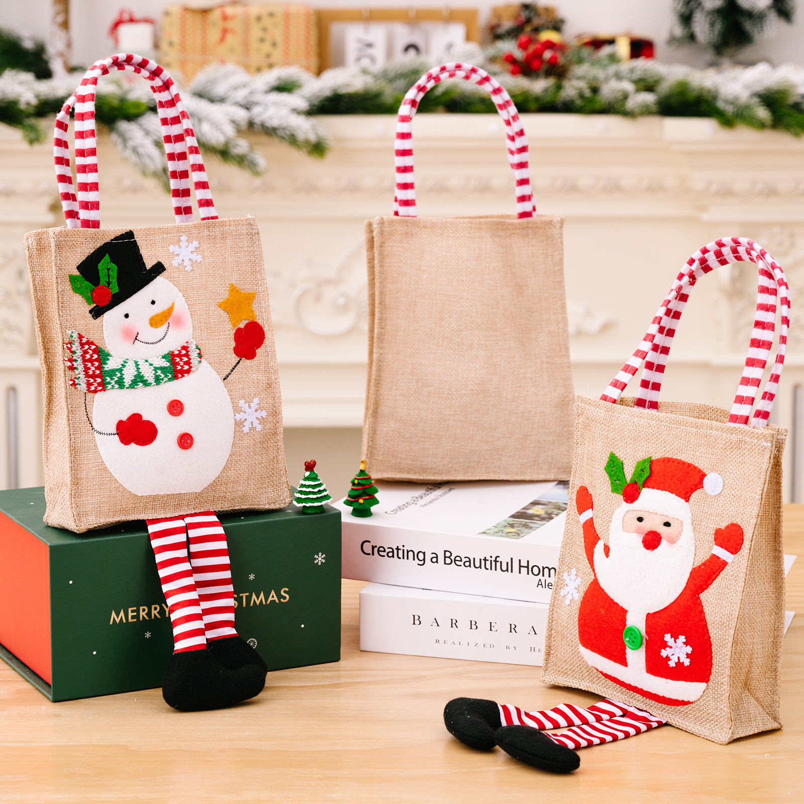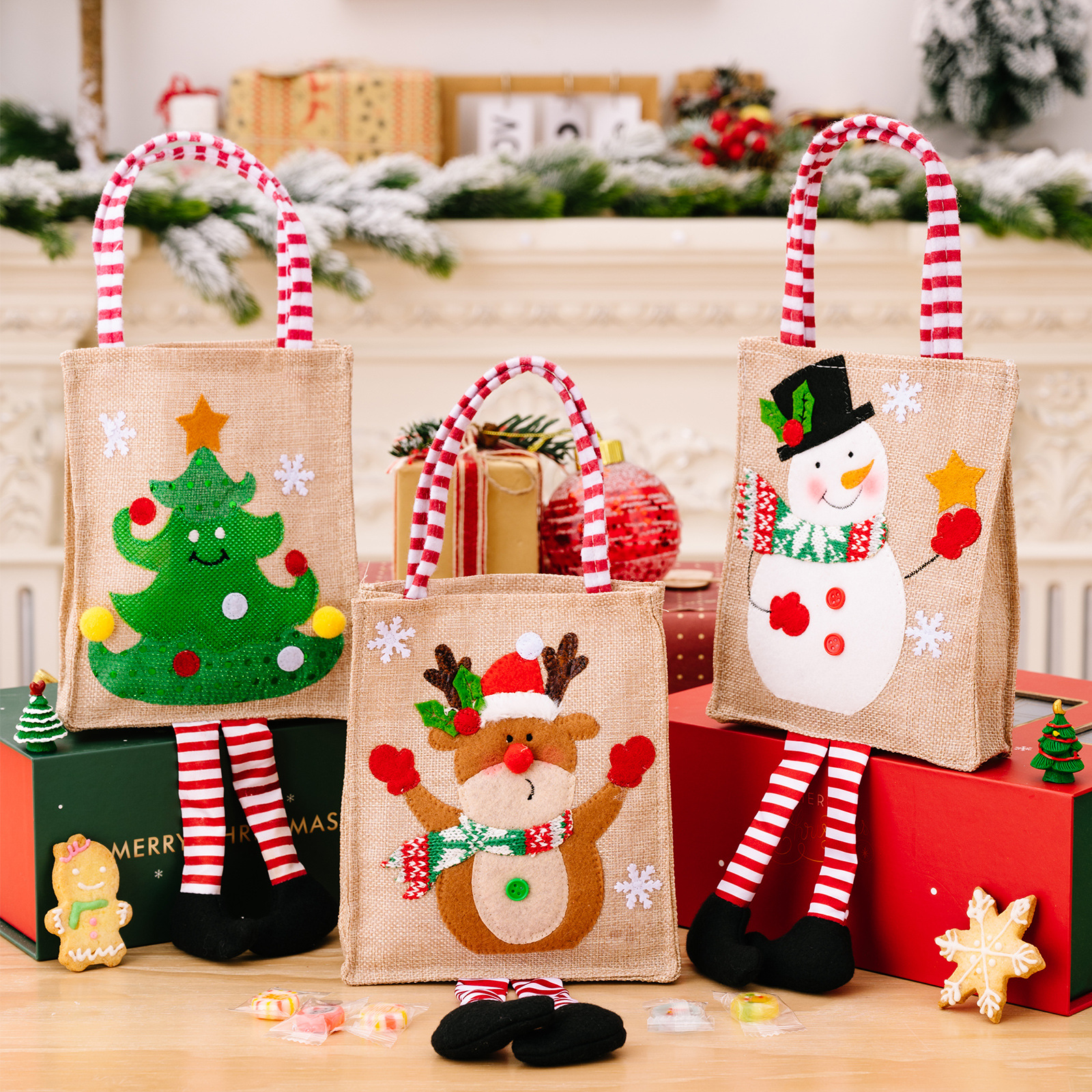 striped leg hanging handbag snowman style