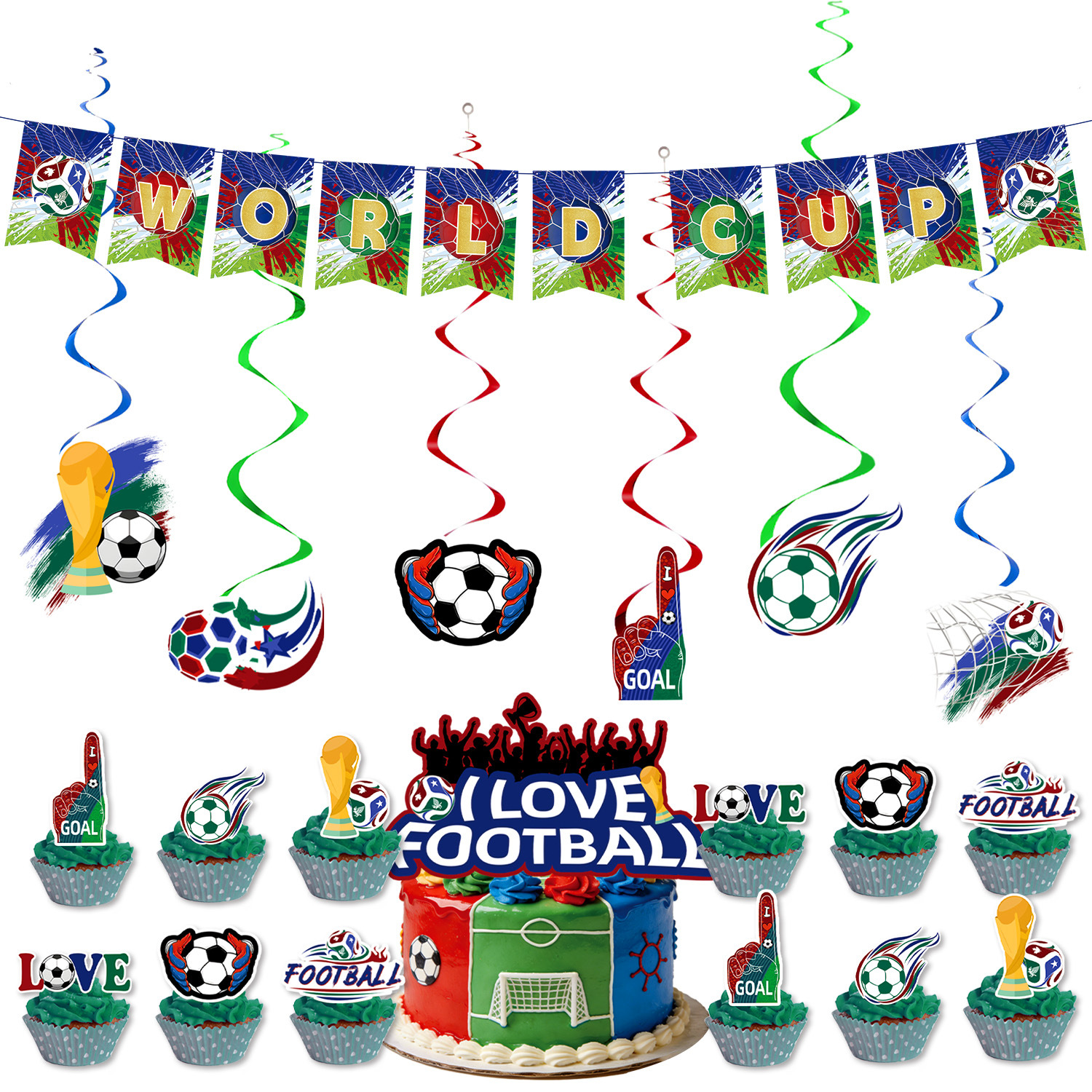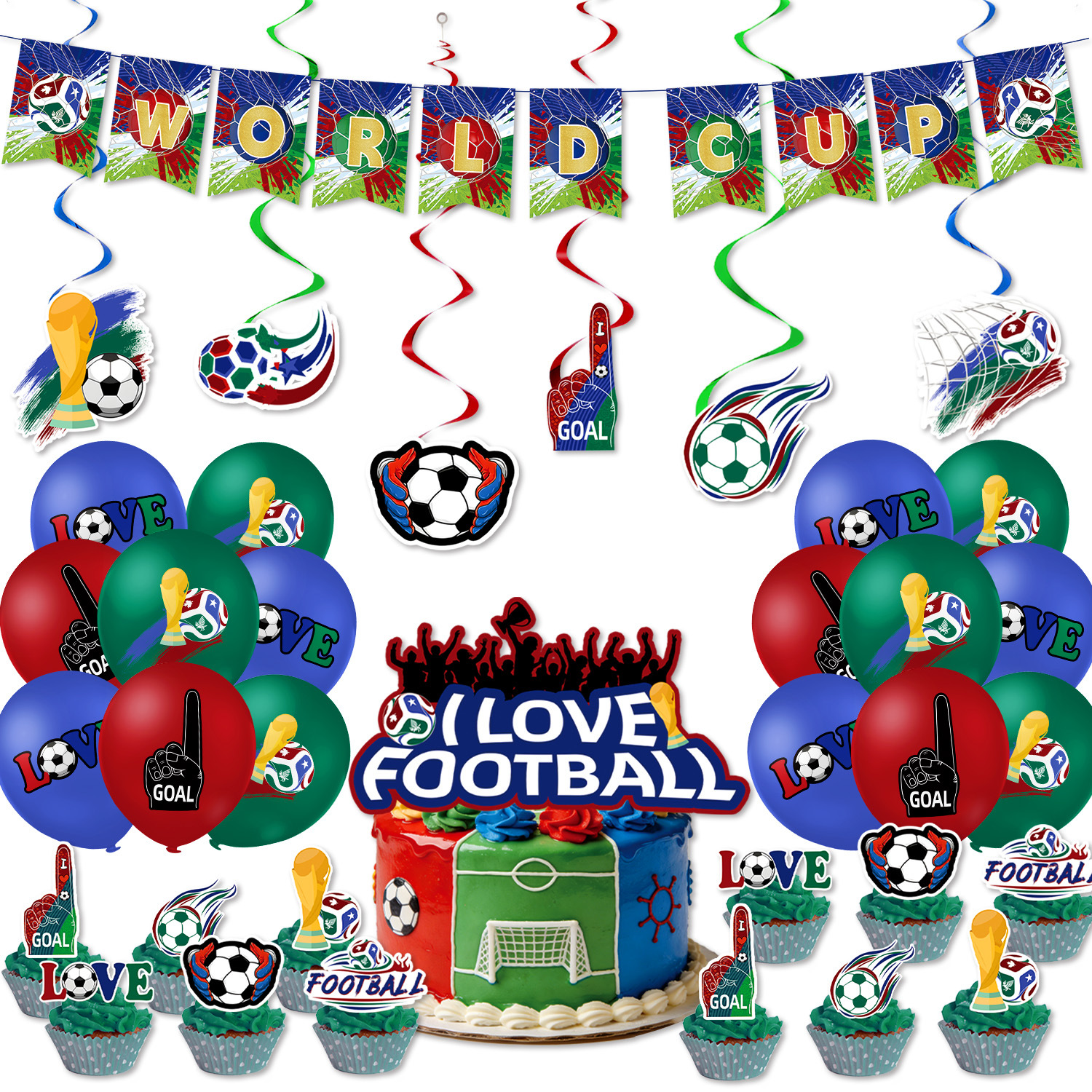 world cup 5-piece set (balloons + hanging swivel + hanging flag + large power strip + small power strip)