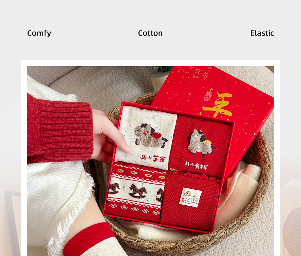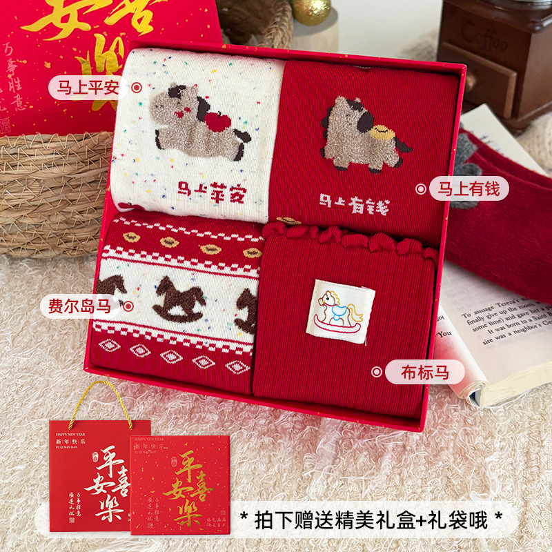 [ping an xile gift box + gift bag] fairisland horse + immediately rich + cloth mark horse + immediately safe (4 pairs)