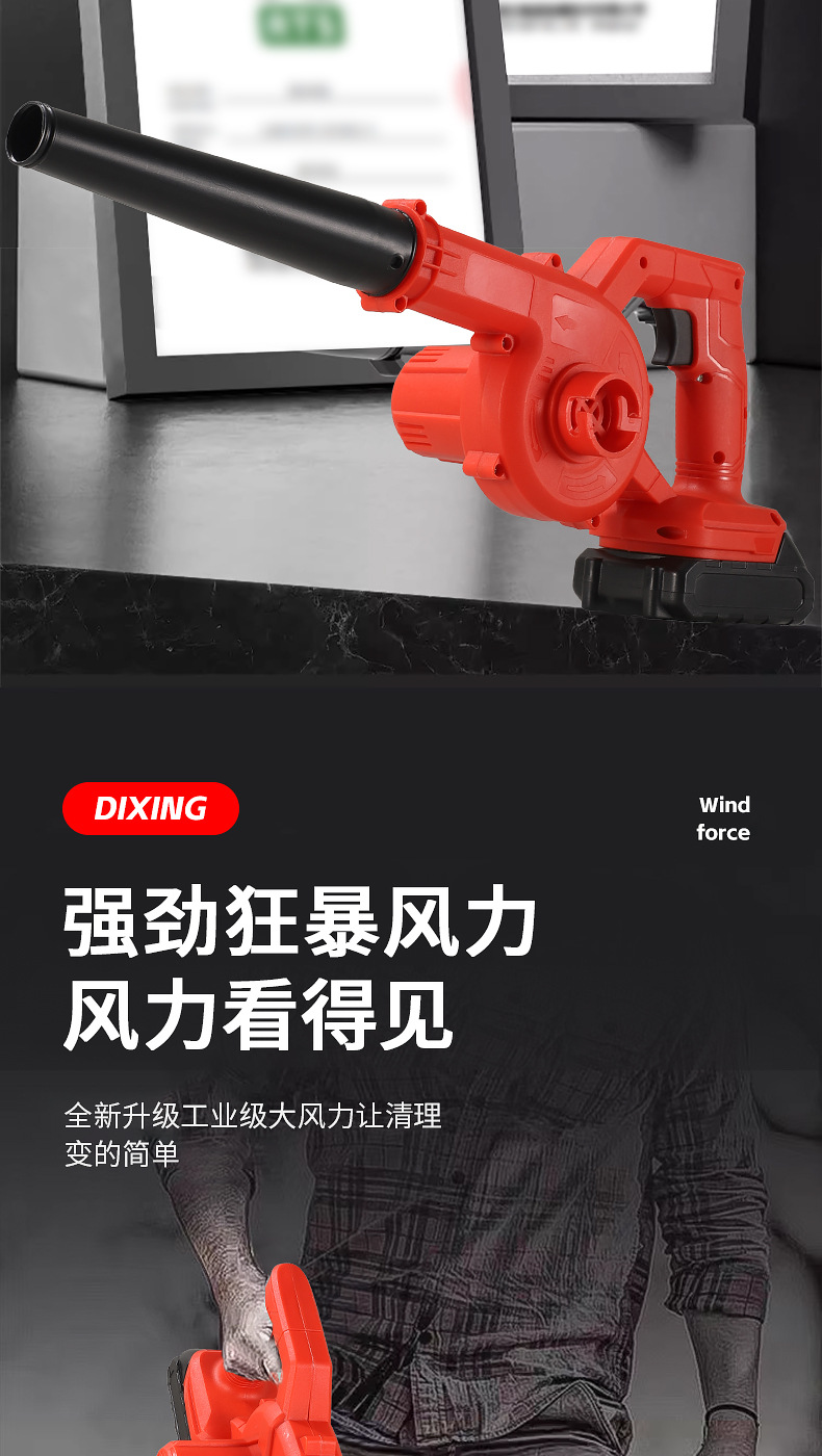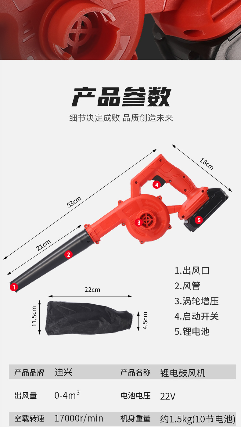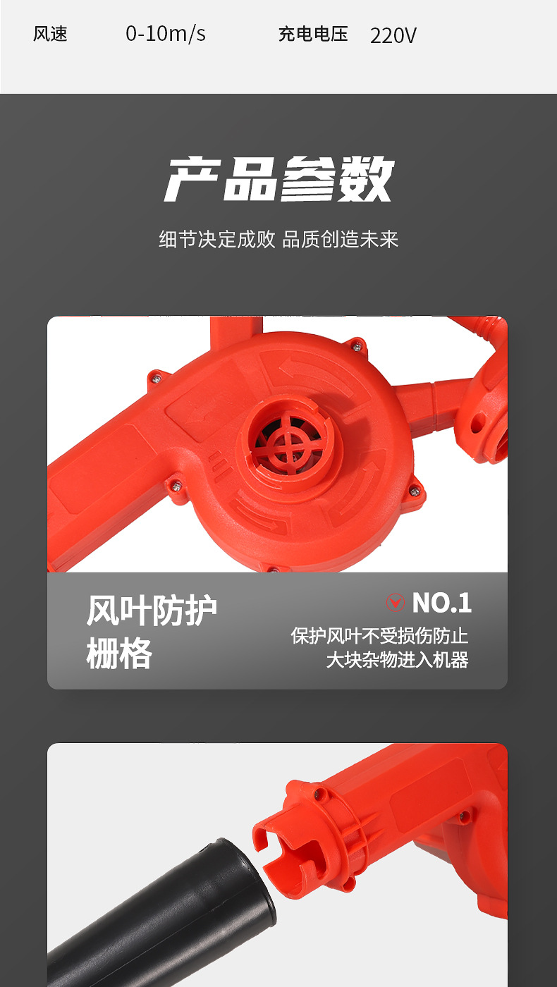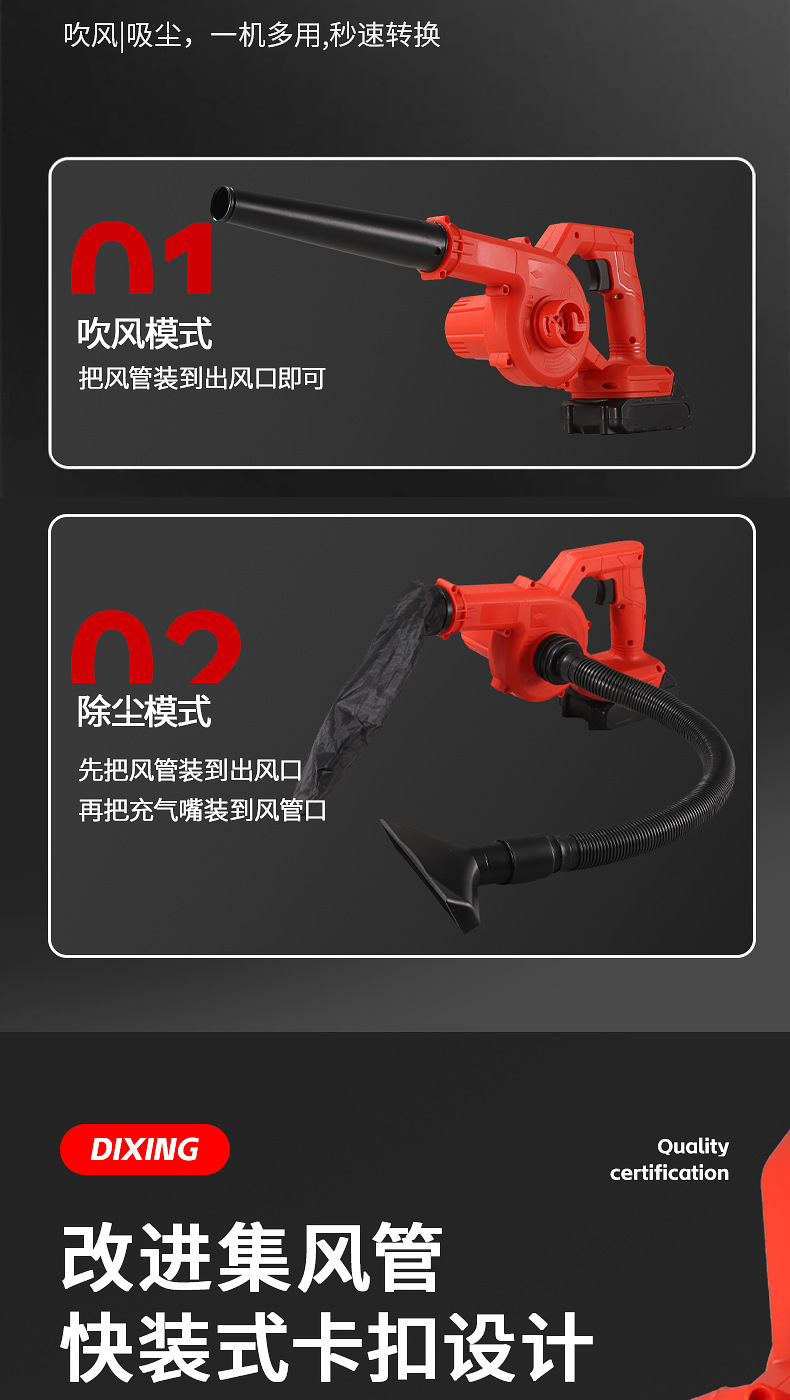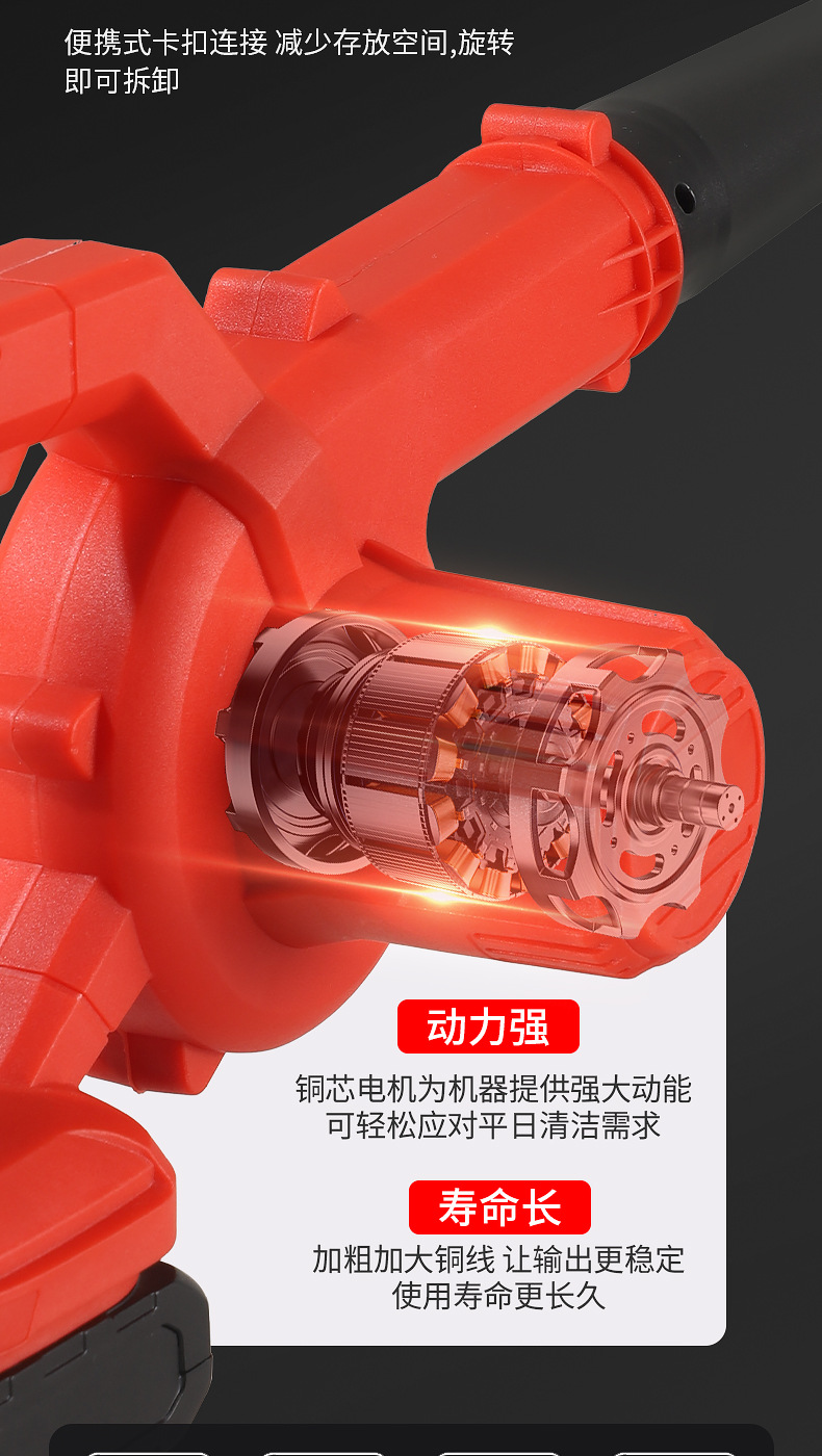 one-power one-charge red accessories include (dust collection bag, air duct, lithium battery)