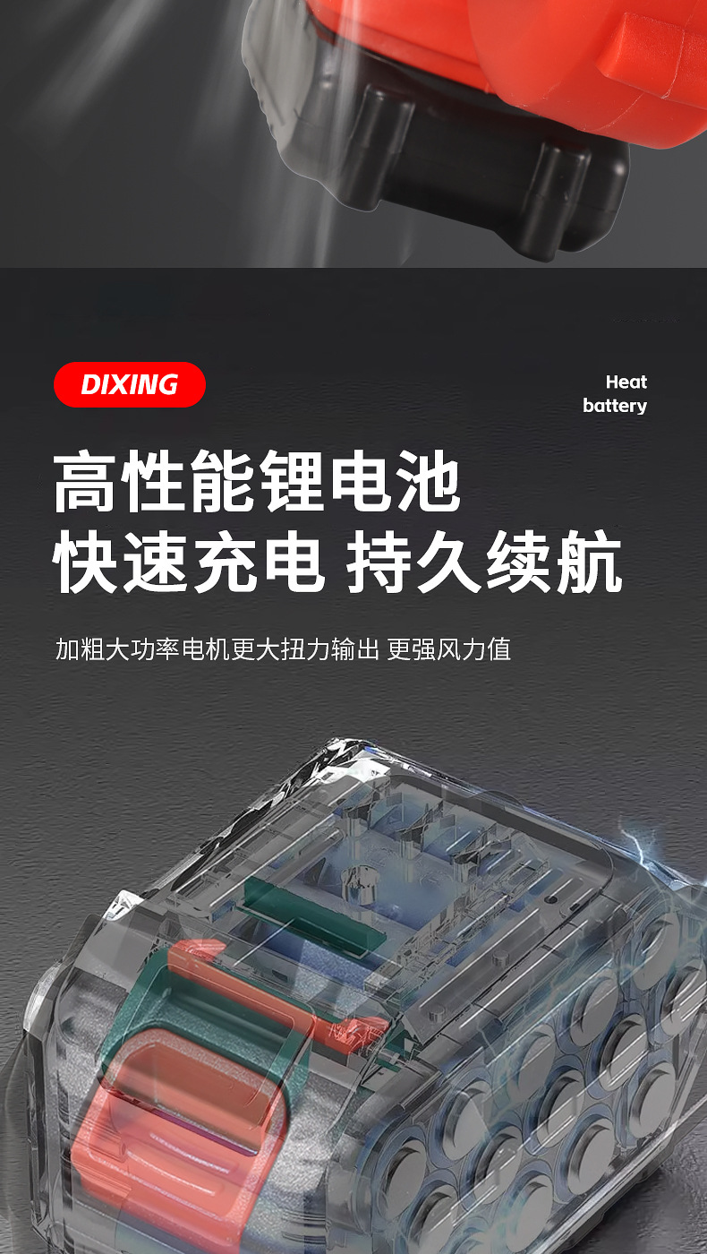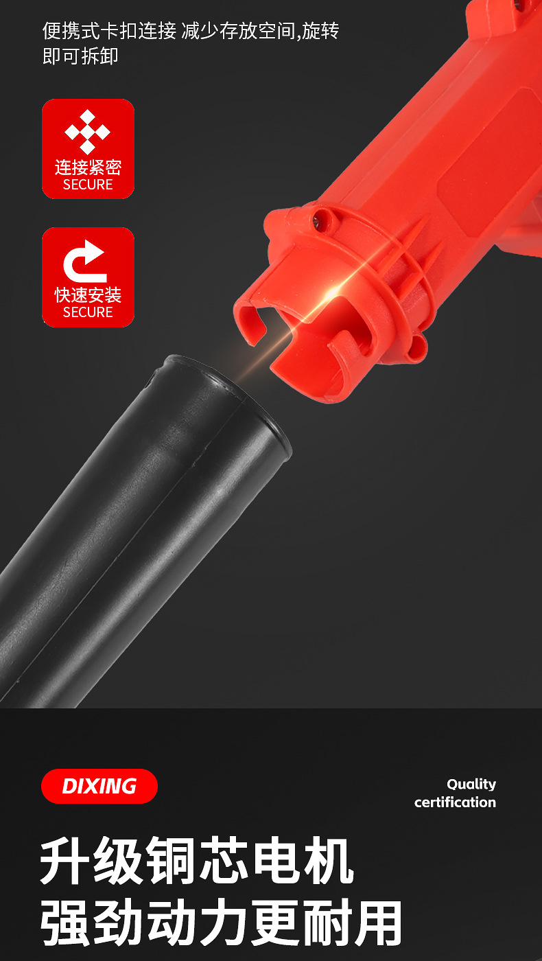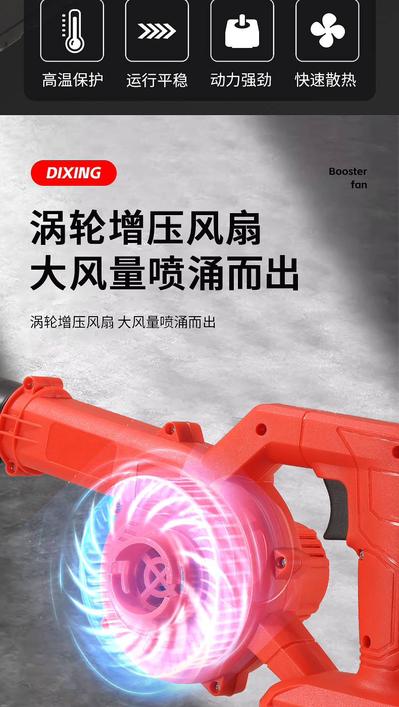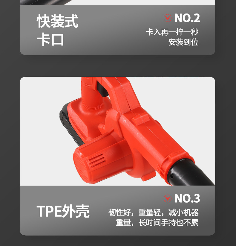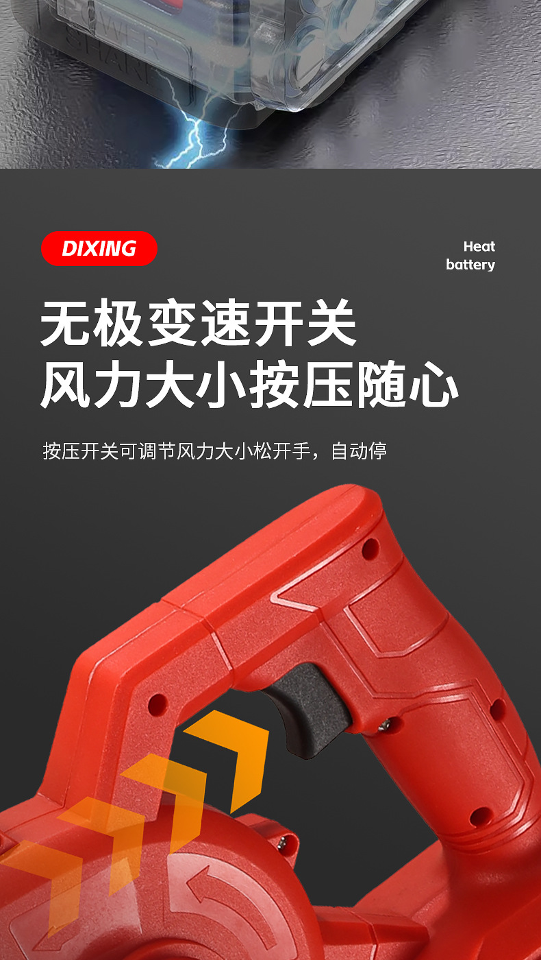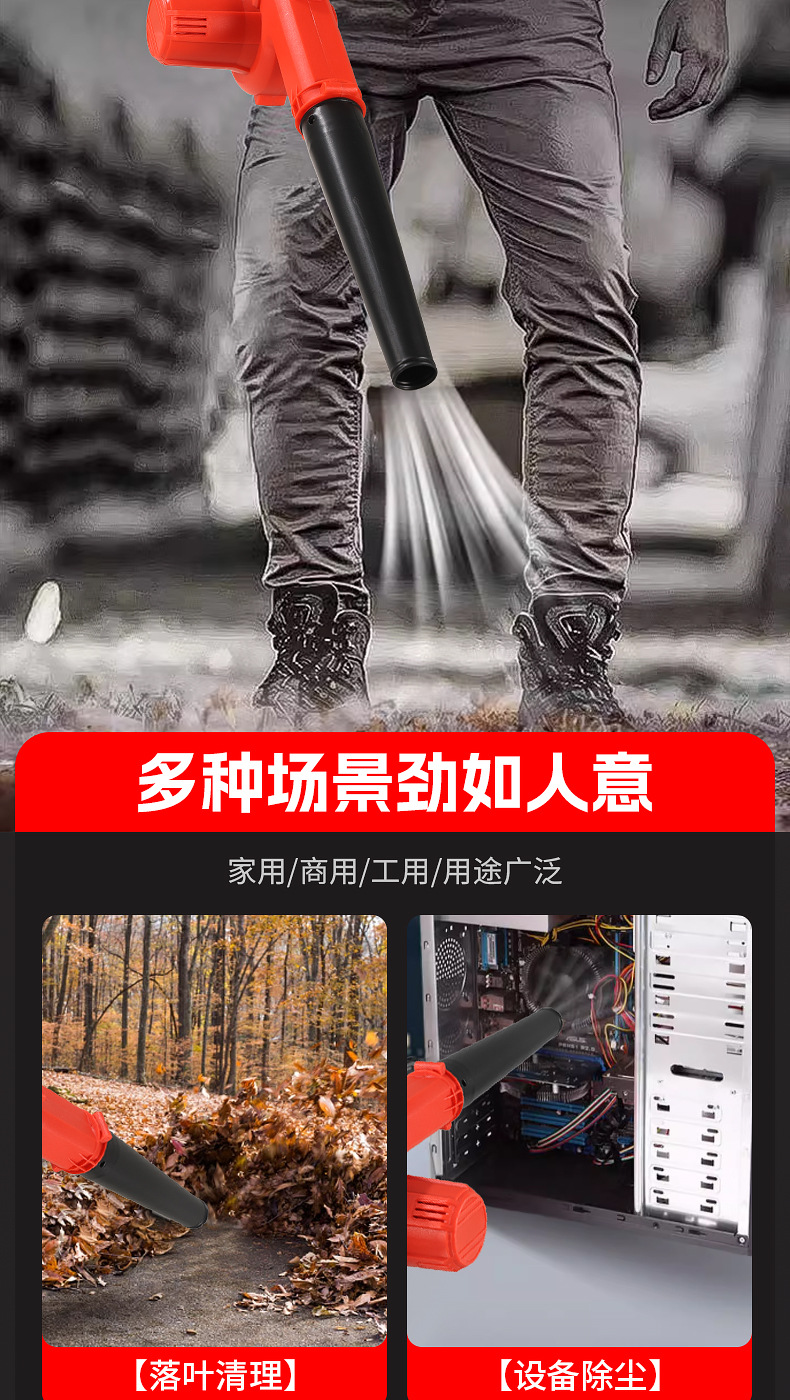 one-power one-charge red accessories include (dust collection bag, air duct, lithium battery)