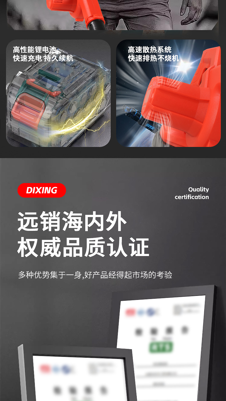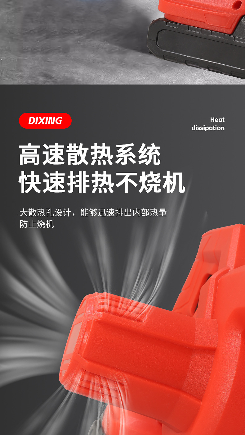 two motors and one charger in red. accessories included: dust collection belt, air duct, and lithium battery.