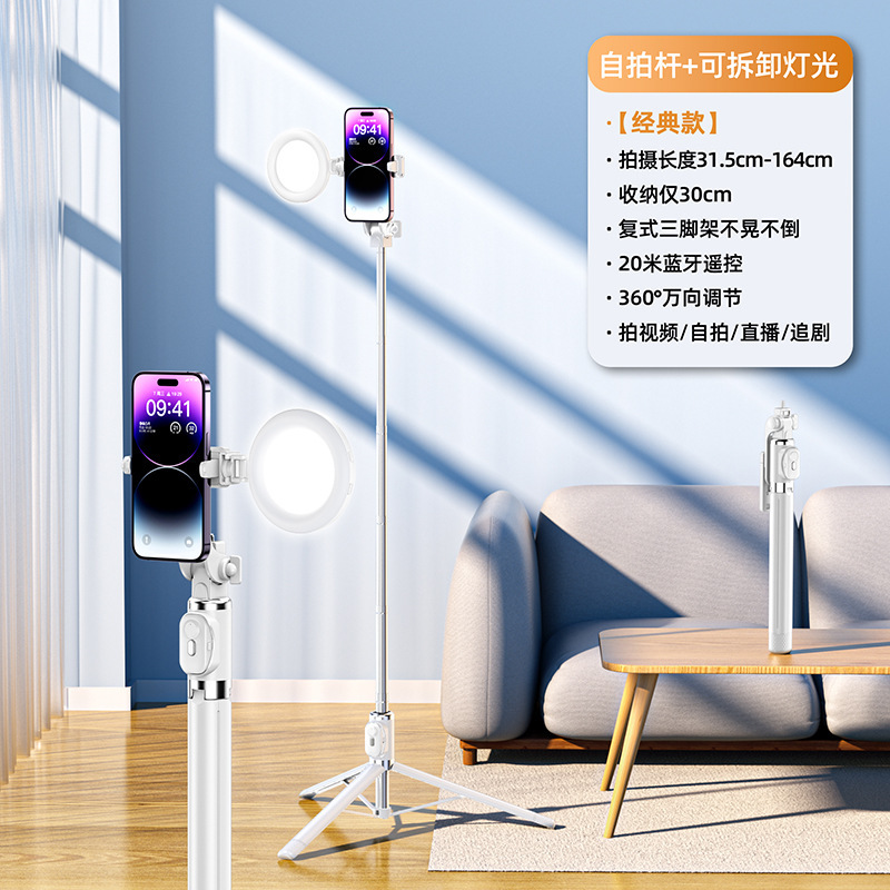 elegant white [aluminum alloy mini selfie stick-shooting aid-desktop stand + beauty single big light]