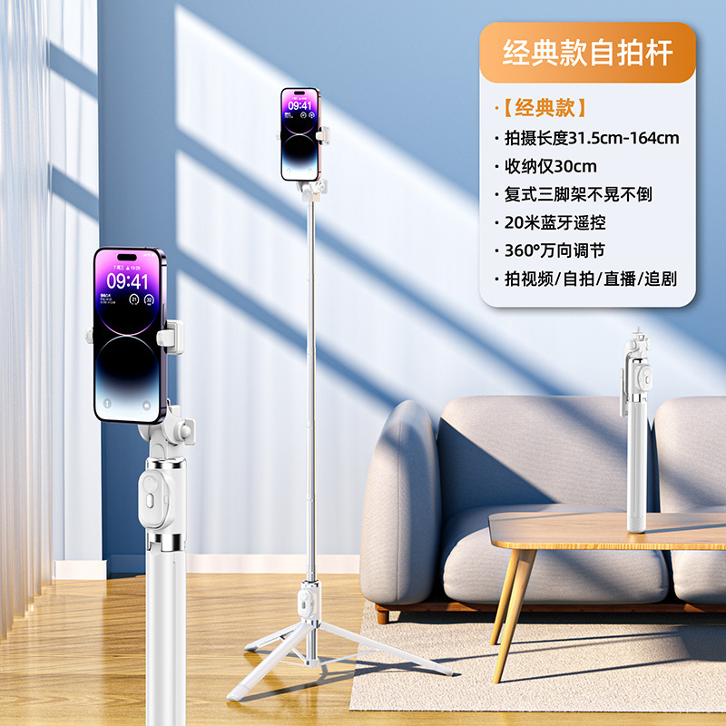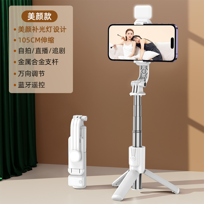 [upgraded duplex keel reinforcement quadripod shelf + charging bluetooth remote control] aluminum alloy super mini selfie stick + beauty single headlight