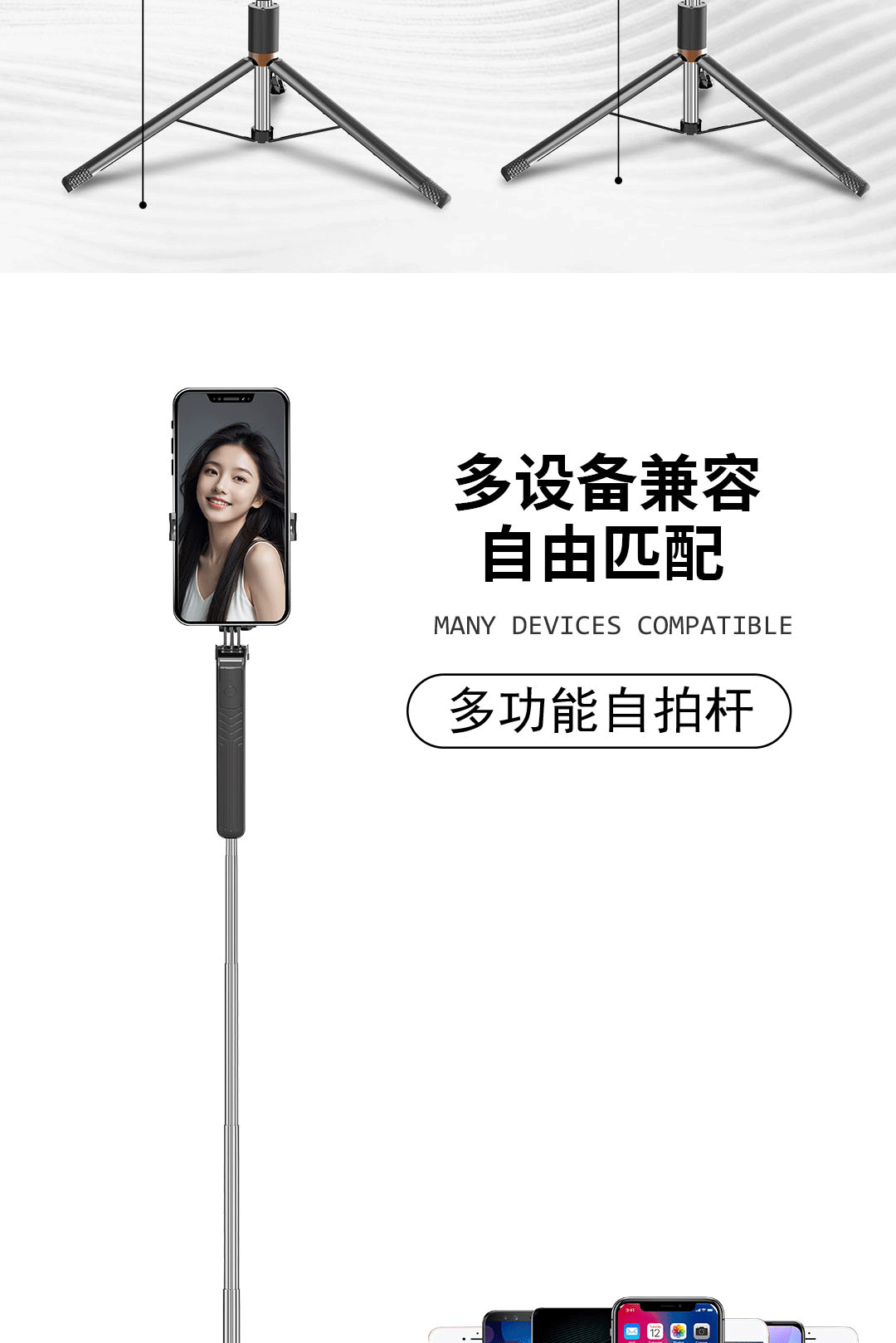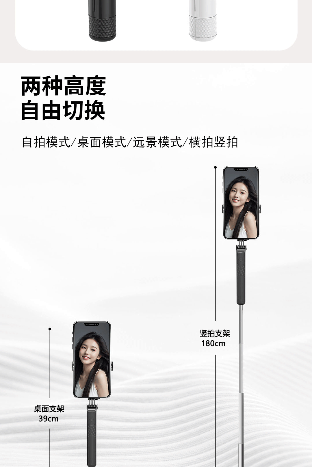 elegant white [aluminum alloy mini selfie stick-camera aid-desktop stand]]