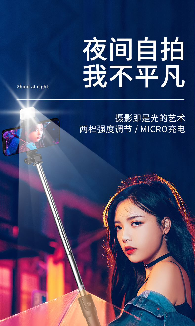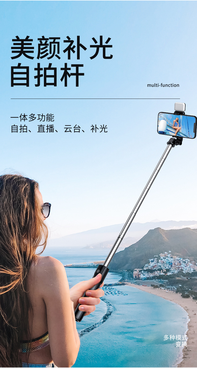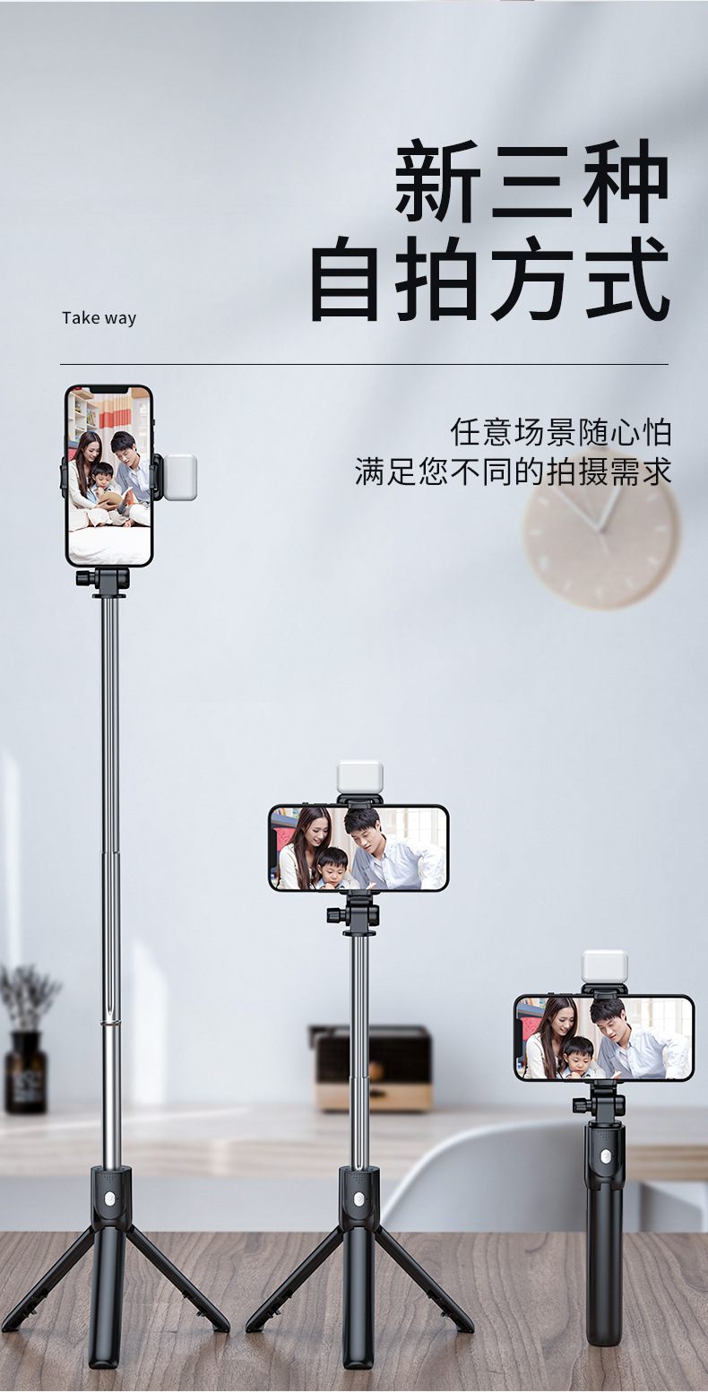 qu205 aluminum alloy black + 7-character clip + bluetooth selfie stick [220cm]