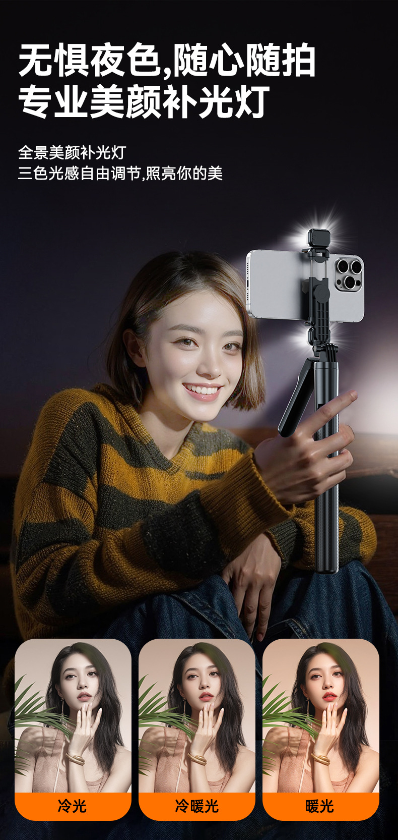 black 1.7m stand with stabilizing handle + dual lights z2ss