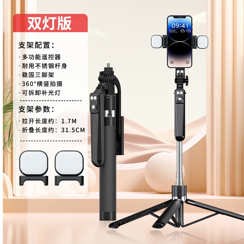 pink 1.7-meter anti-shake selfie stick +2 large round lights b16