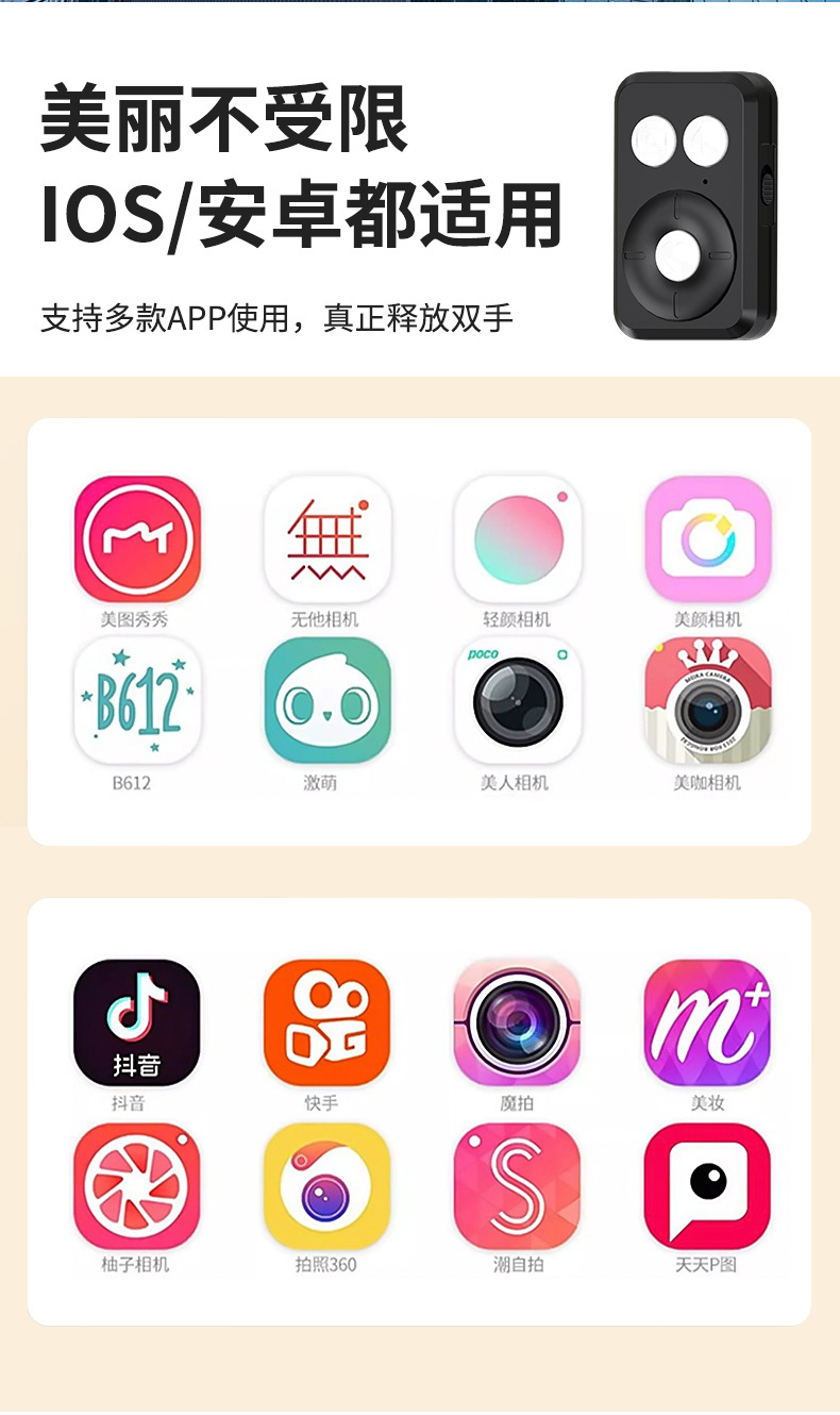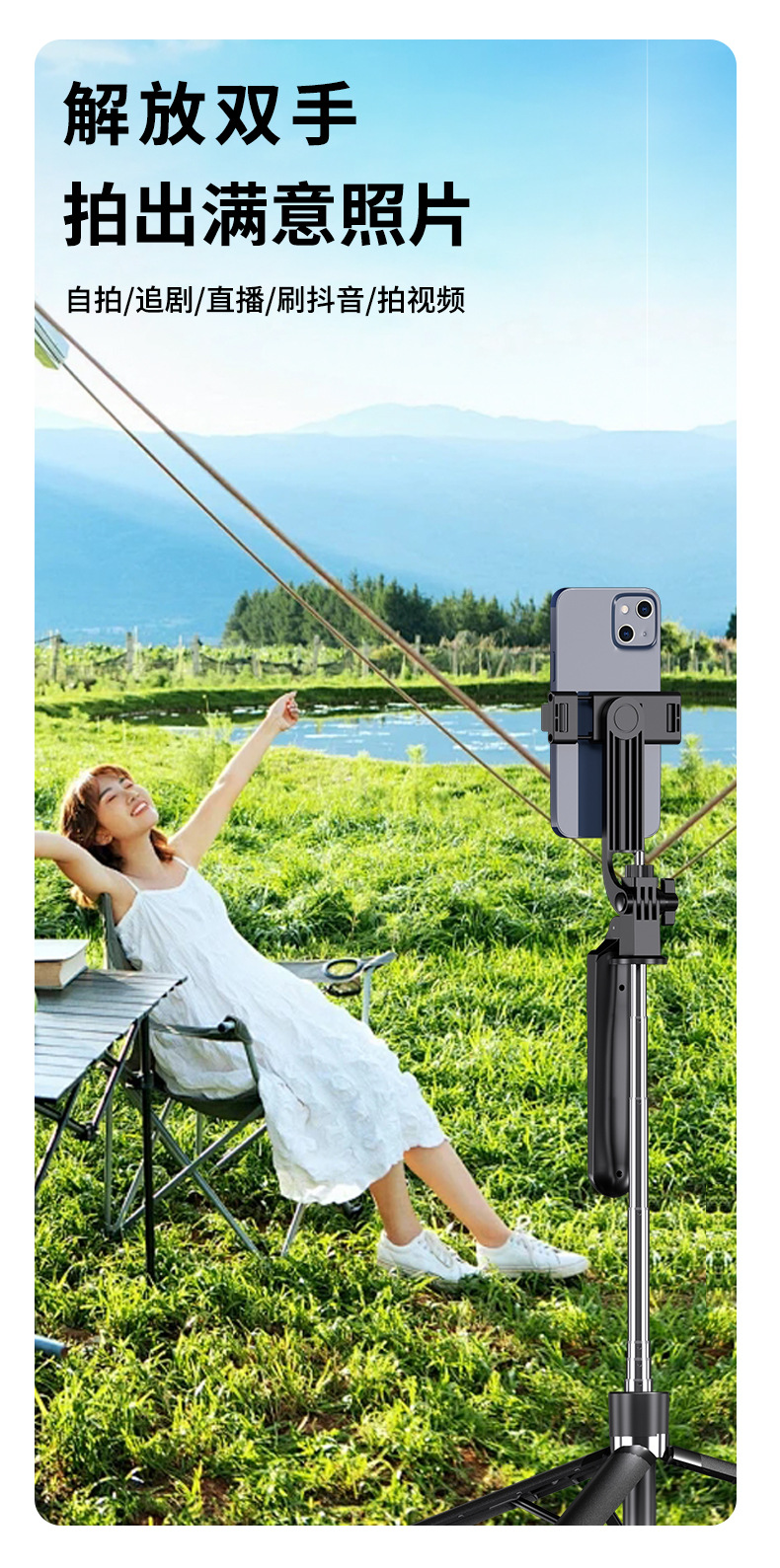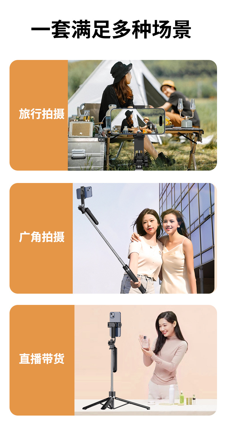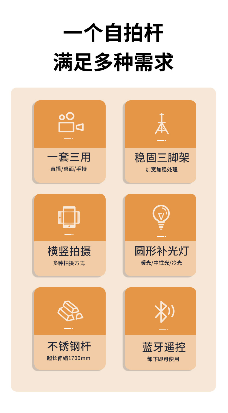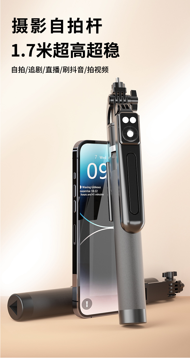 black 1.7m selfie stick +1 large round light b16