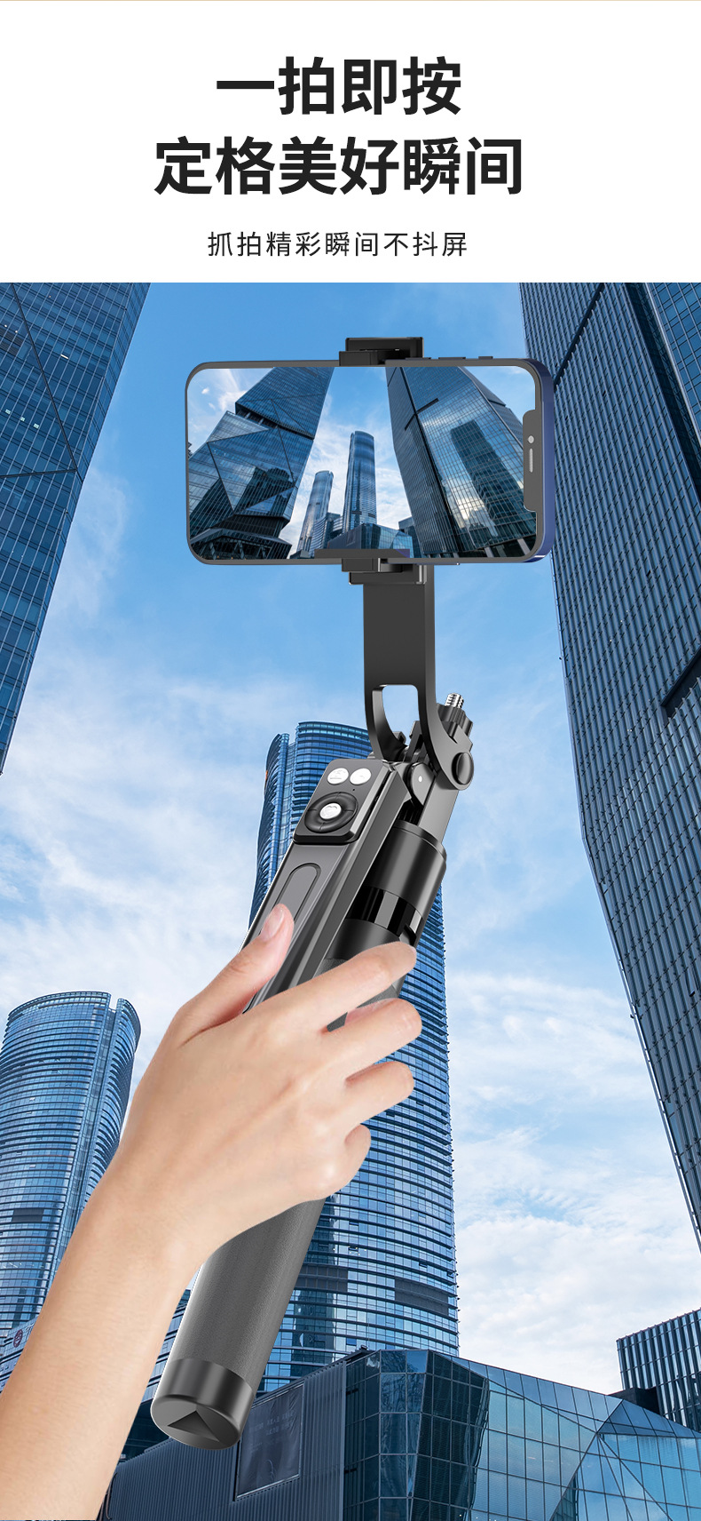 black 1.7 m anti-shake selfie stick without light b16