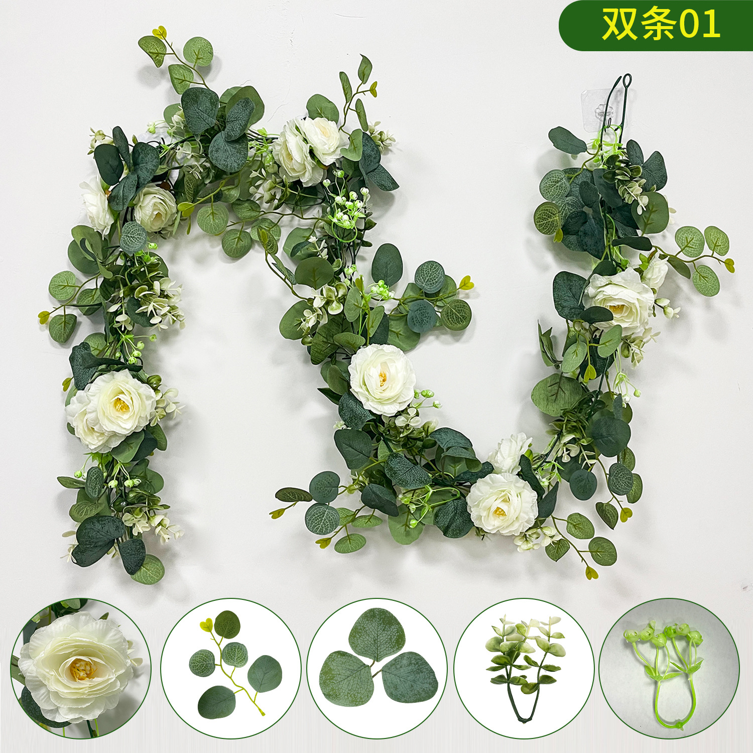one strand of zamioculcas leaves eucalyptus vine