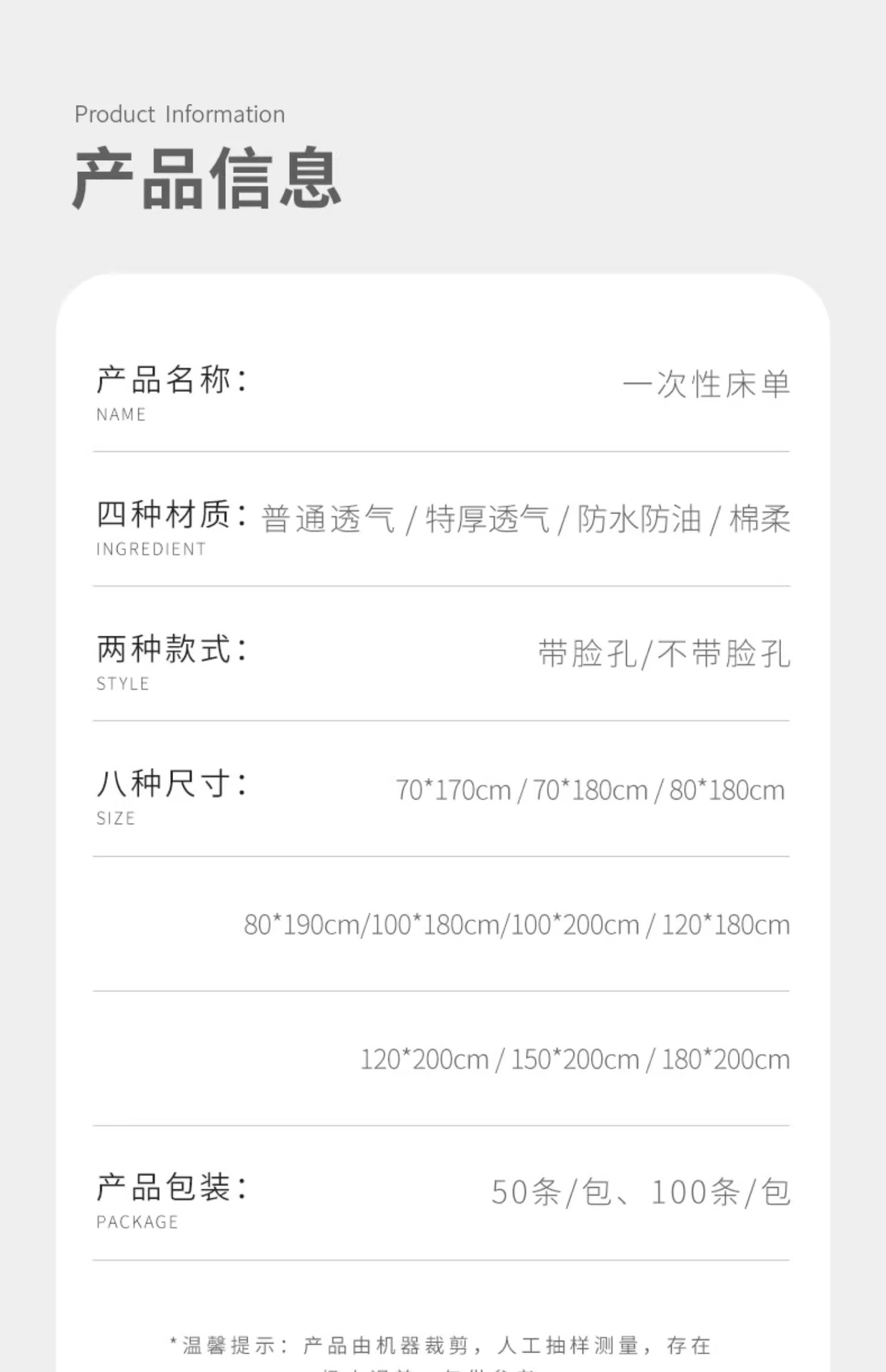 | 80 * 190cm [100 sheets]] | CN¥ 35.7 |