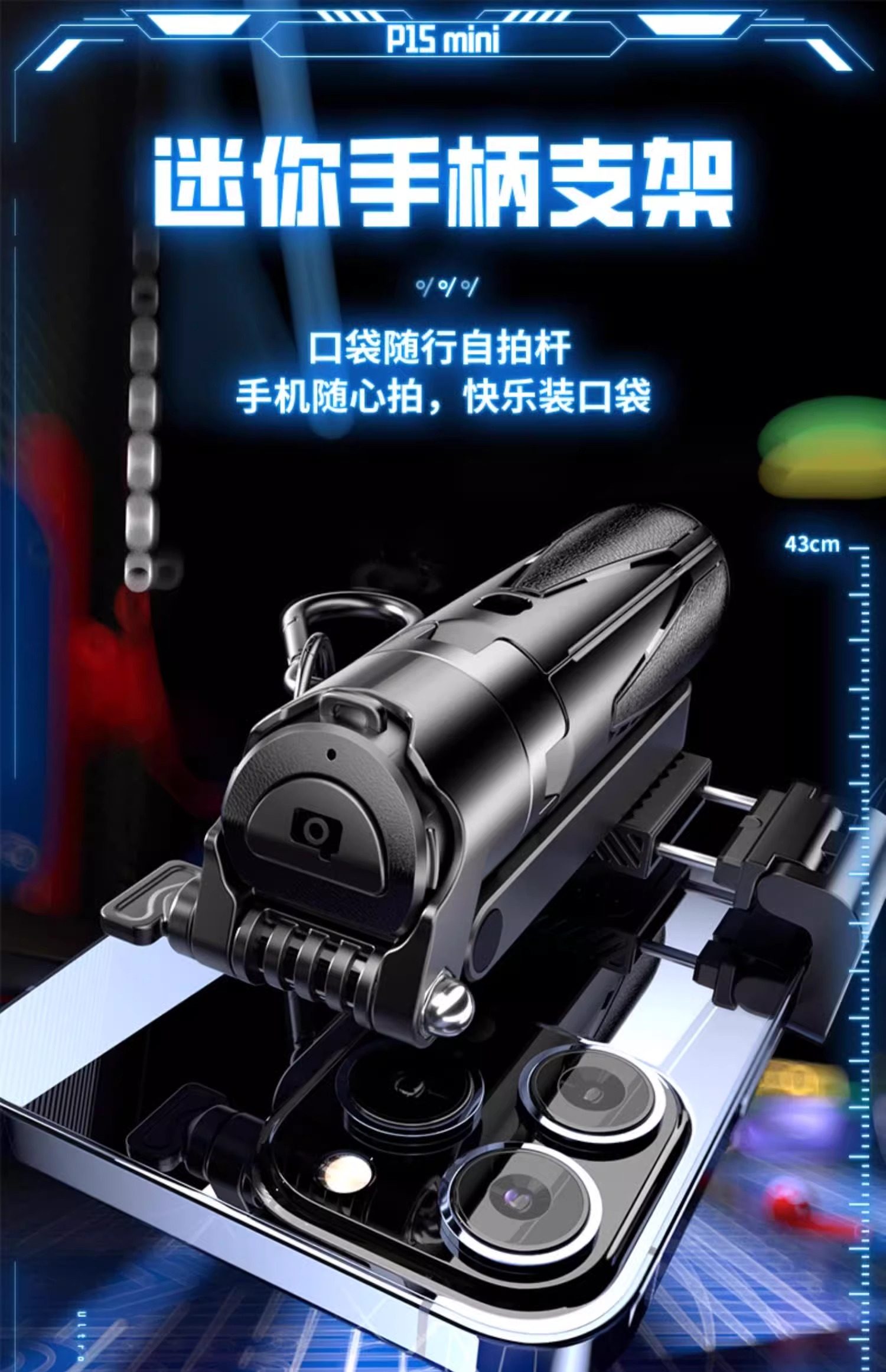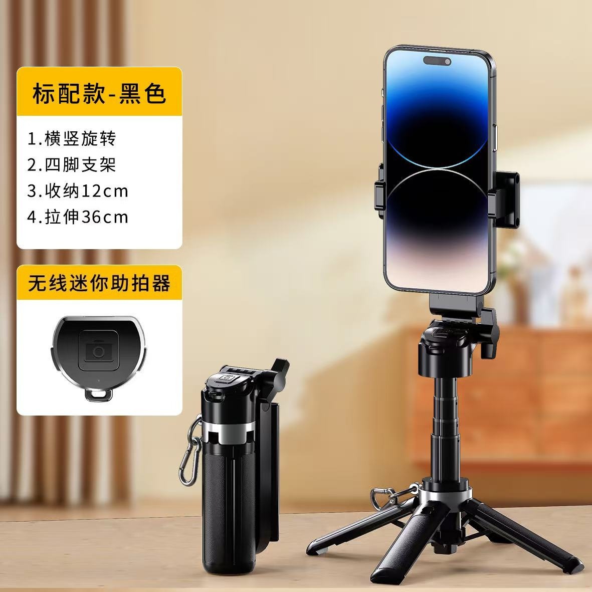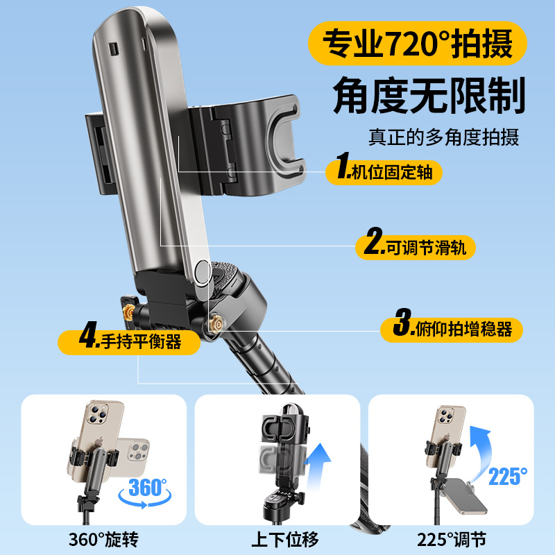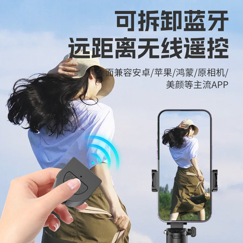 portable models [fashionable black] extra-stable aluminum alloy pan-and-tilt + free bluetooth remote control + metal hook