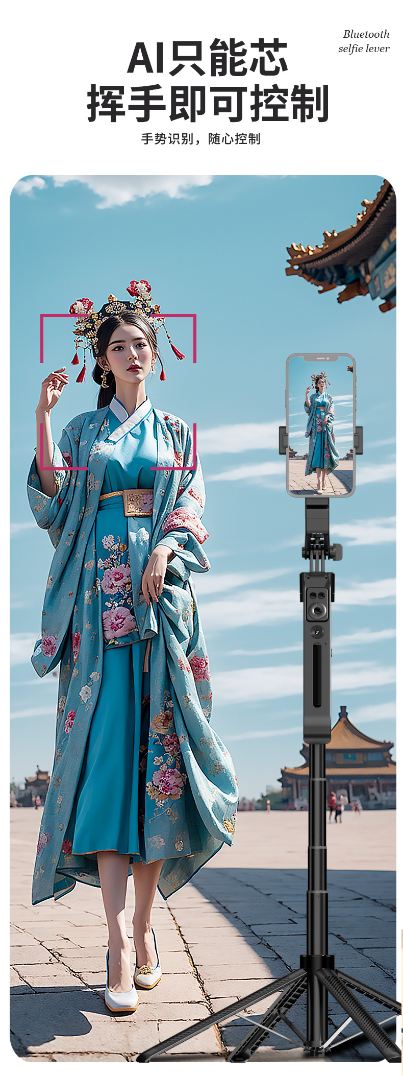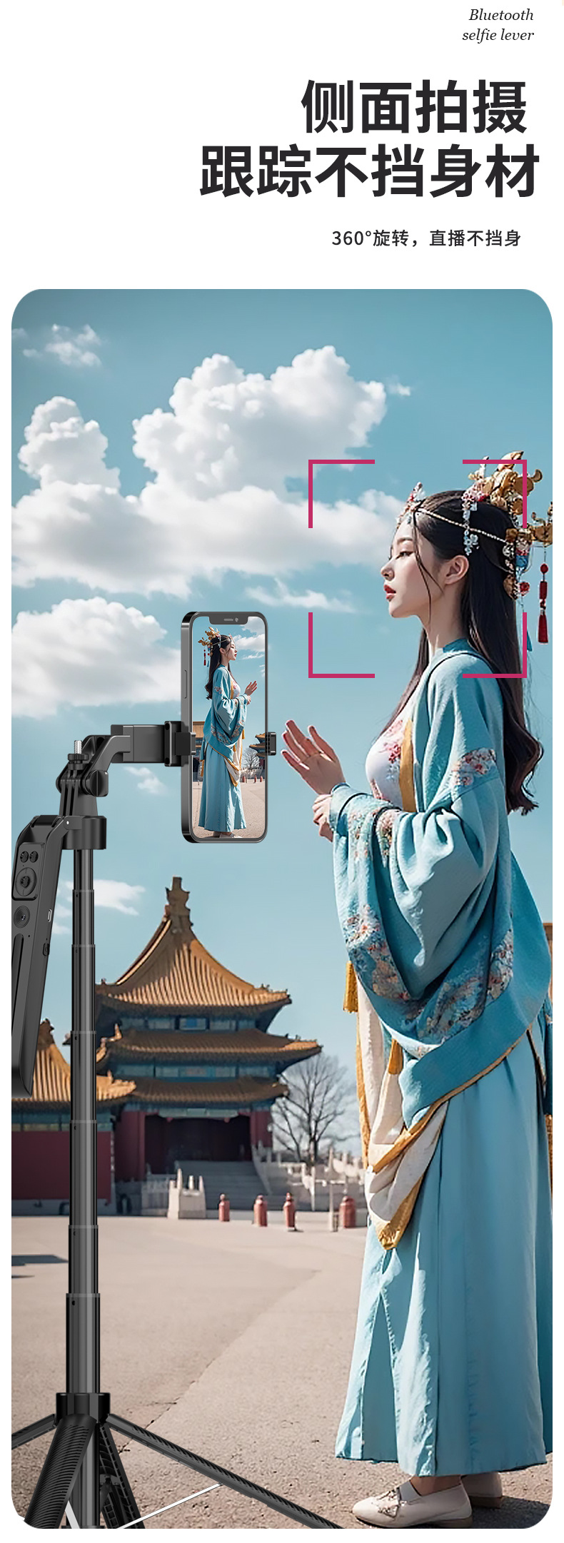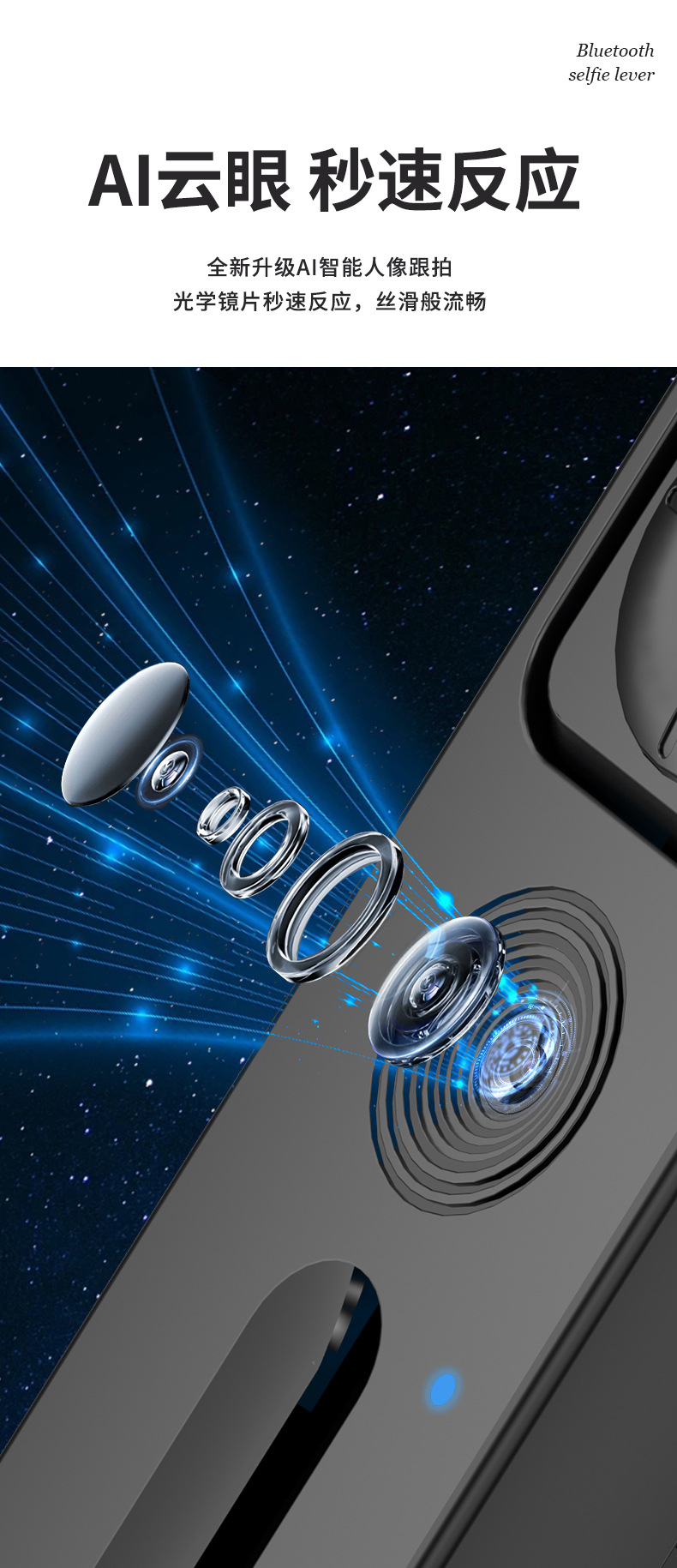 c12 and shooting integrated selfie stick bracket-black-single light
