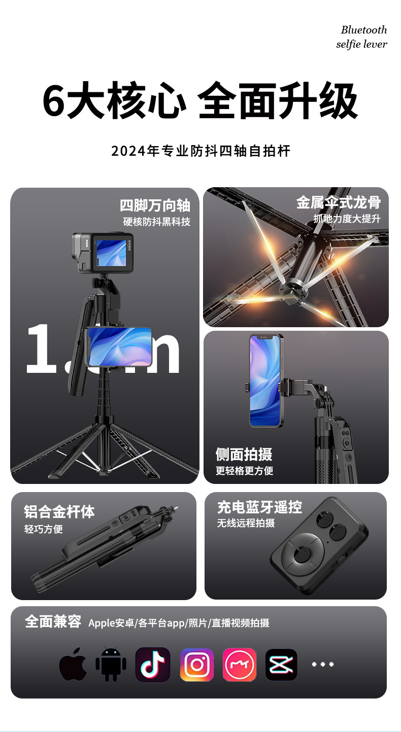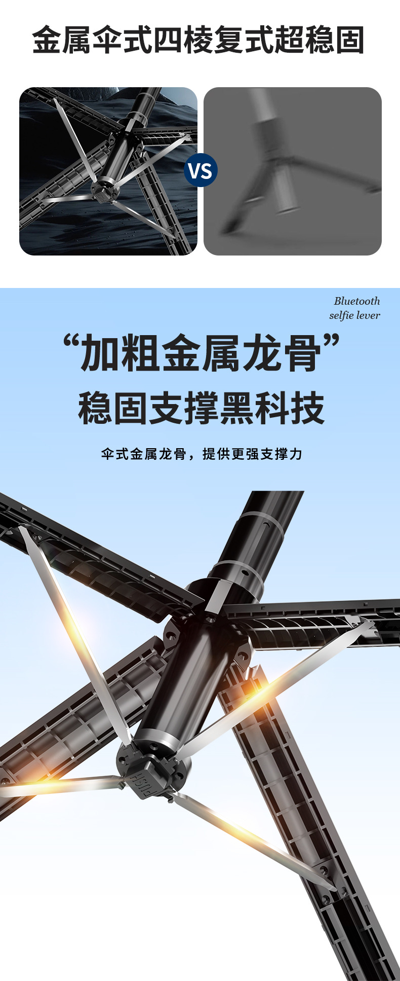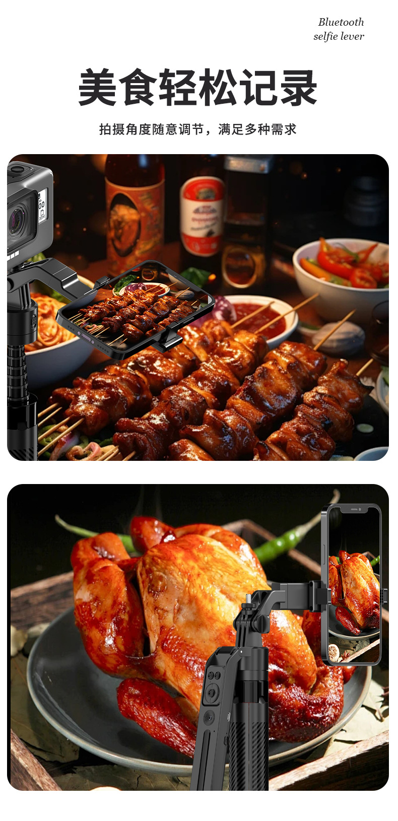 c12 and shooting integrated selfie stick bracket-black-no light