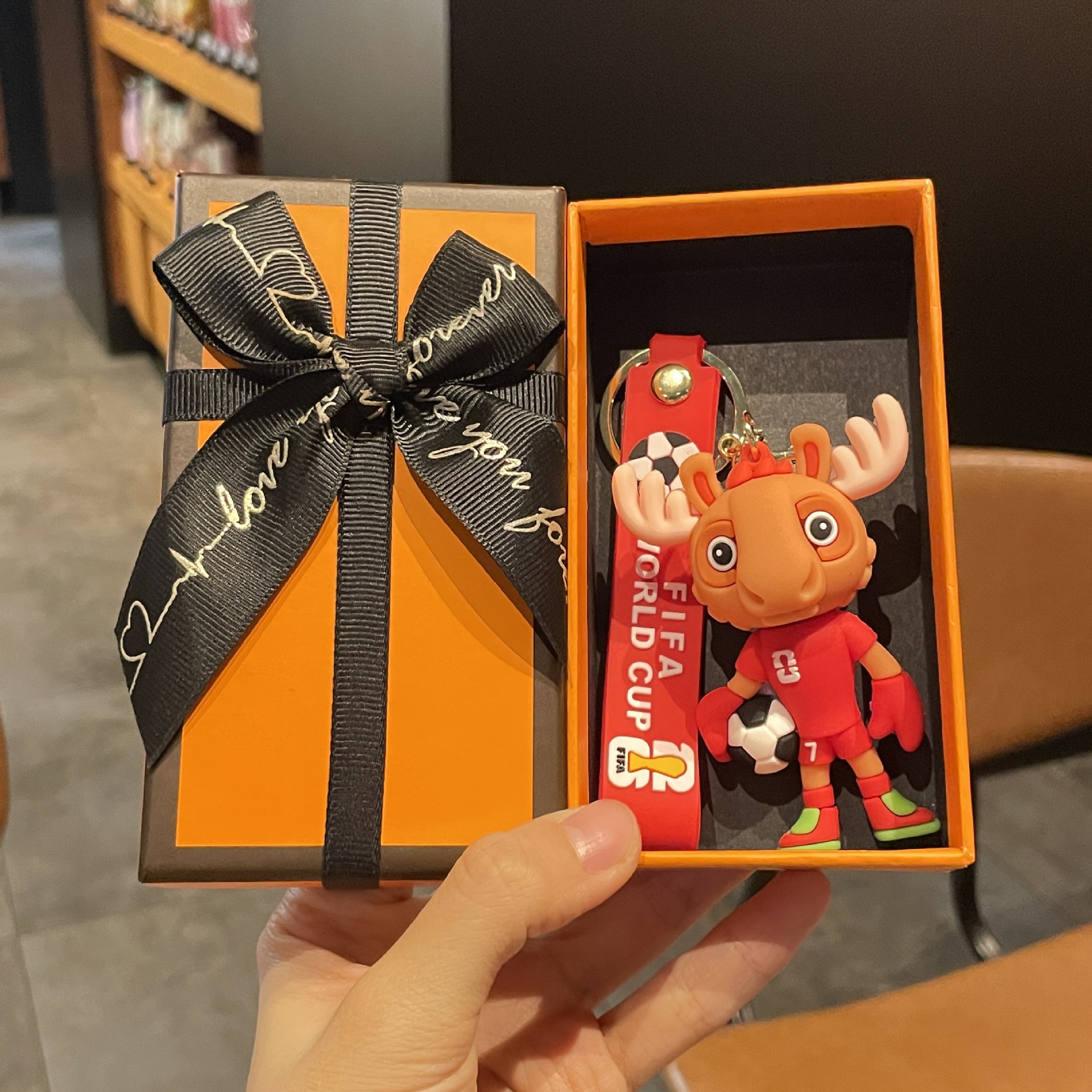 world cup mascot-moose + gift box
