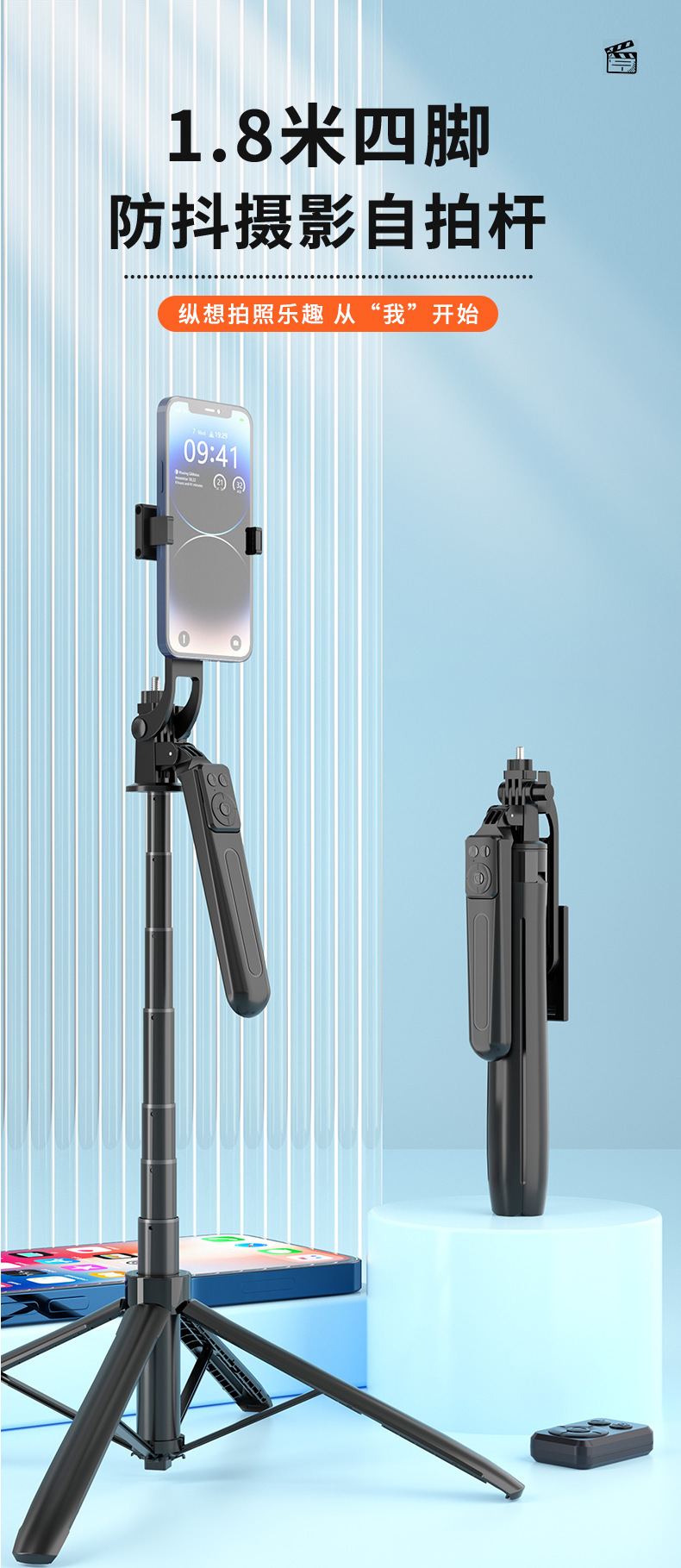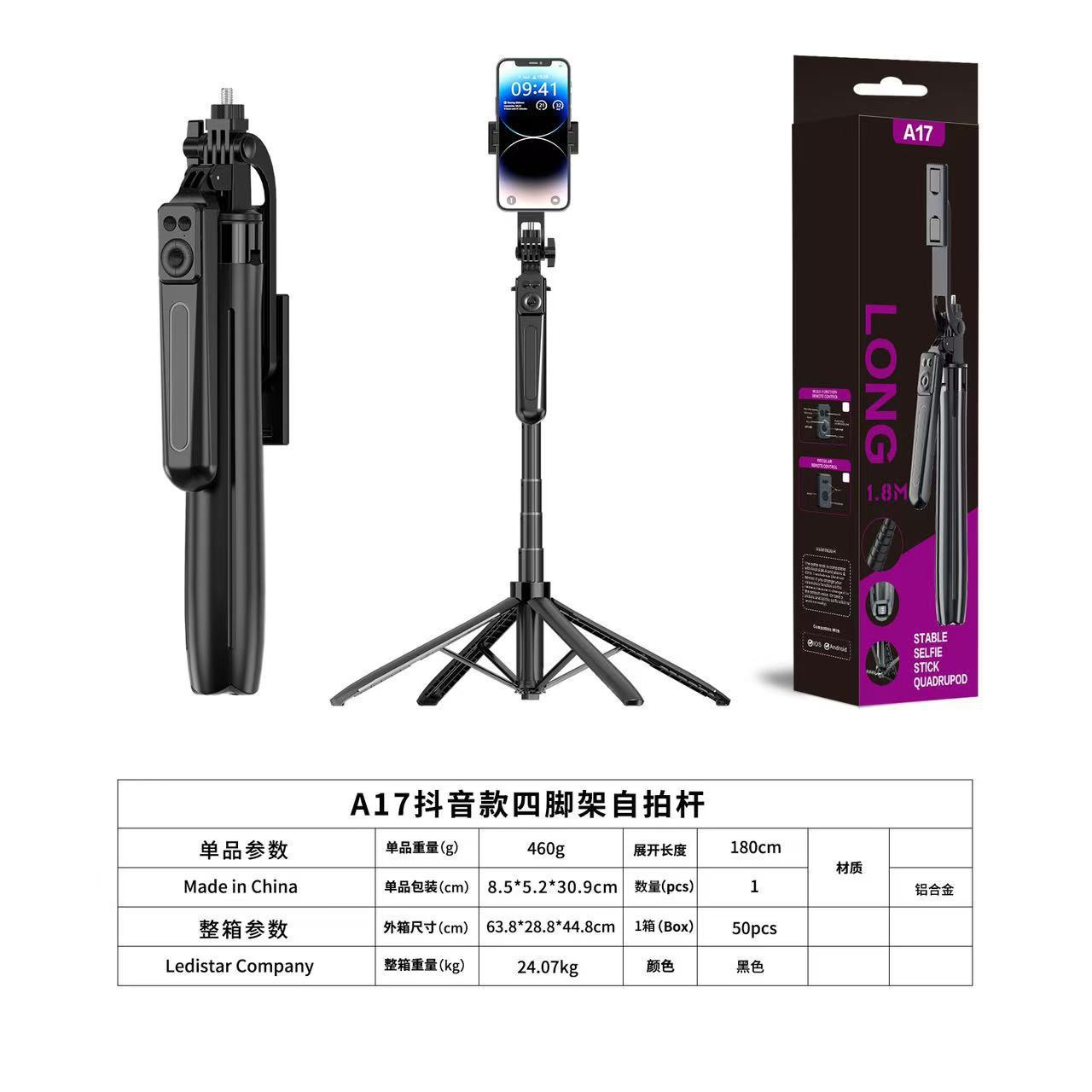 a17 selfie stick bracket [aluminum tubing] (no light model) 1.8 meters
