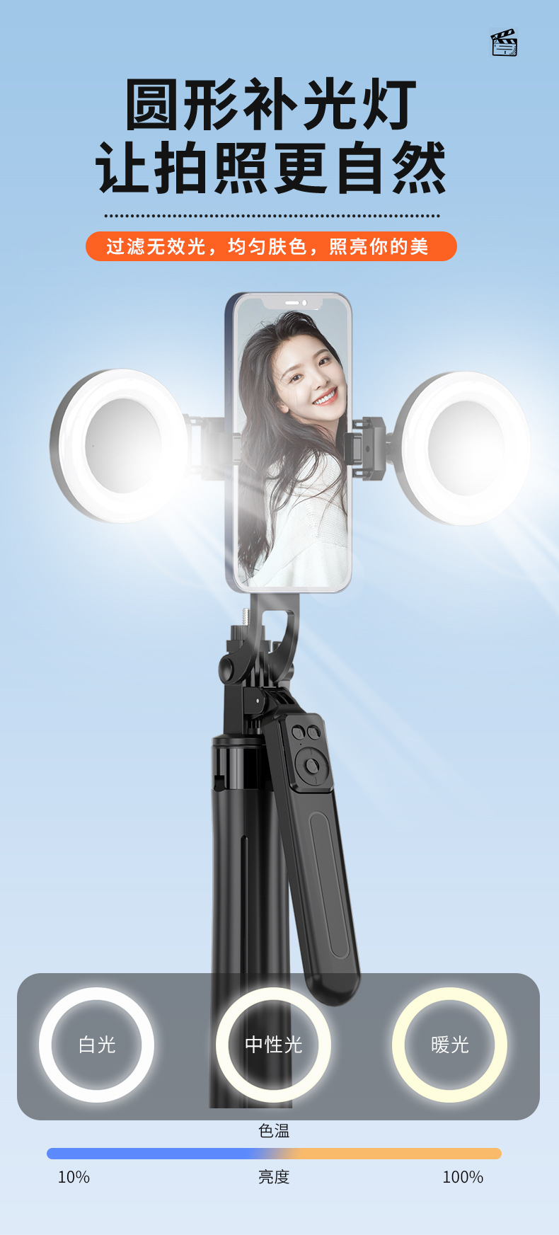 a17 selfie stick bracket [aluminum tubing] (dual-light model) 1.8 meters
