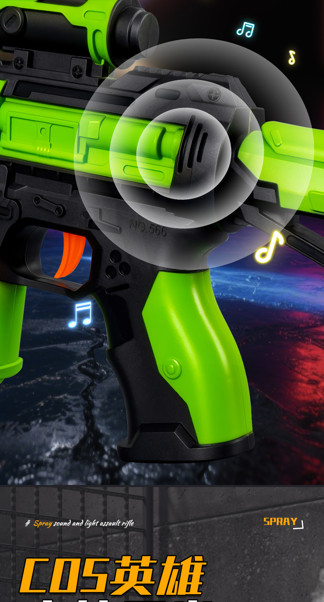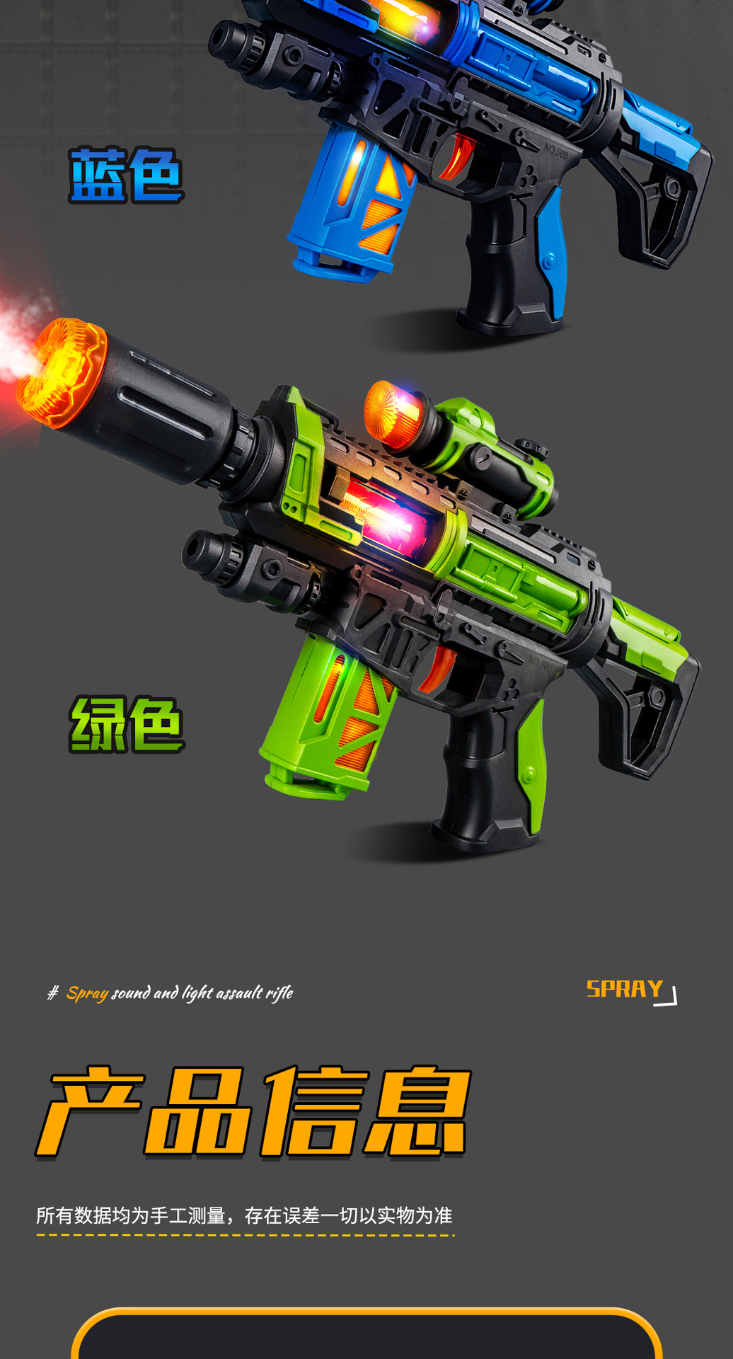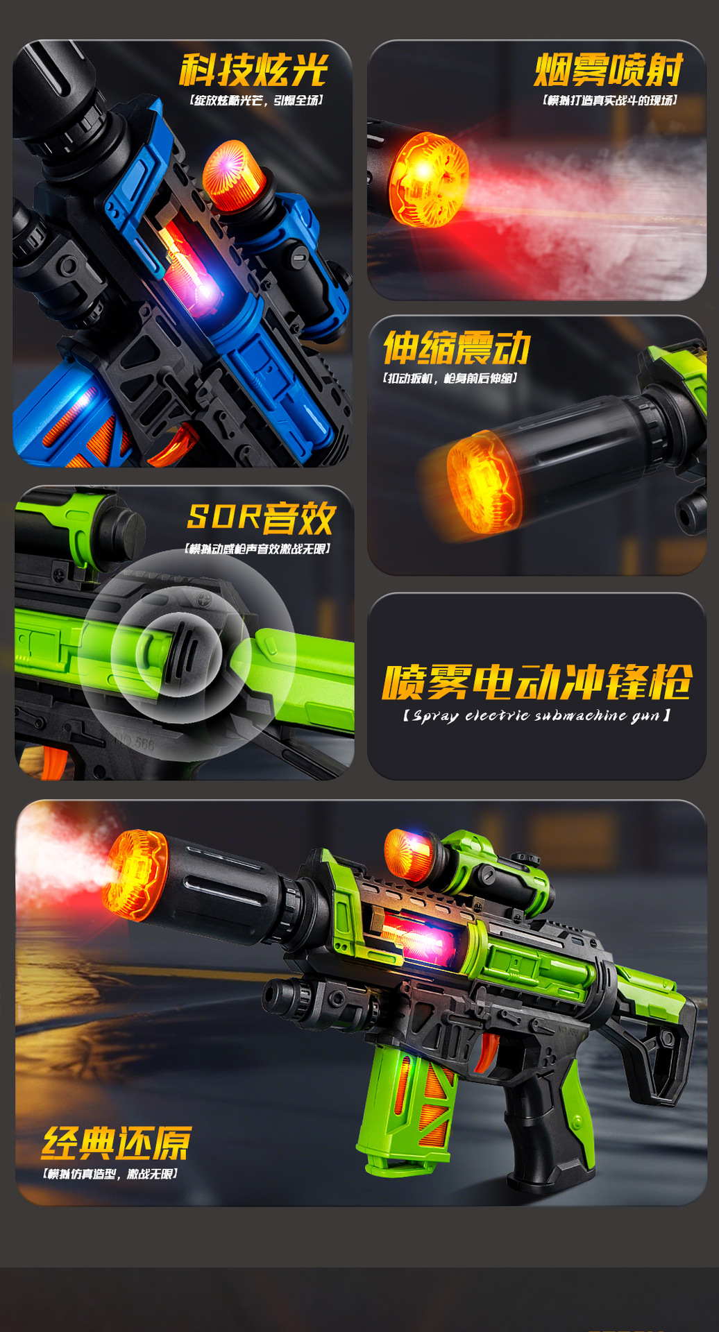 jq566-d spray sound and light submachine gun【green】