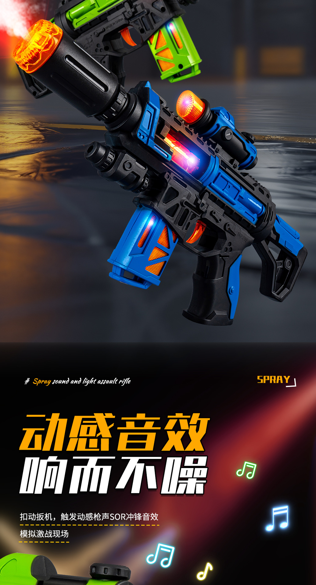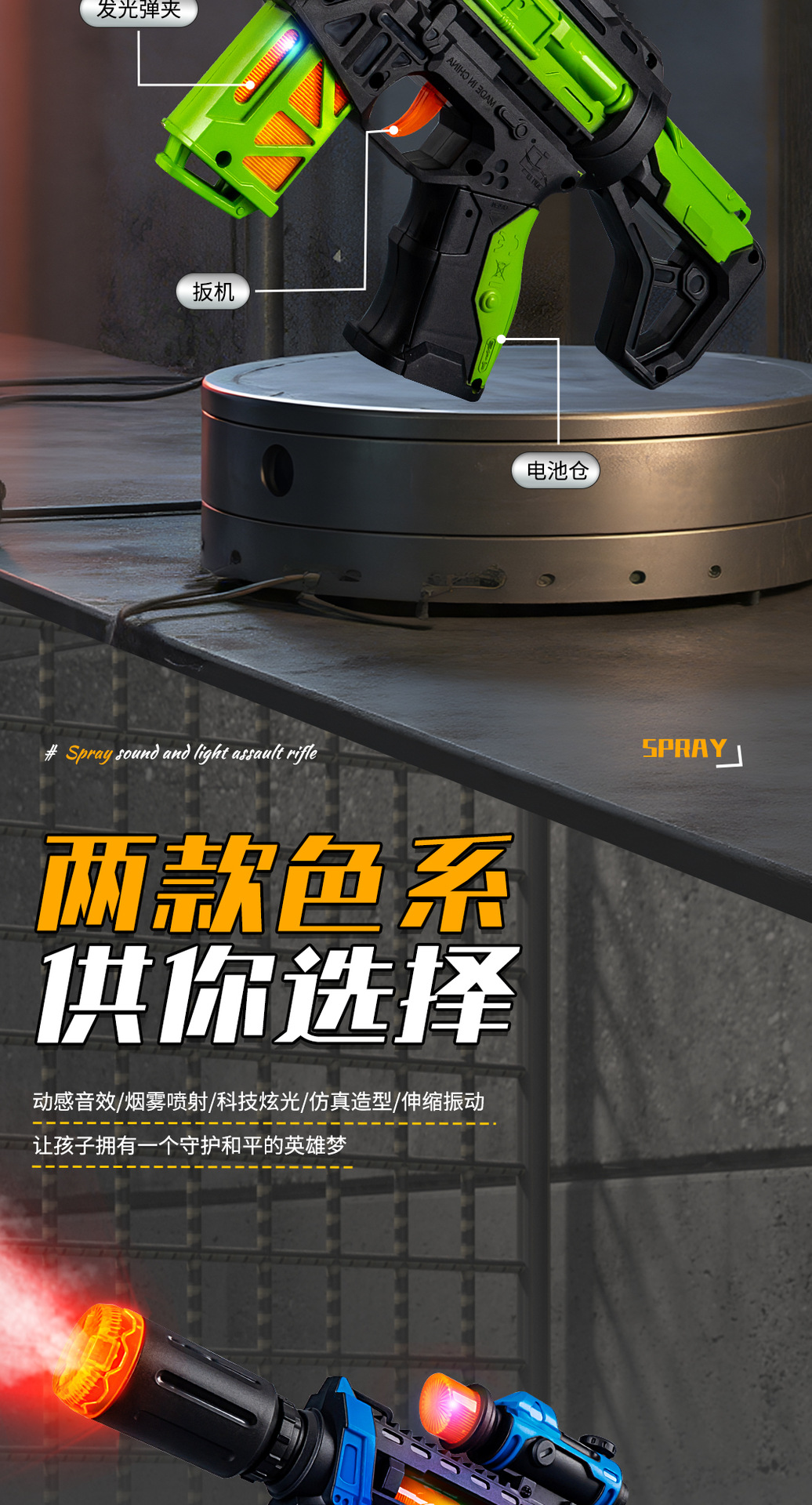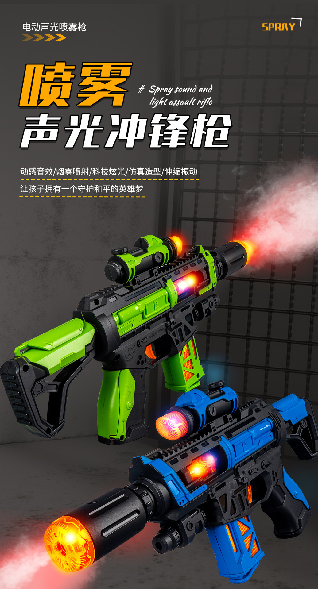 jq566-d spray sound and light submachine gun【green】