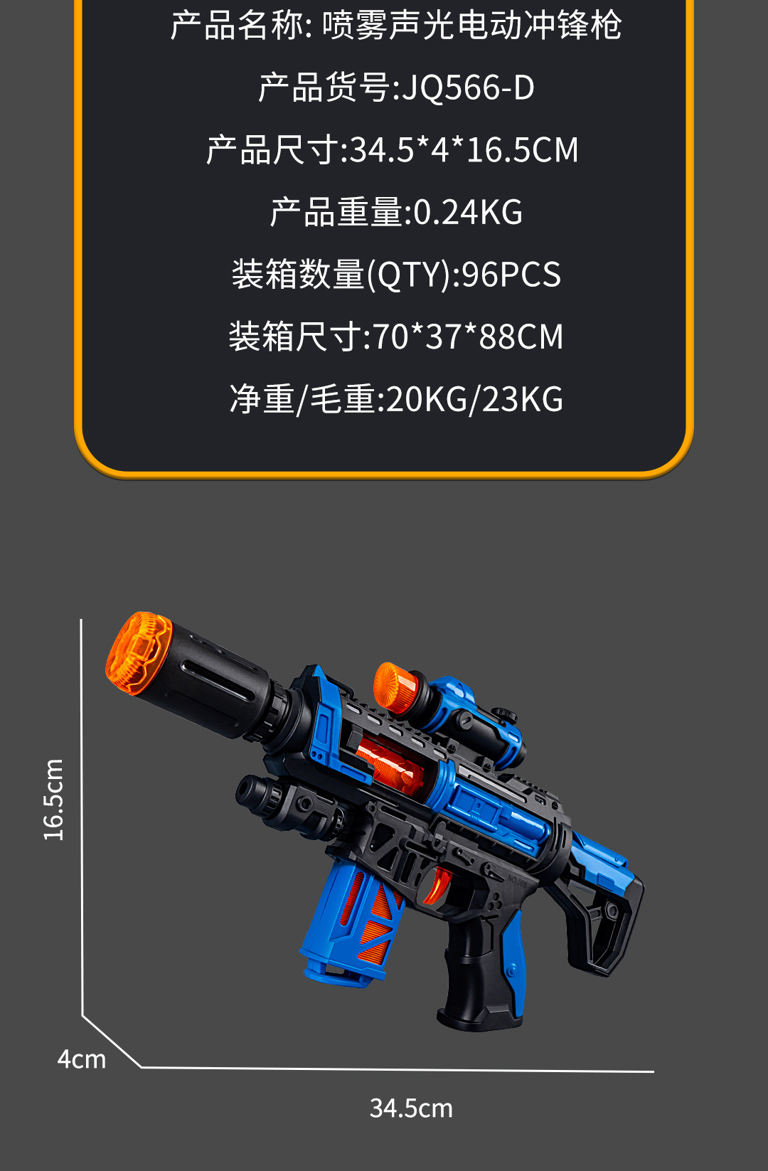 jq566-d spray sound and light submachine gun [blue]