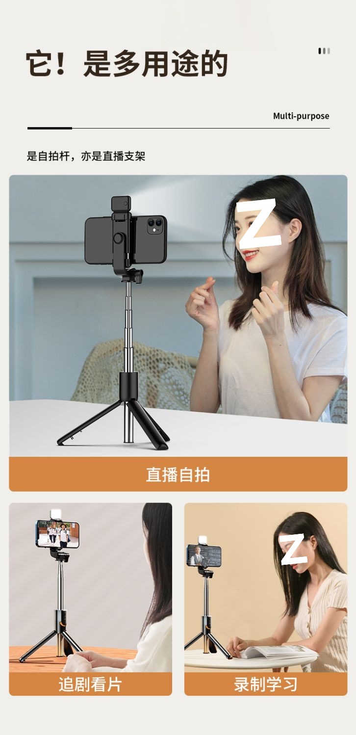 luxury version [bluetooth remote control] + beauty lamp-charming black [integrated tripod]