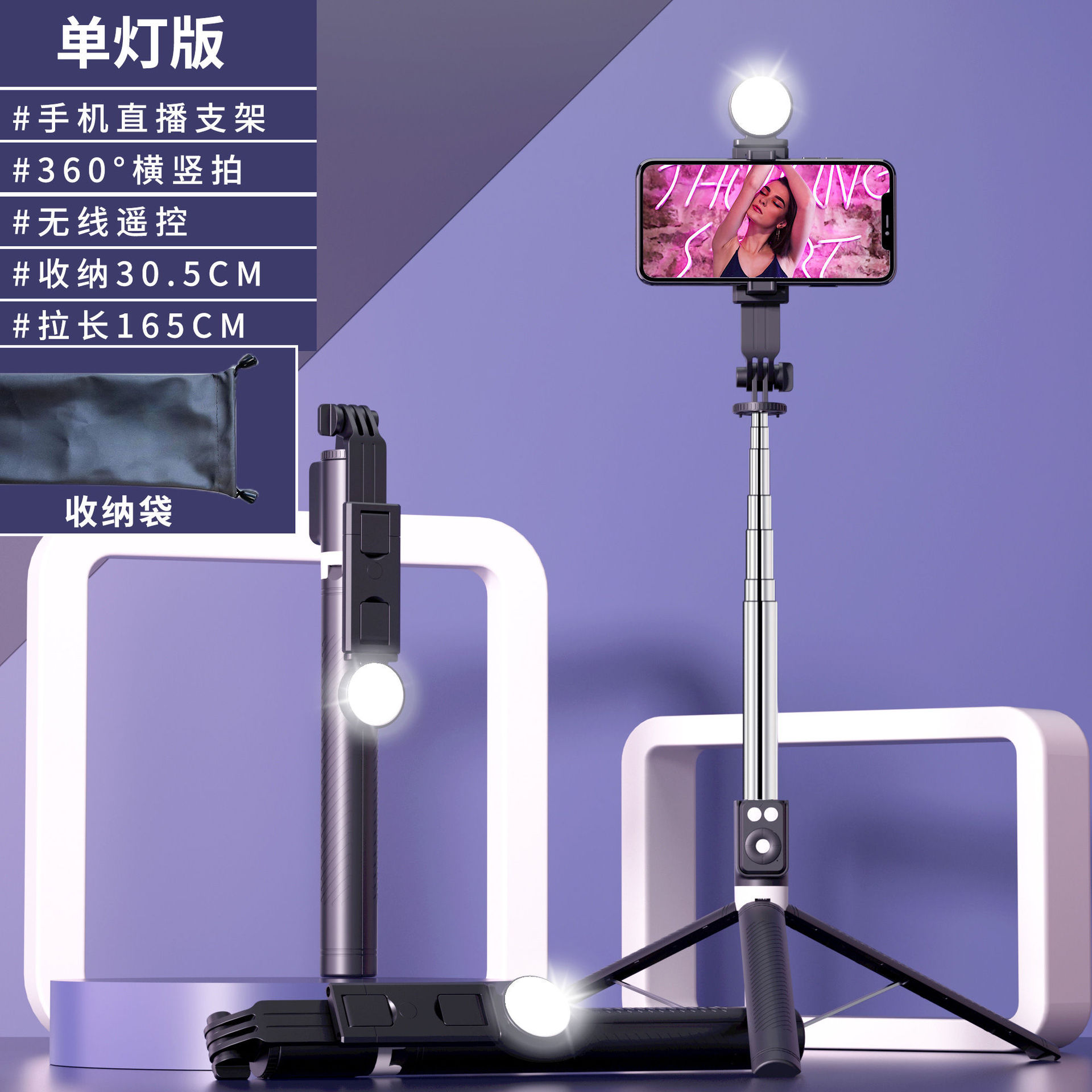 douyin bt12 pink 1.7 meters + single small light + bag