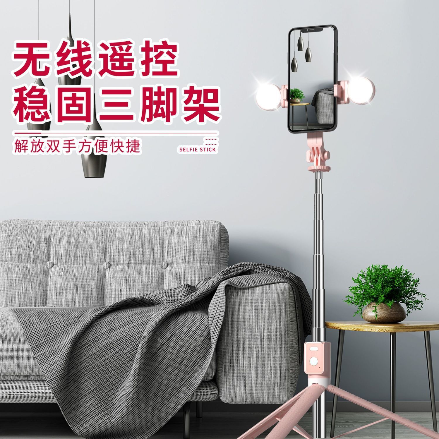 douyin style bt12 pink 1.7 meters + two small lights + bag
