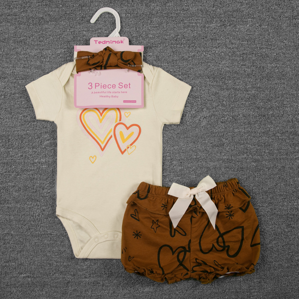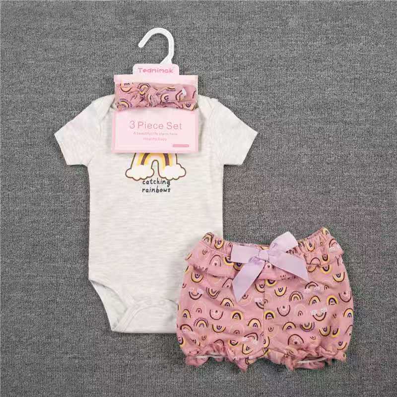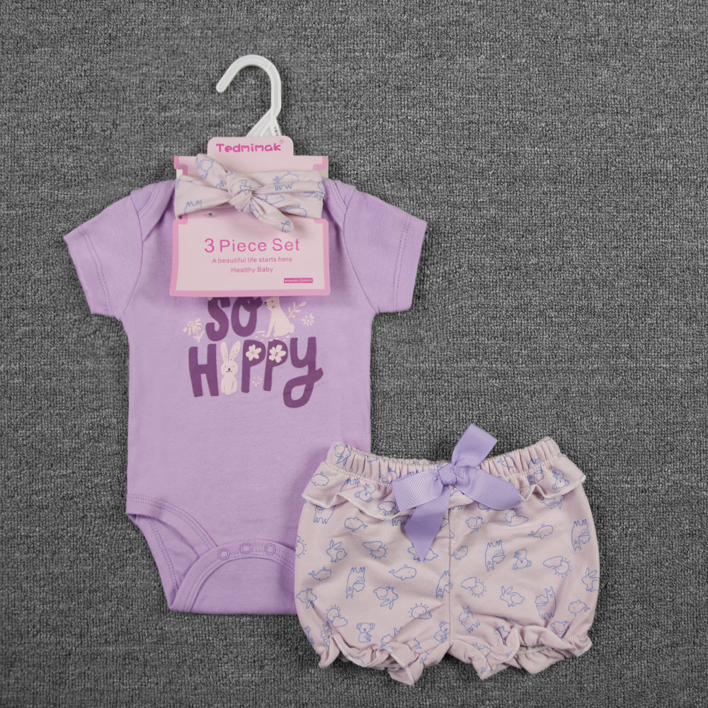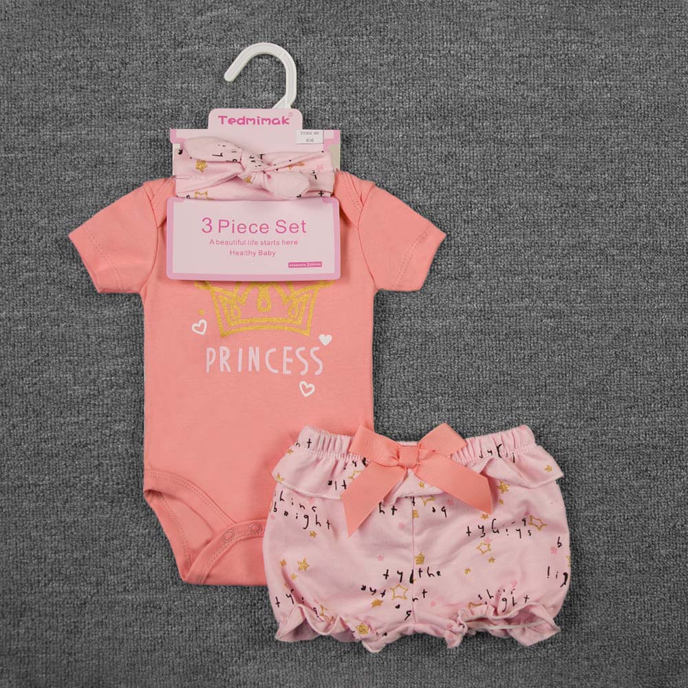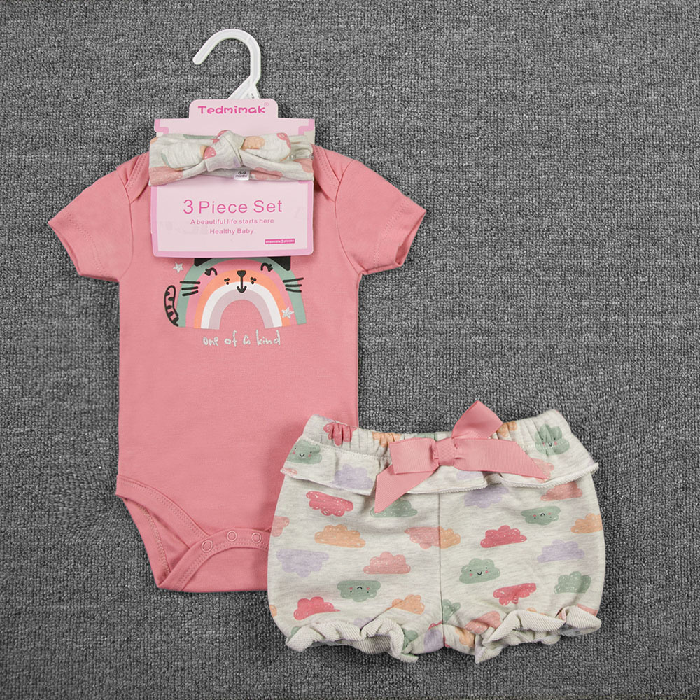 3-piece set, including a diaper, shorts, and a hairband/socks