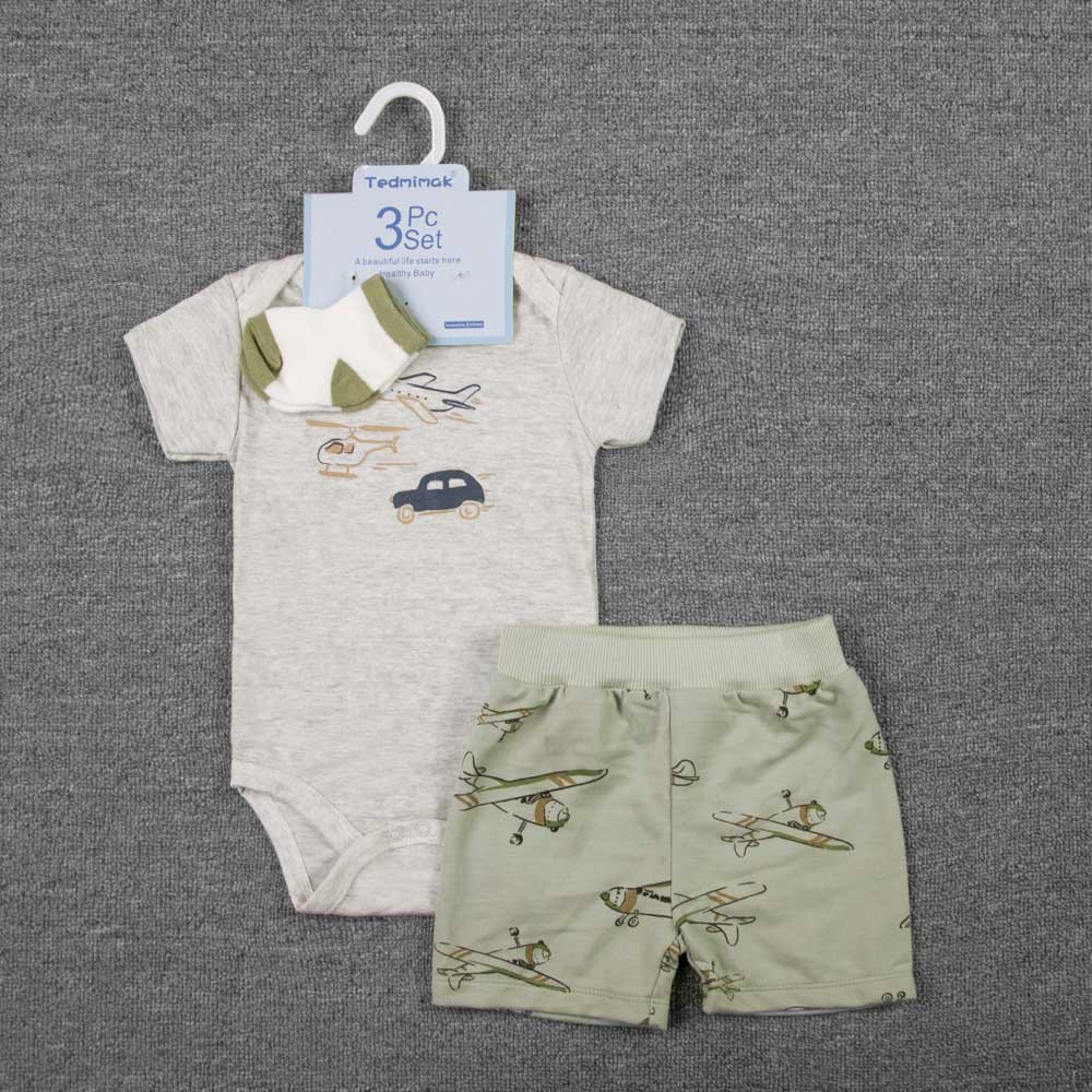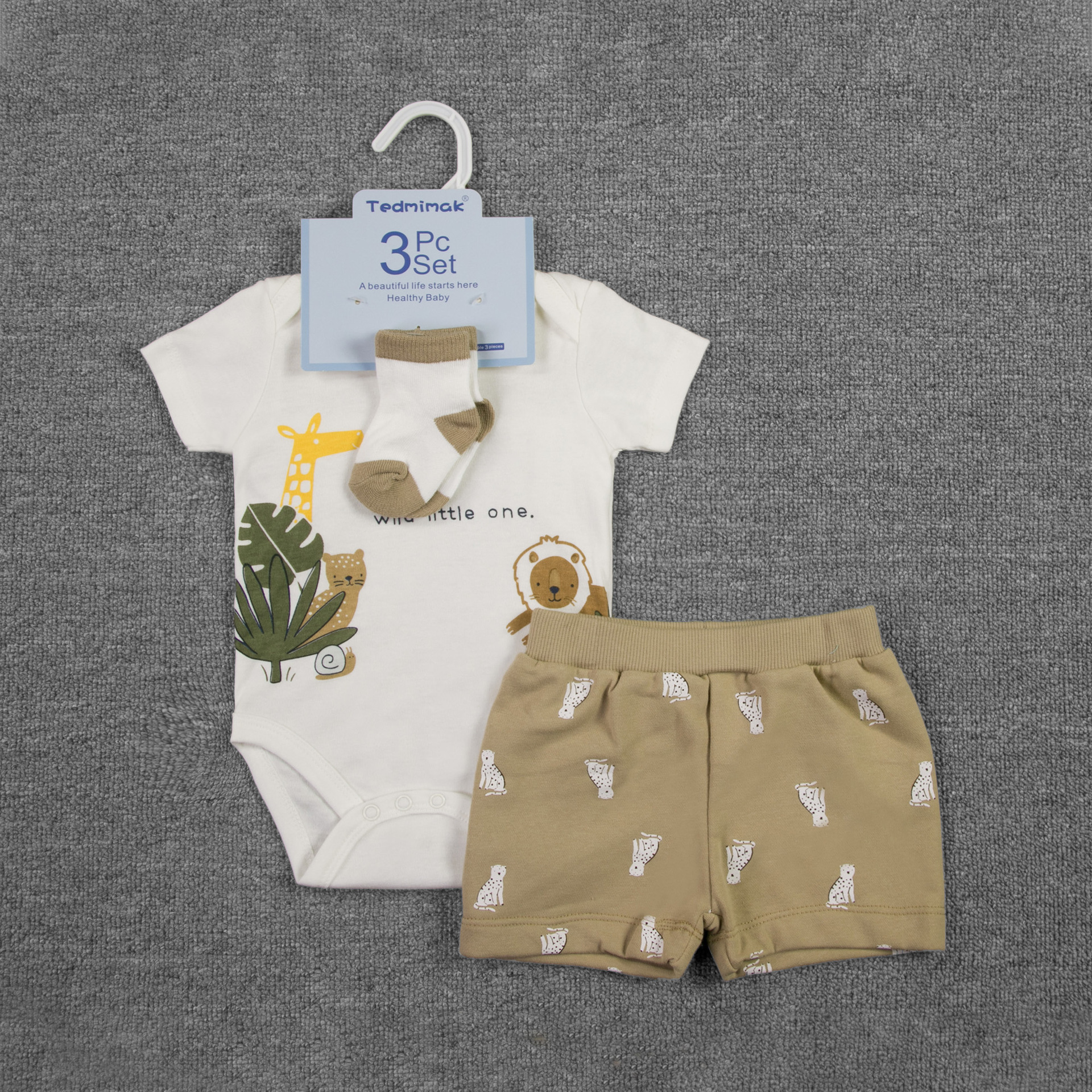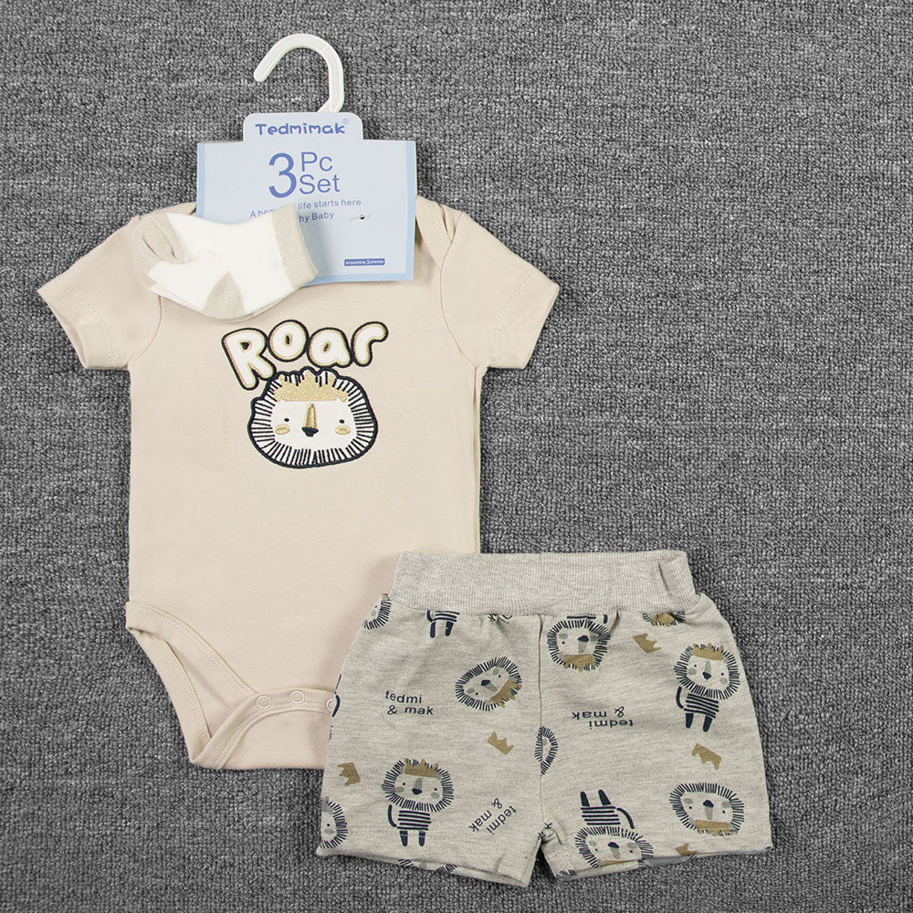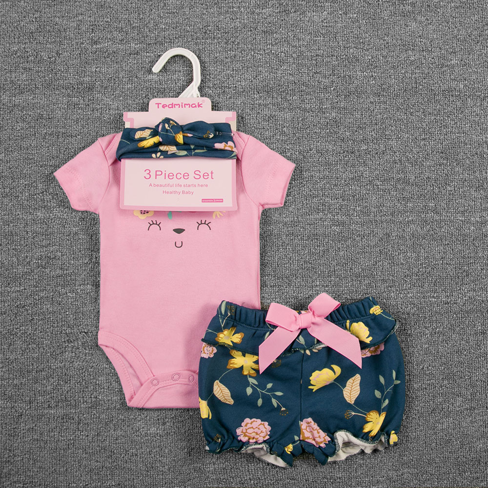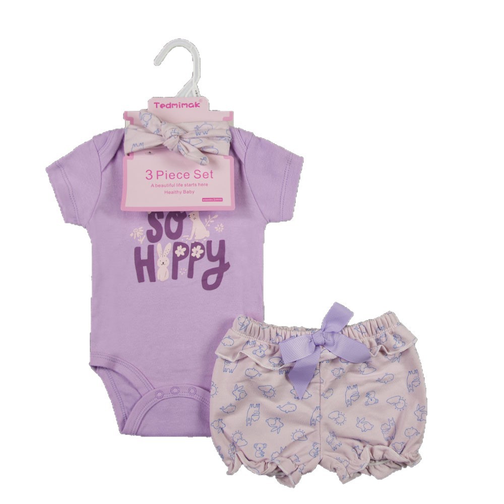 3-piece set, including a diaper, shorts, and a hairband/socks