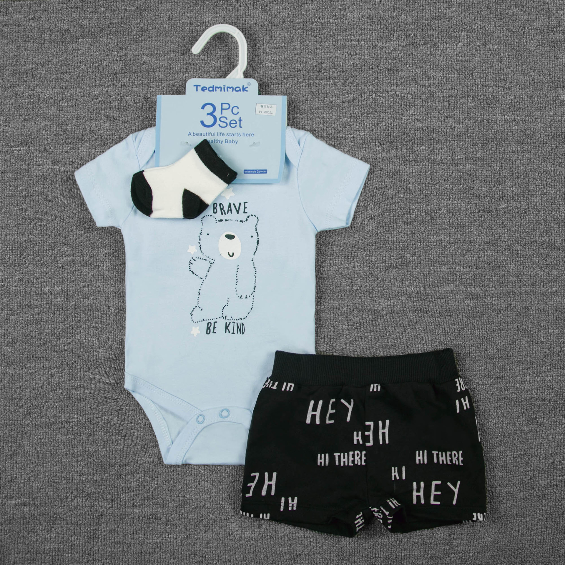 3-piece set, top, bottom, andhair band/socks
