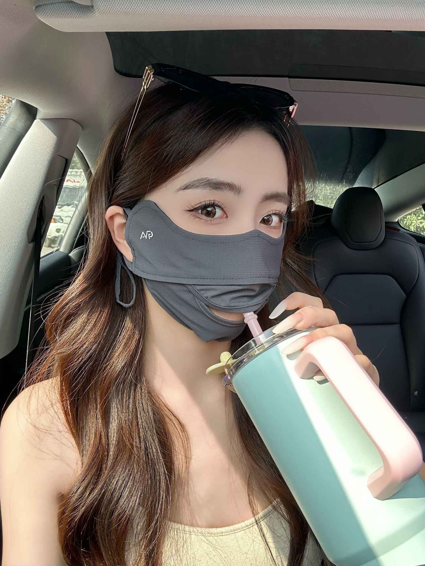 601# plaid drinking mask-black (open water. drinking)