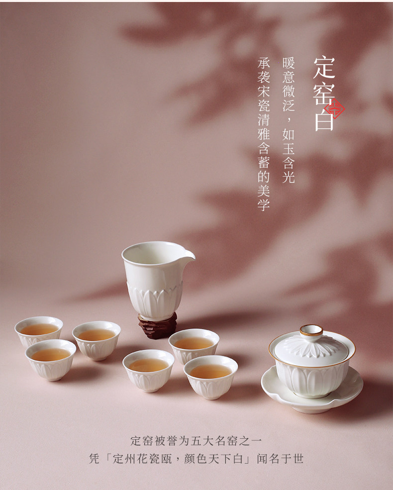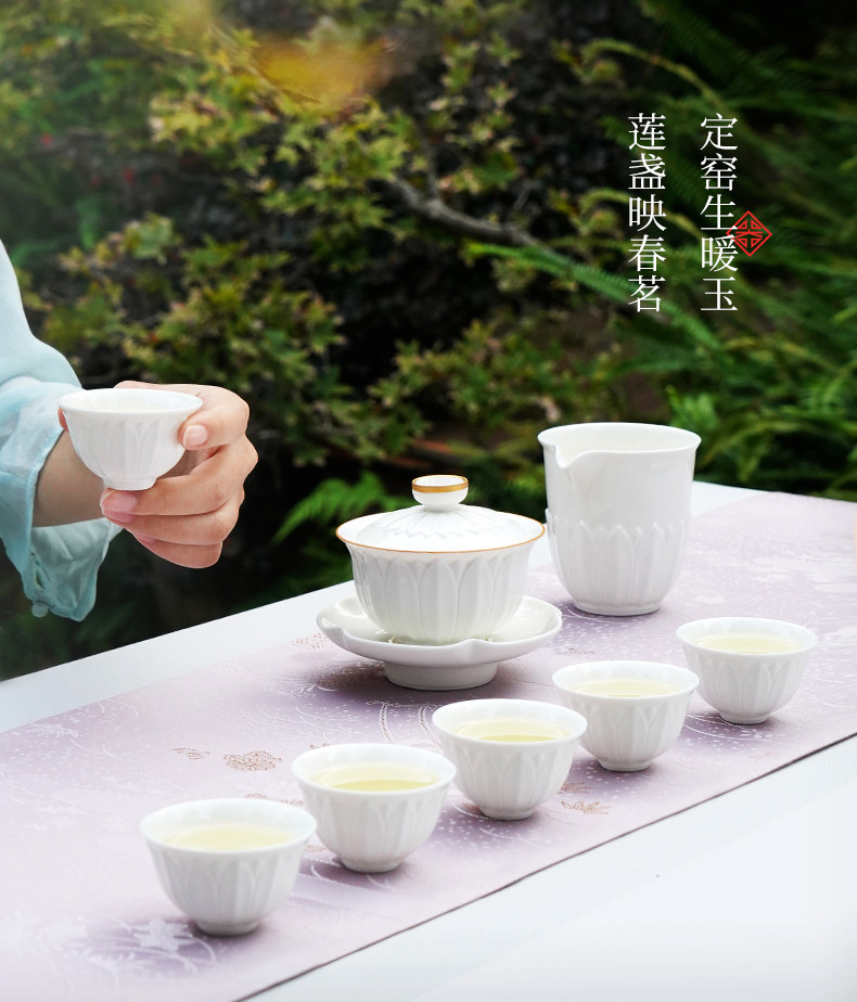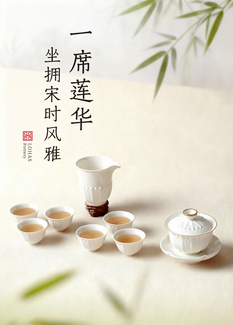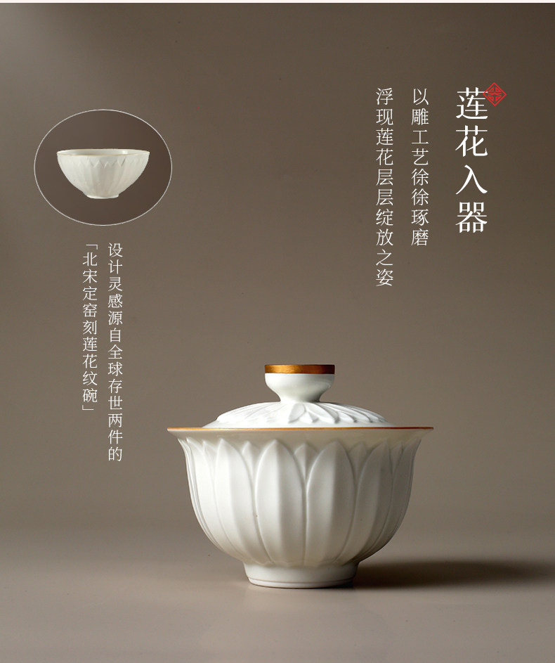 lotus gaiwan tea set-ding ware white