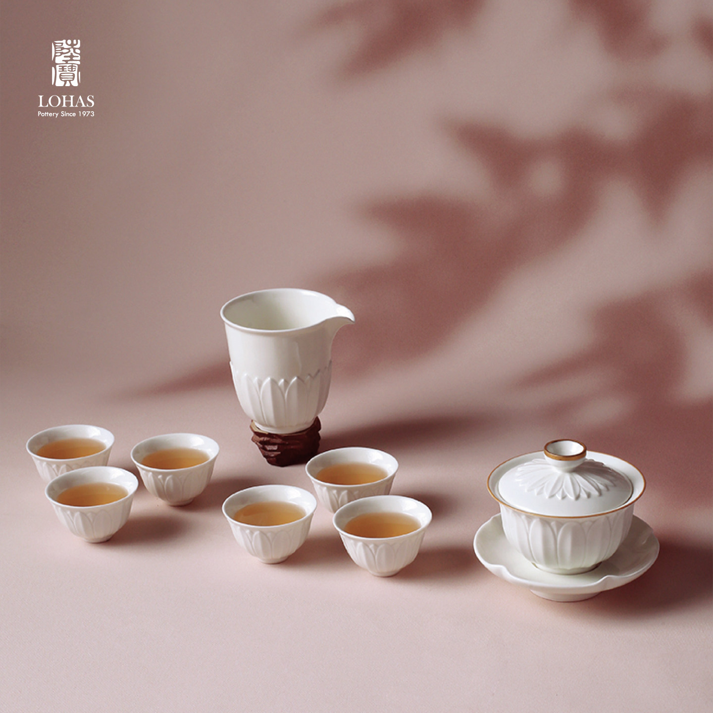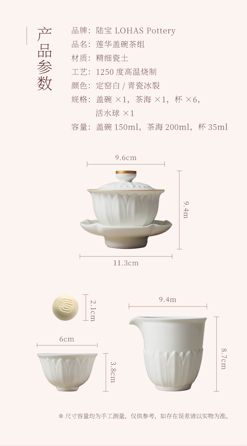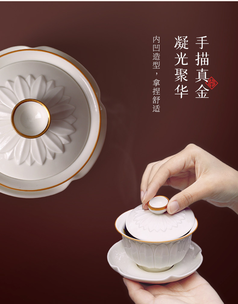 lotus gaiwan tea set-ding ware white