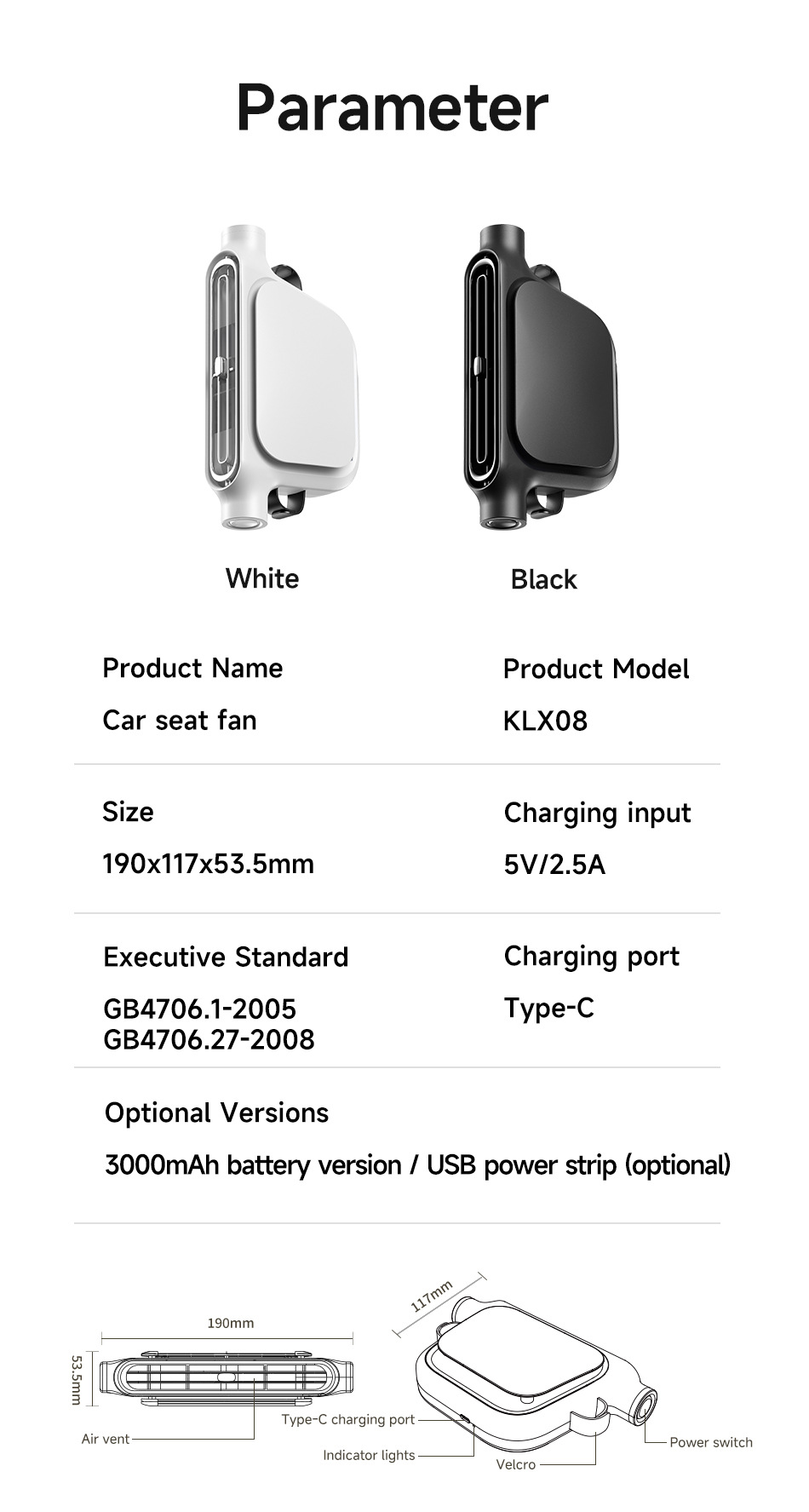 item no.: klx09 car seat fan