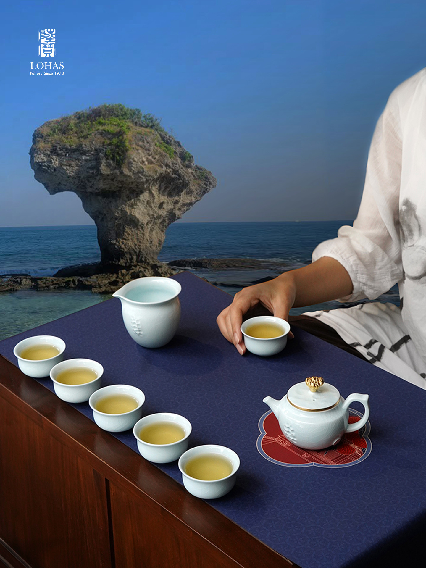 celadon ice crack co-tidal tea set (9 pieces)