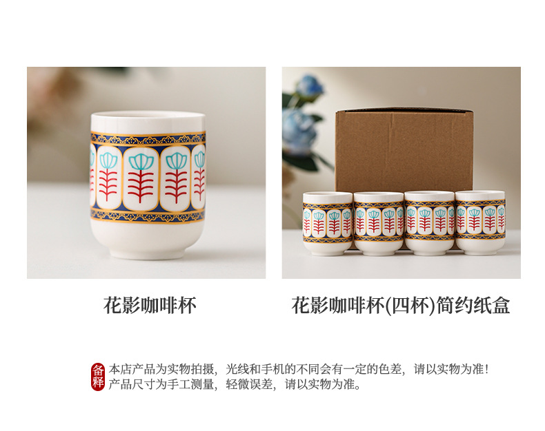 color: flower shadow coffee cup, flower shadow coffee cup-four cups (simple)
