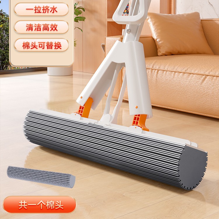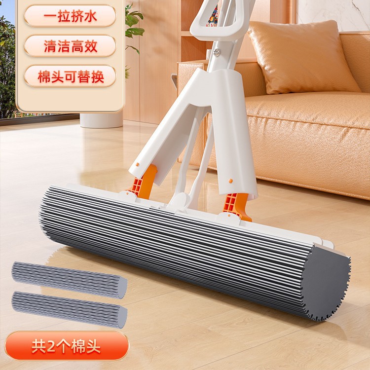 [28cm mop reinforced splicing straight rod +1 cotton head]-white orange