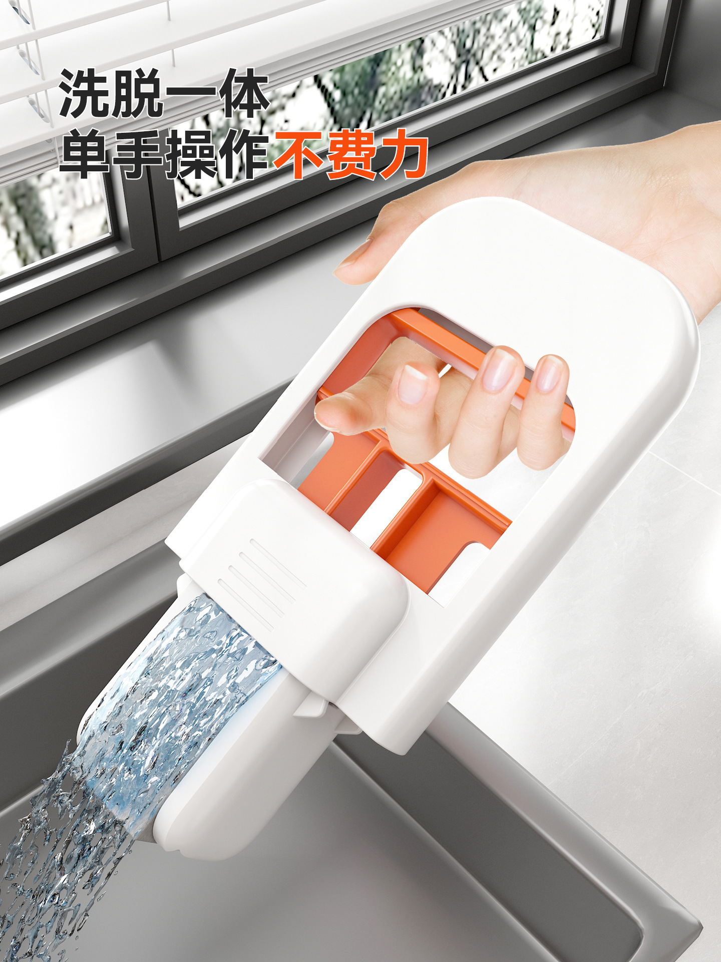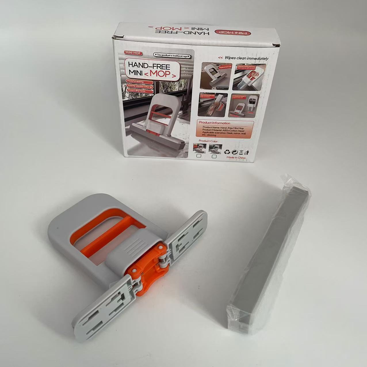 handheld small mop: white and orange (color box version comes with 1 cotton head))