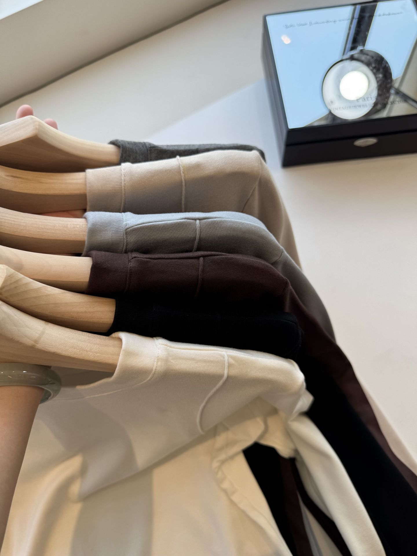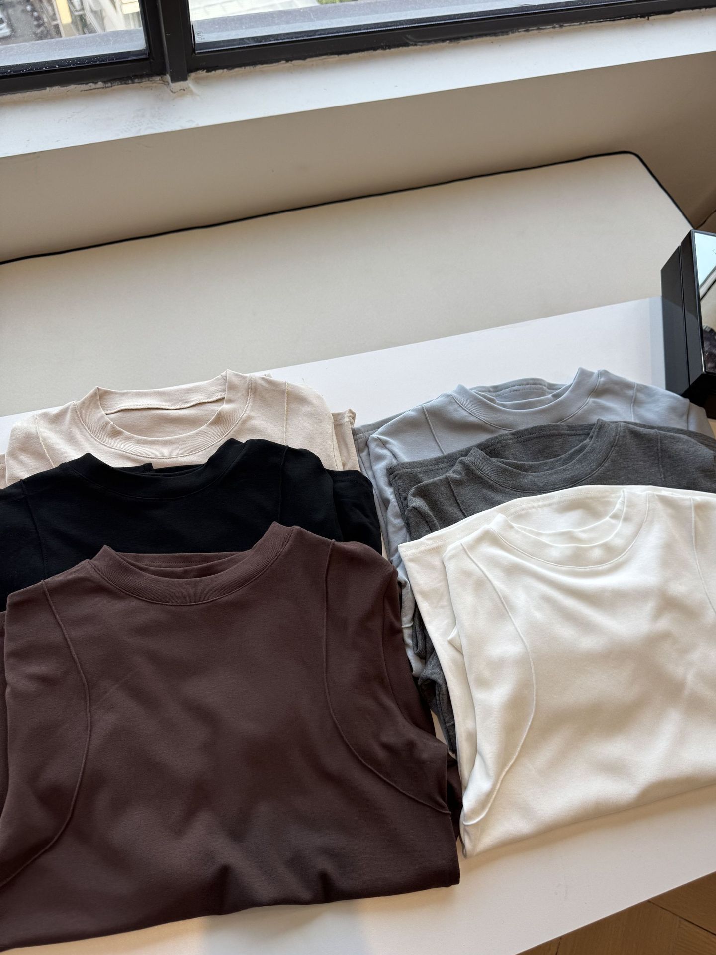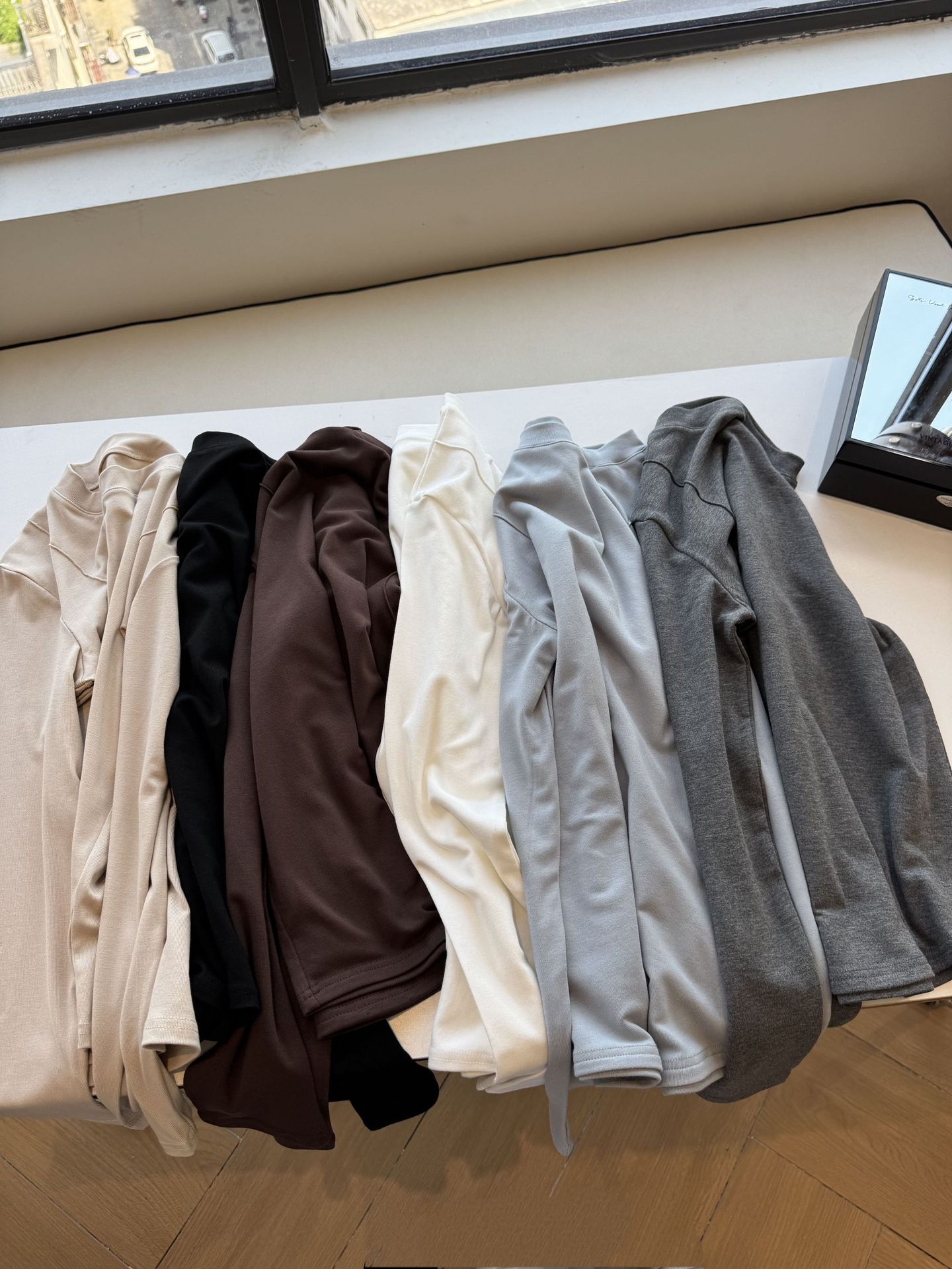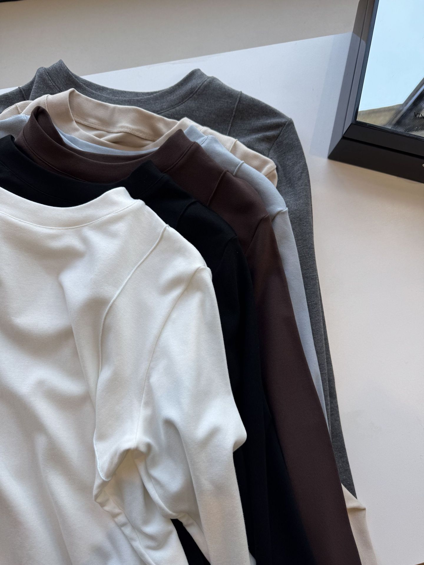 black, milk tea, blue, thin black, gray, white
