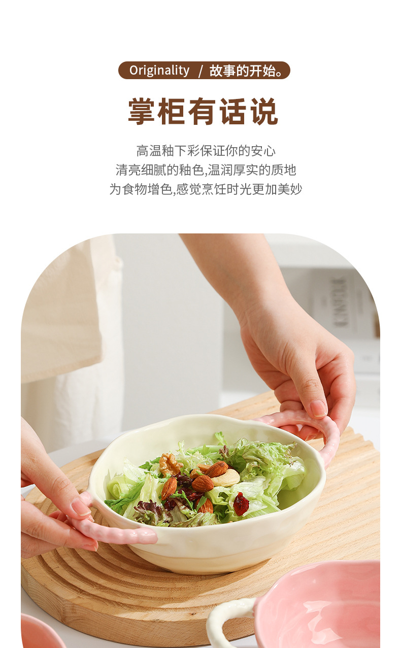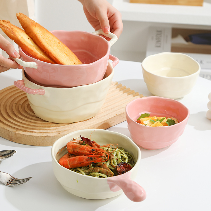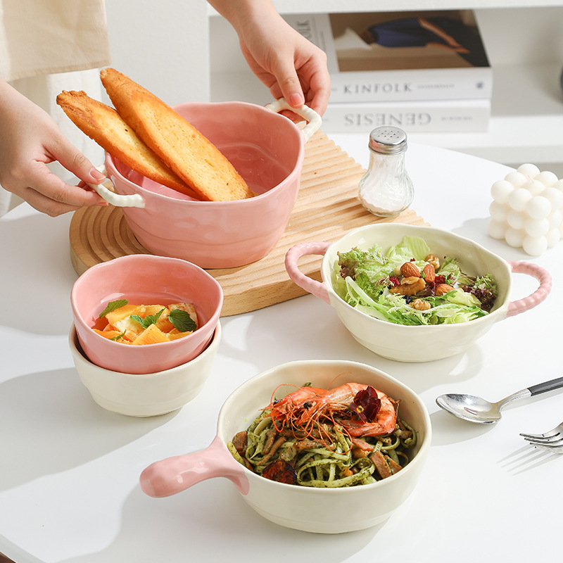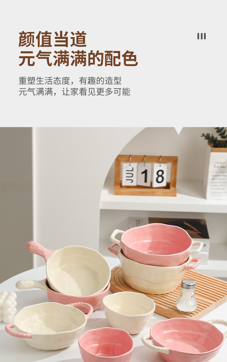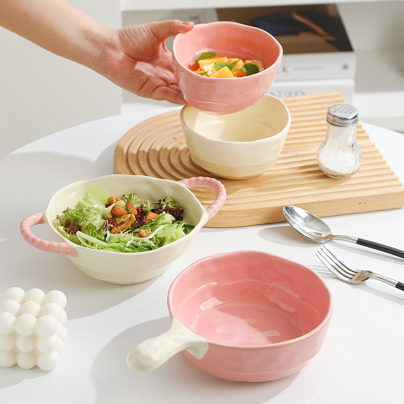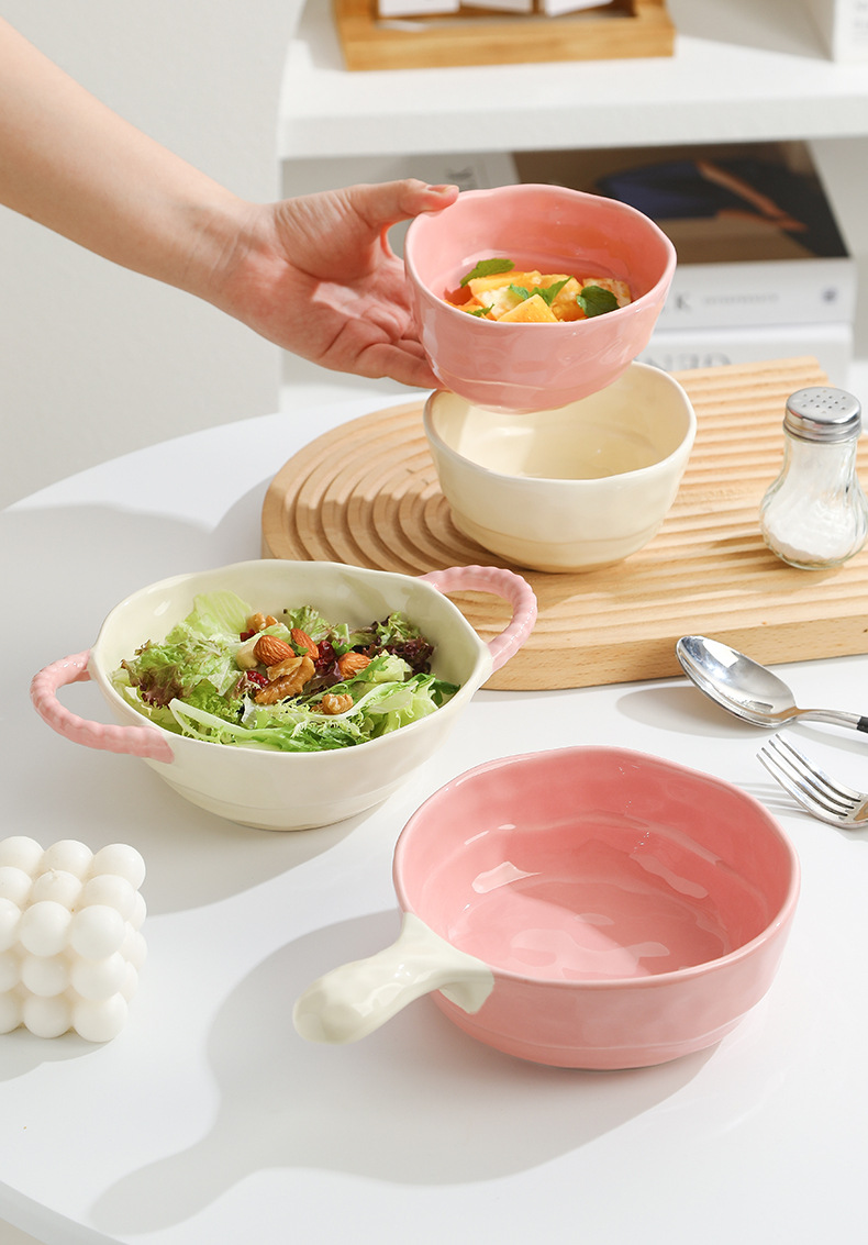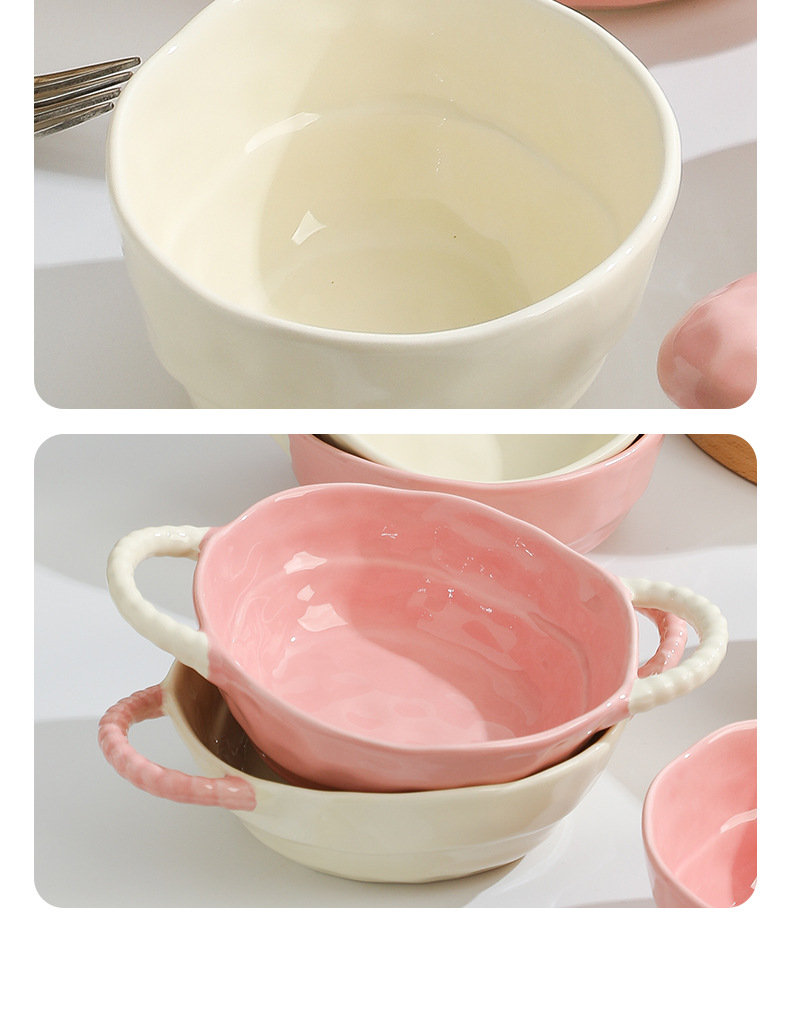 color-block double-ear bowl (strawberry powder)