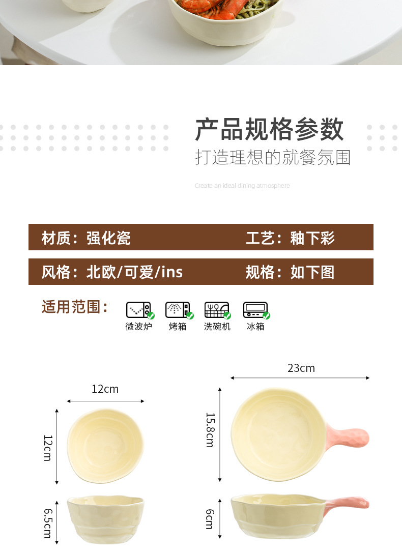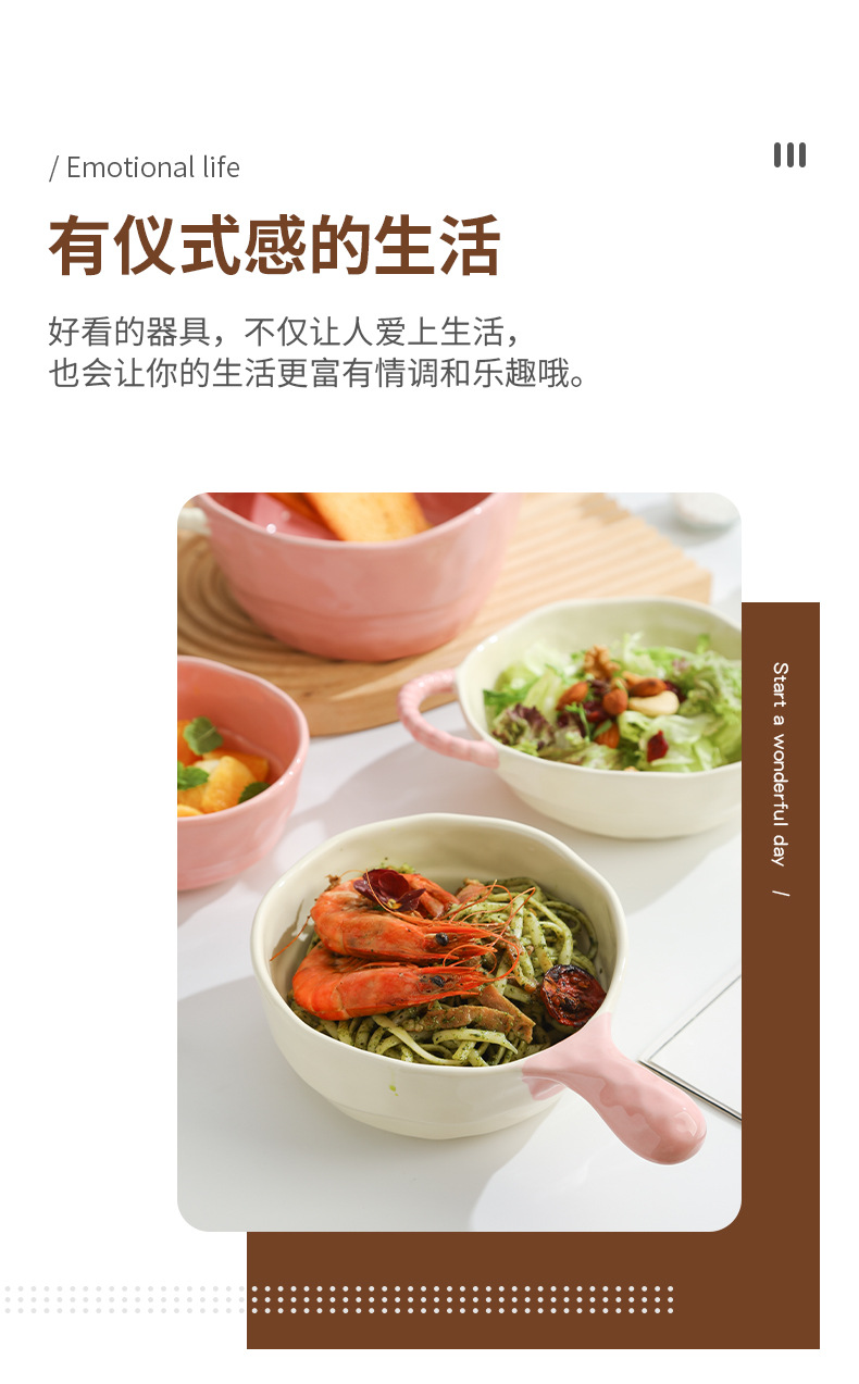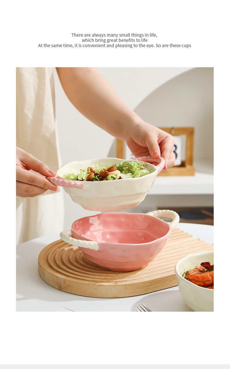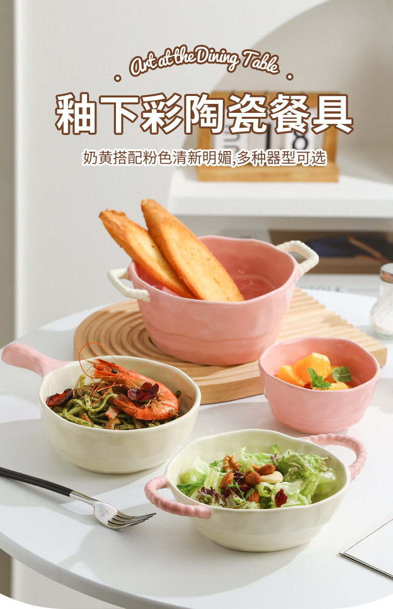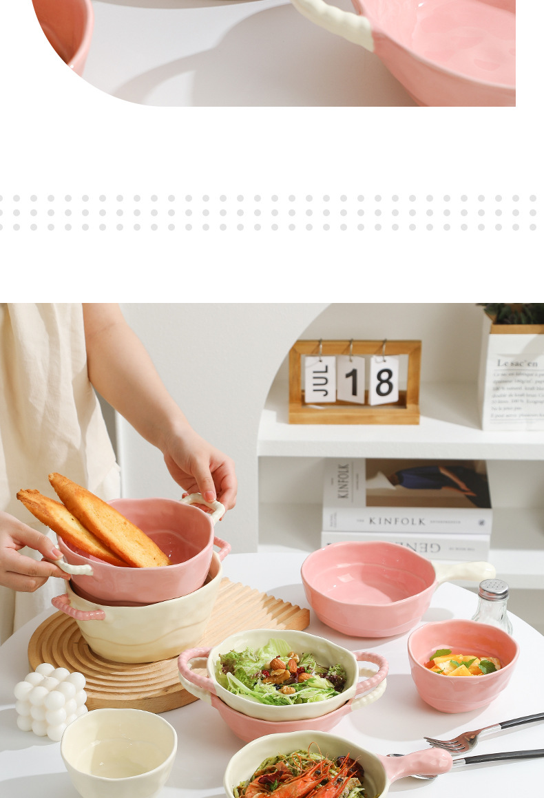 color-block double-ear bowl (strawberry powder)