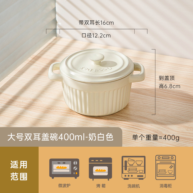 large size double-eared tureen 400ml-milk white