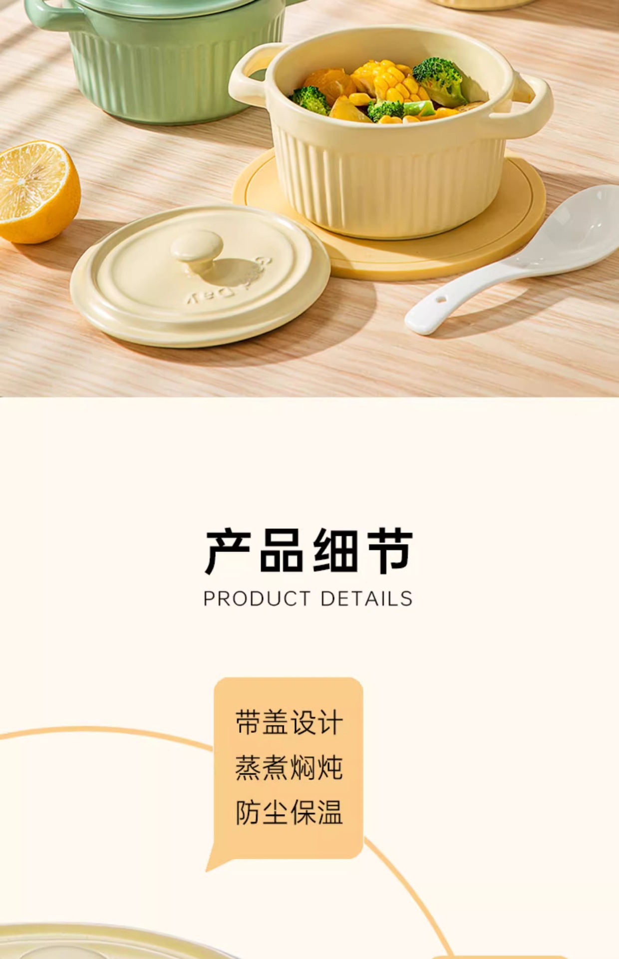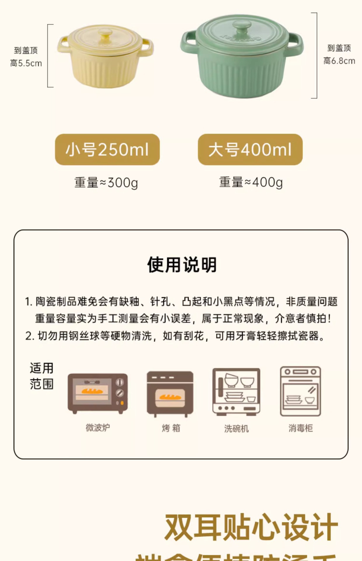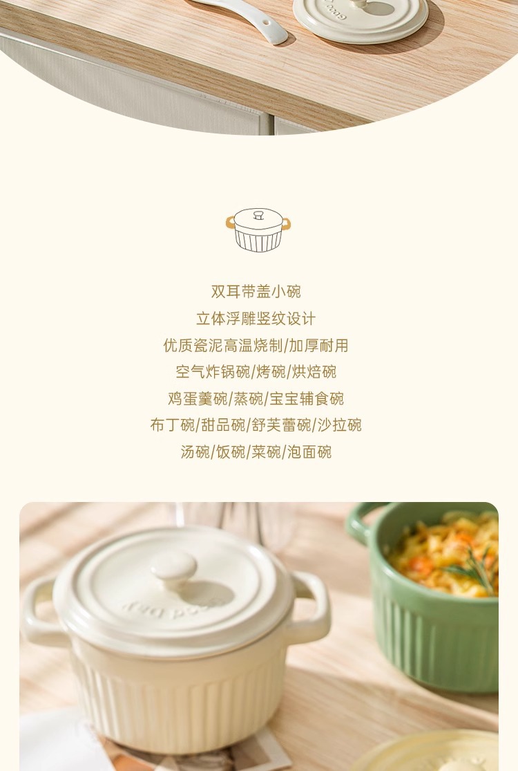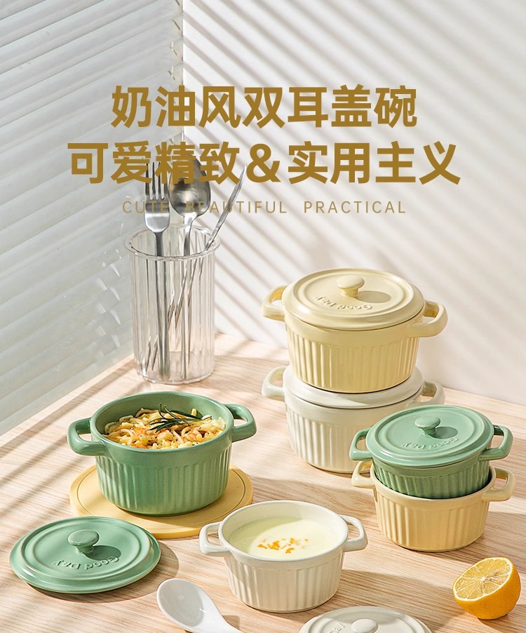 double-ear slow cooker 400ml-milky yellow (without lid)