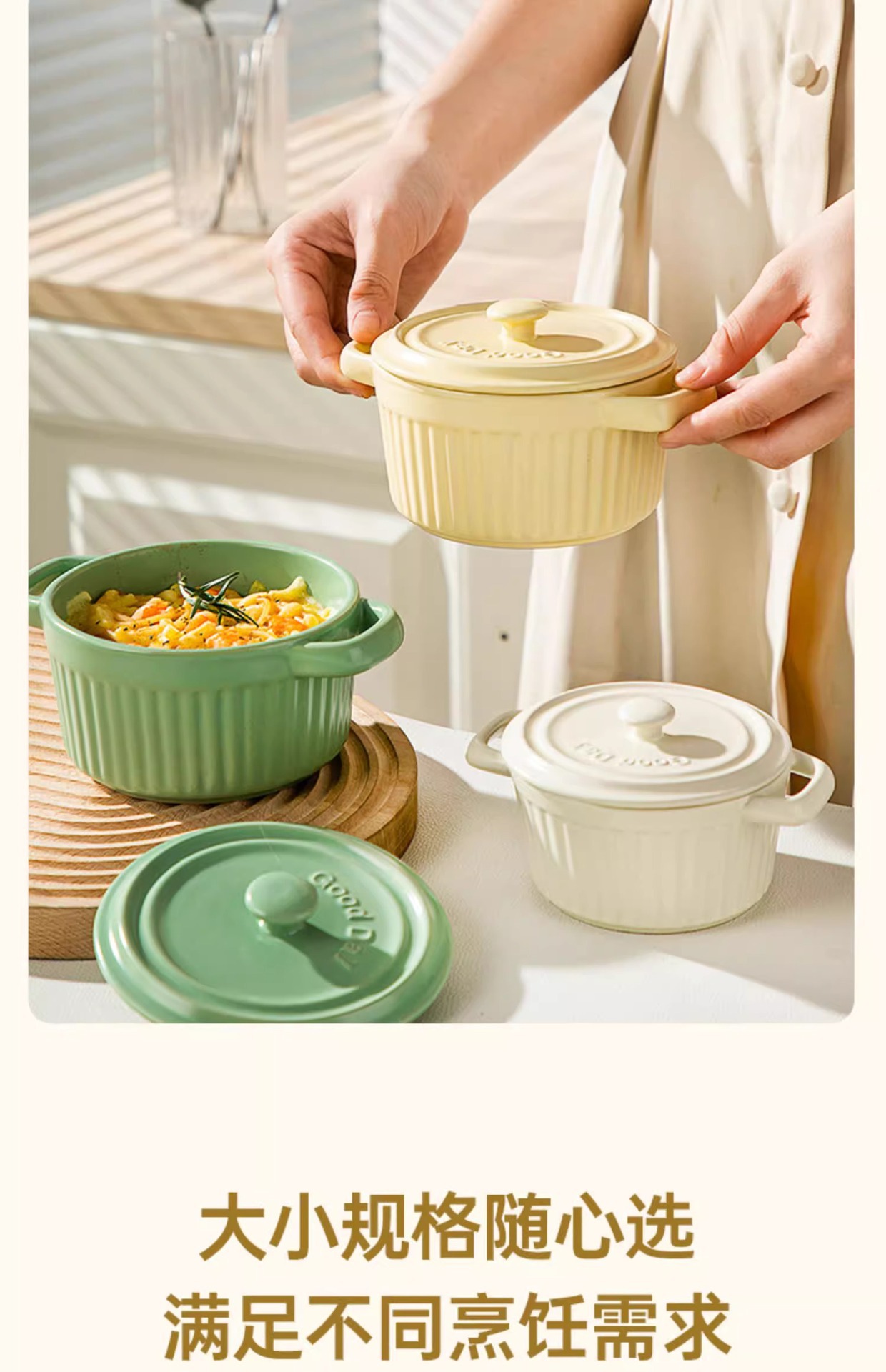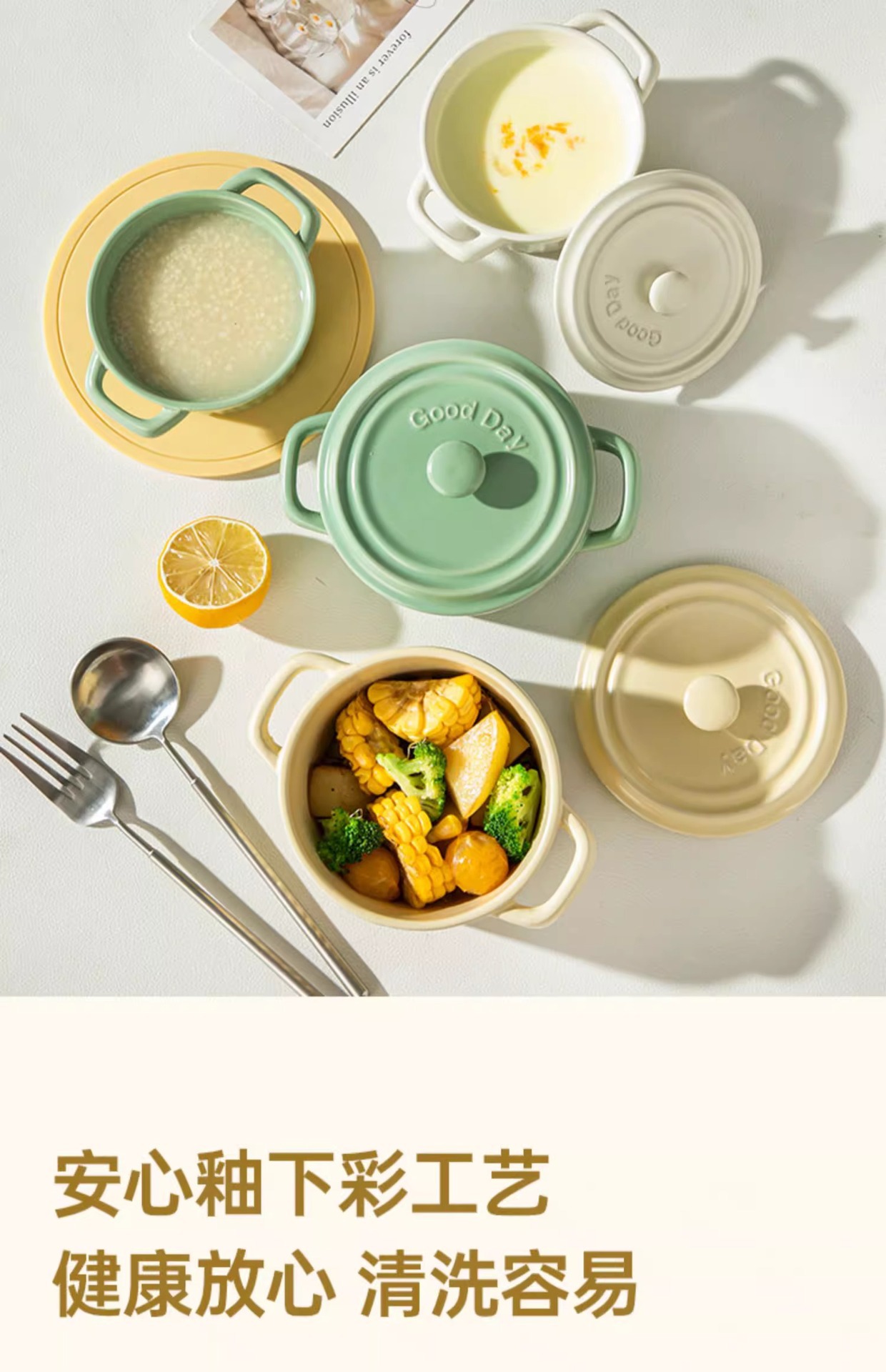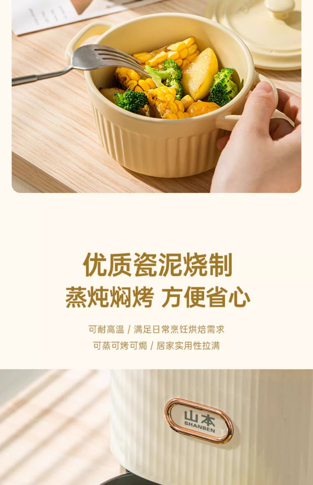 double-ear slow cooker 400ml-milky yellow (without lid)
