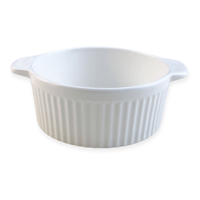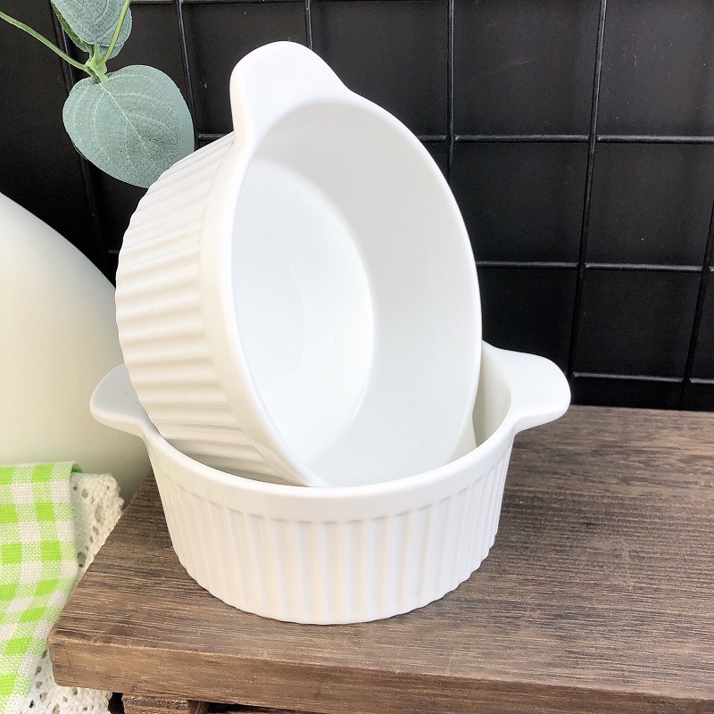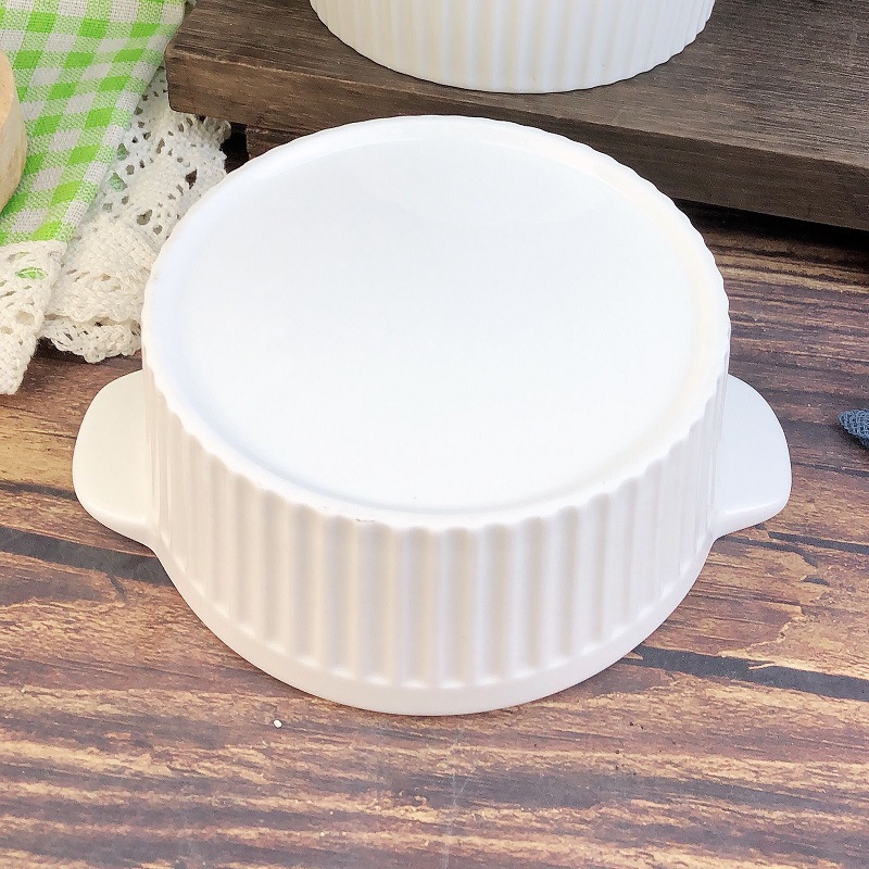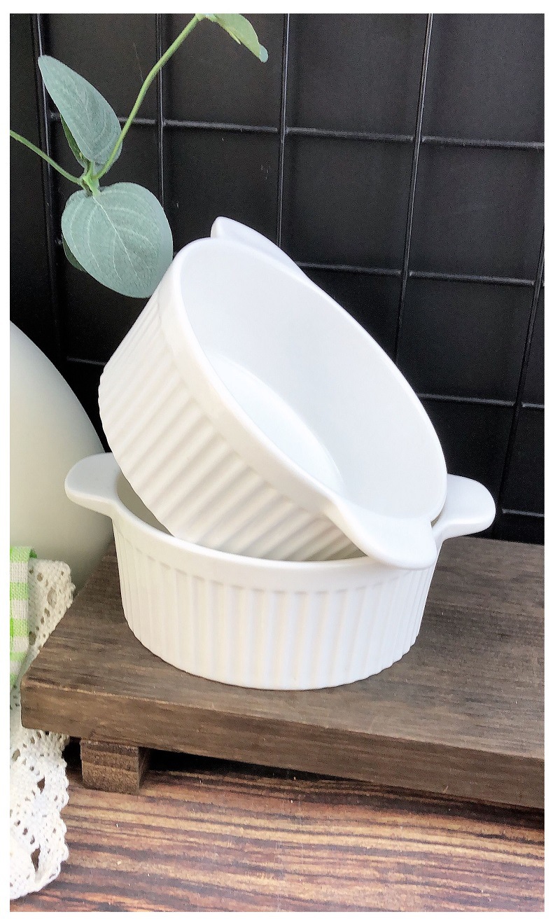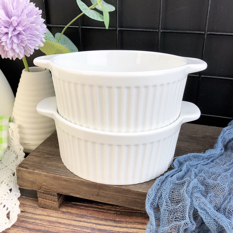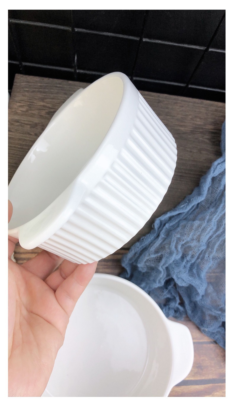 white three-dimensional vertical stripe double-ear bowl