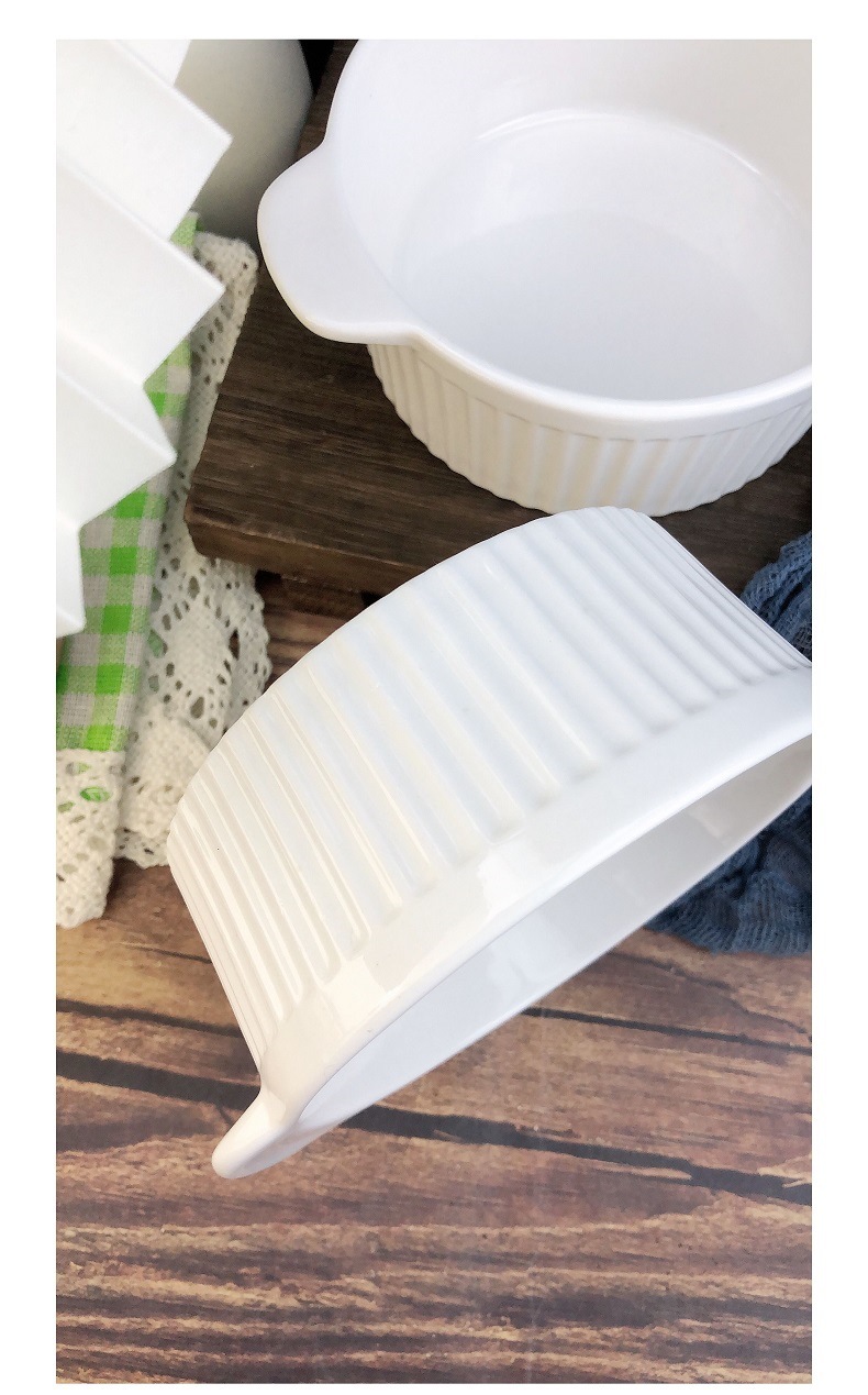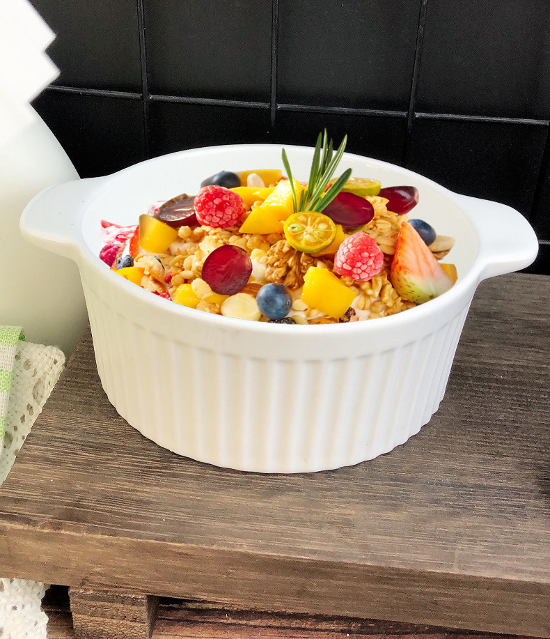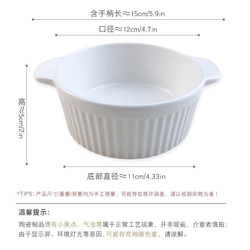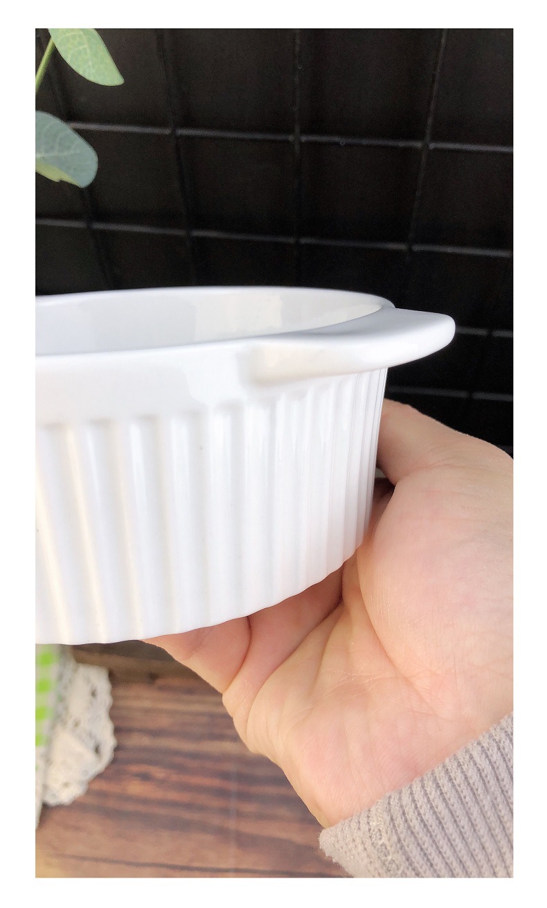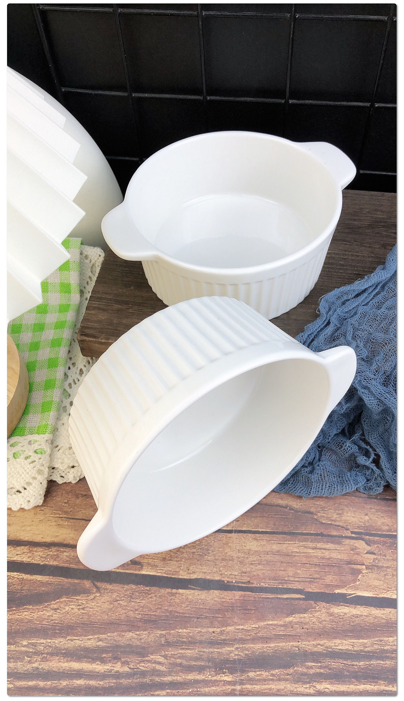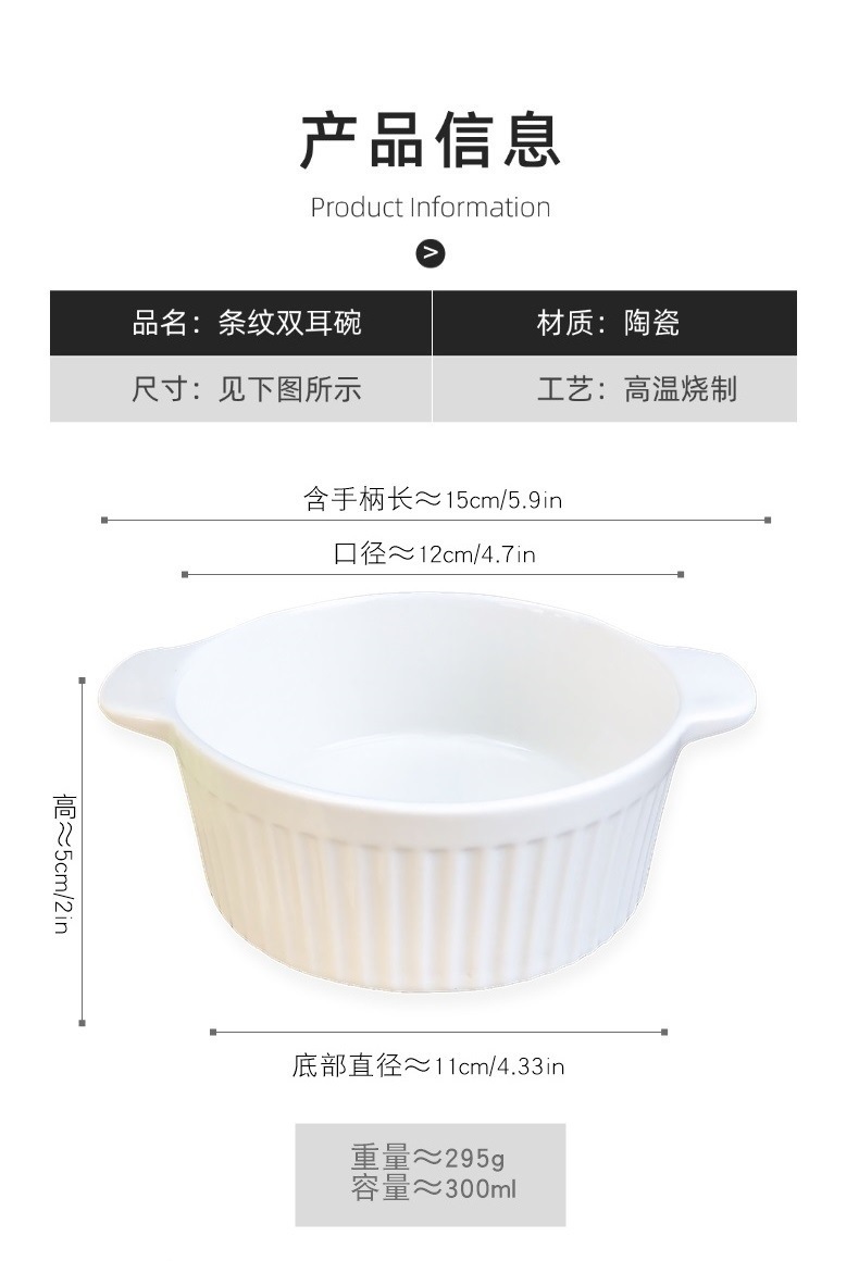 white three-dimensional vertical stripe double-ear bowl