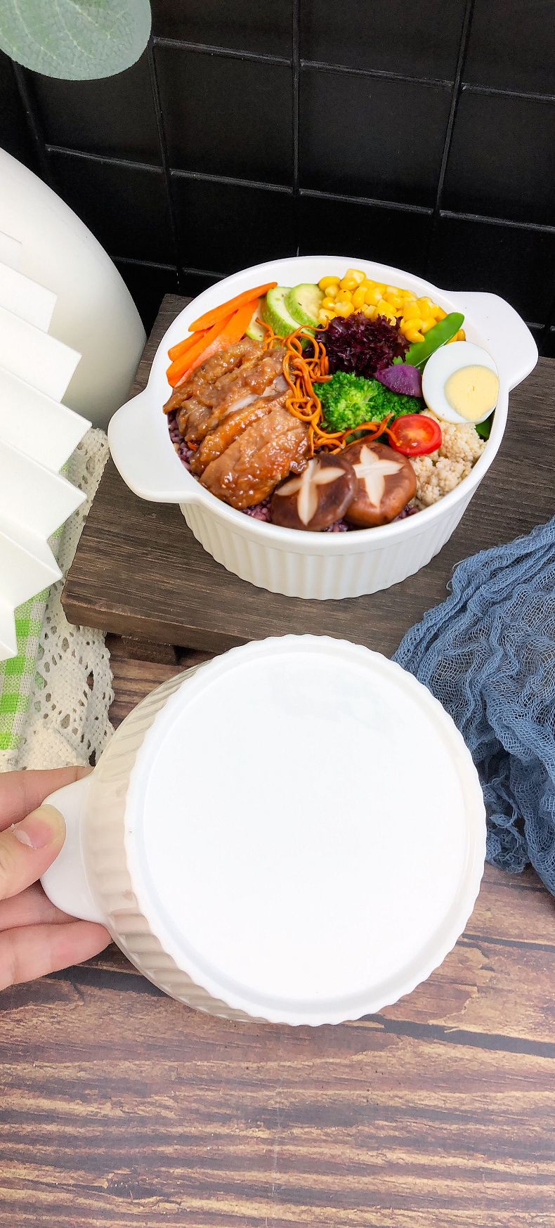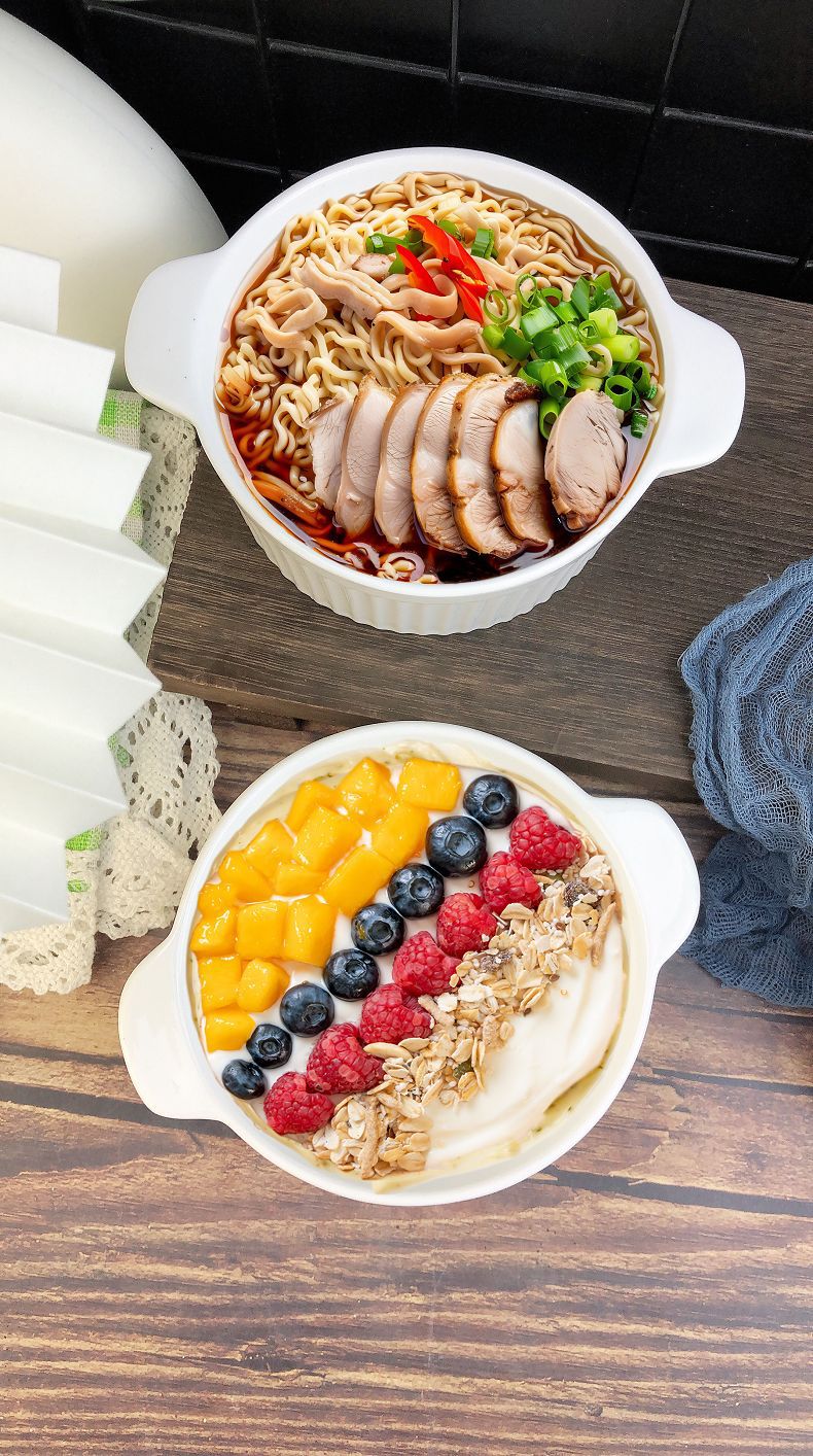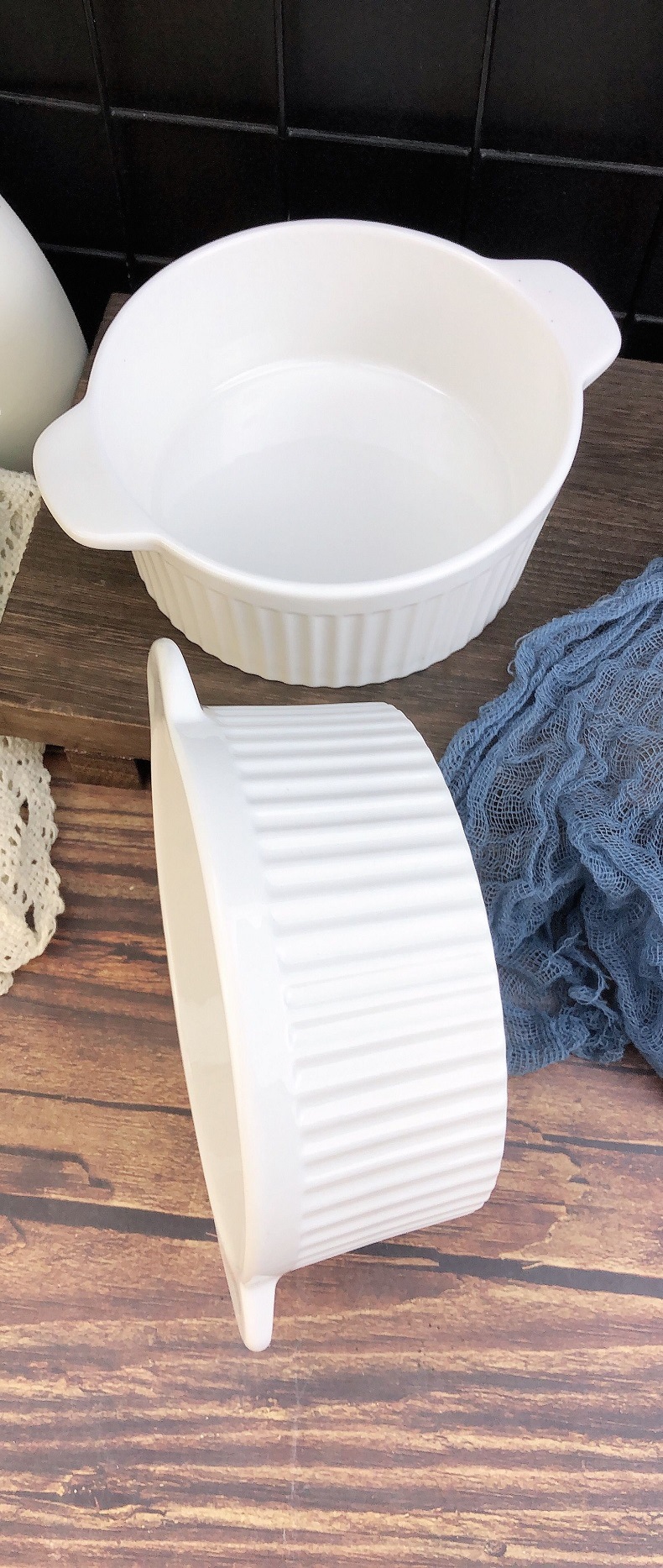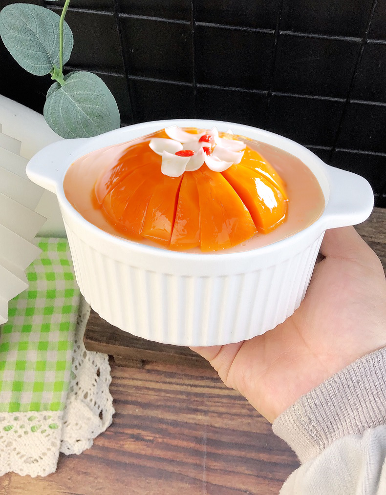 white three-dimensional vertical stripe double-ear bowl